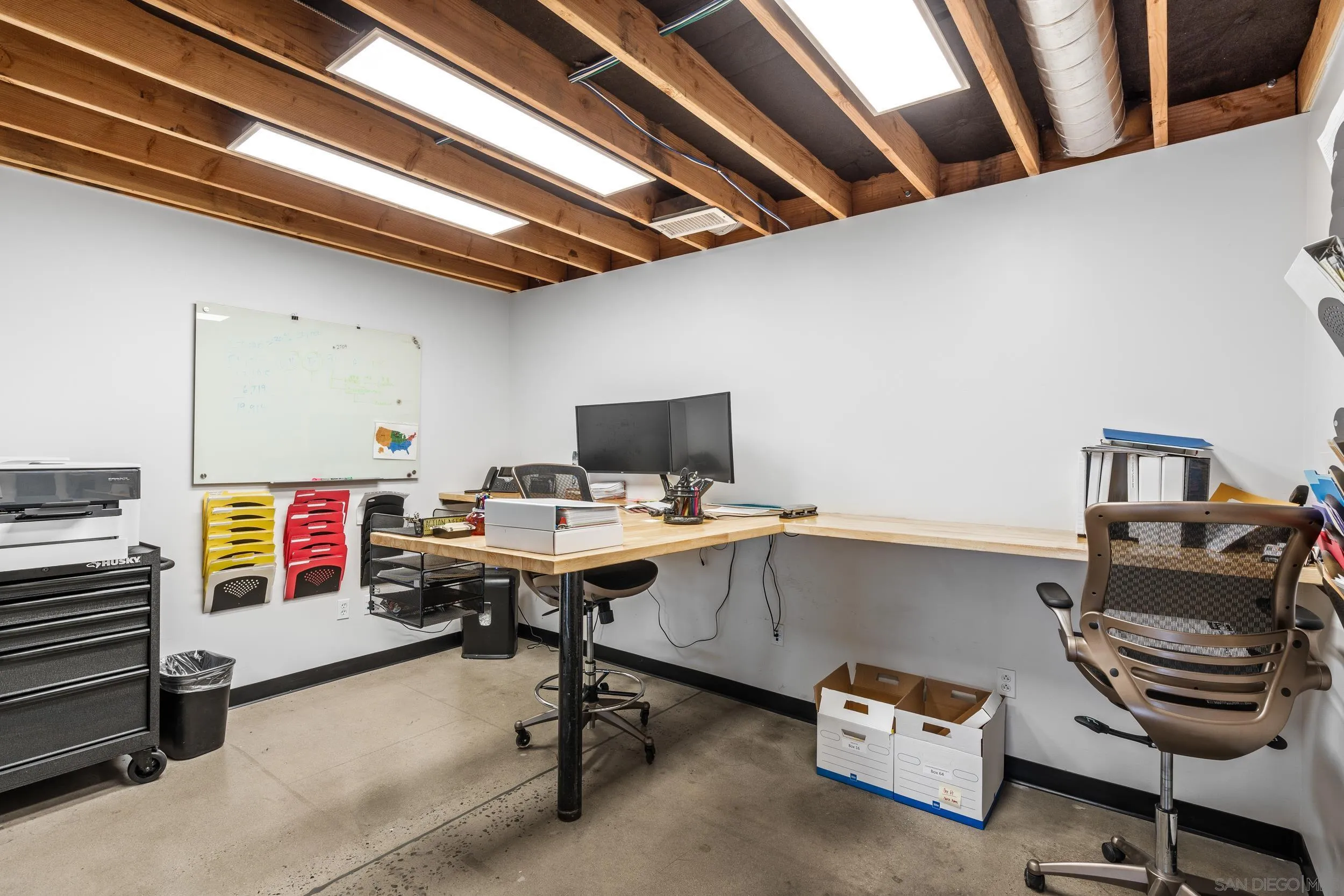 Rare Purchase opportunity in the heart of National City. The property is a flex-warehouse which has ~6,000 square feet of floor space between the useable ground floor and the renovated mezzanine spaces on each side. The warehouse can be used contiguously as one large space, or leave it as is and operate the space as two separate spaces. The two large roll up doors give easy access to the 28 foot clear height warehouse. The property fits perfectly for an owner/user or investor who would like to rent the entire space to a single tenant or multiple tenants.
