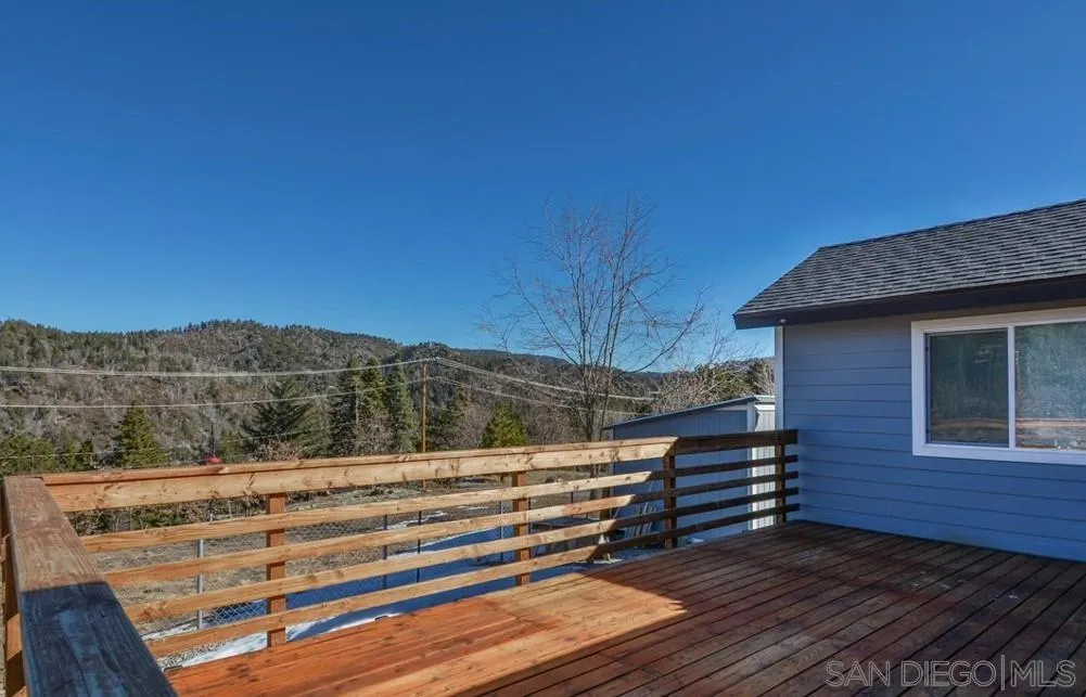Back on Market – No Fault of Property. Previous buyer was unable to perform. Discover the charm of this single-level mountain home in Running Springs, CA. Enjoy an open and inviting atmosphere with just five steps leading into this newer residence. Situated on a spacious double lot, this property offers ample space and potential. Relax on the expansive deck and take in the breathtaking distant mountain views. The kitchen boasts elegant granite countertops, while tile floors span throughout the home, enhancing its modern appeal. The fenced yard provides privacy and includes a convenient storage shed. Ideally located, this home is close to town, the highway, and nearby ski resorts, making it a perfect retreat for mountain living.