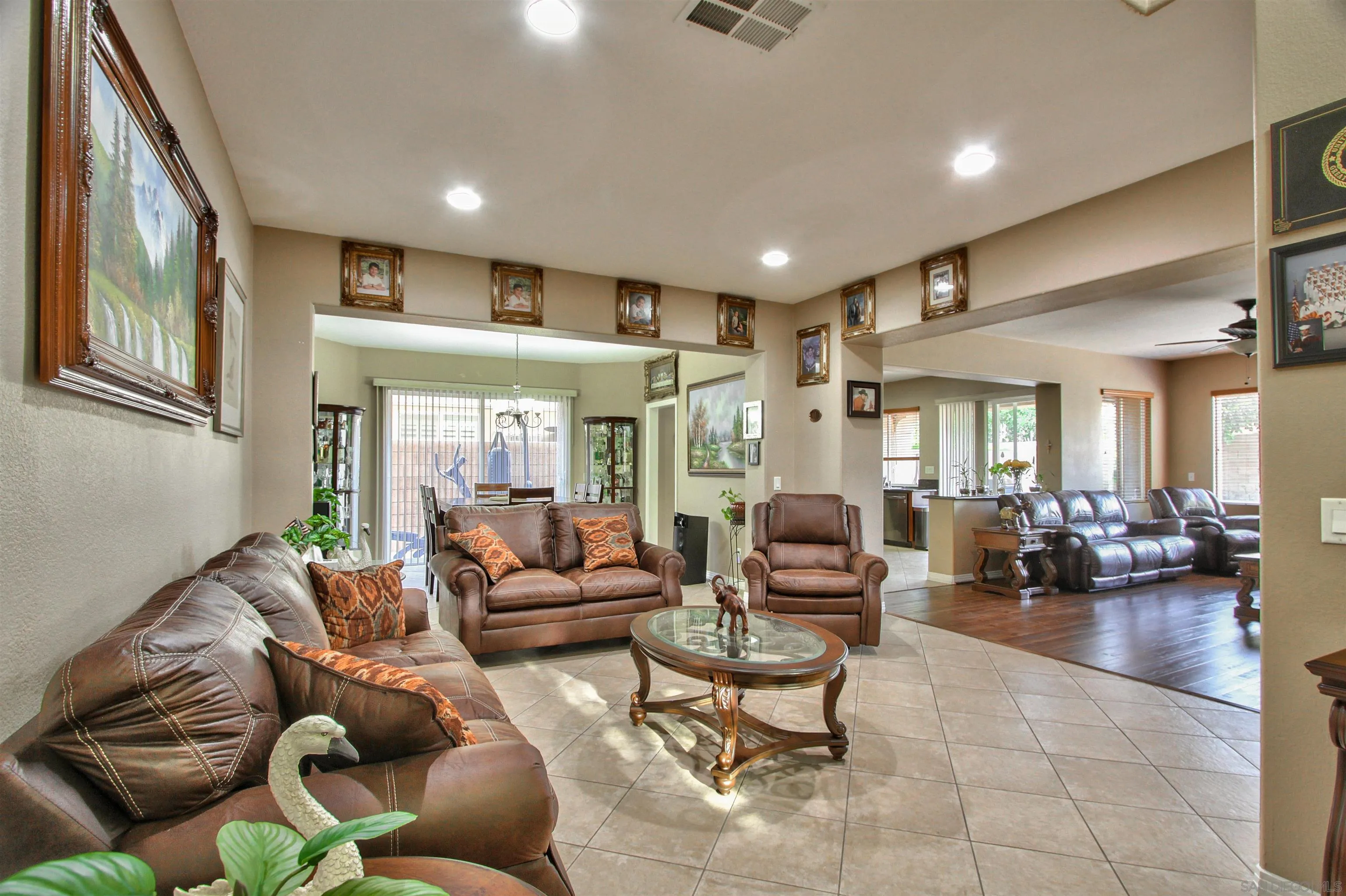 Welcome to one of the most expansive floor plans in the gated Prado community. The main floor features high ceilings, a family room with a fireplace, a large living room, and a modern kitchen equipped with granite countertops and a central island. There are also two large bedrooms downstairs, including one with an ensuite bathroom. The curved staircase leads to a loft area, four additional bedrooms and a laundry room. The primary bedroom is generously sized and includes its own balcony with mountain views. The fully enclosed yard contains various fruit trees, a firepit, a raised garden bed, and ample space for playing, relaxing, or entertaining. The attached two-car garage offers plenty of storage and has nice epoxy flooring. This beautiful house is very close to the Prado community park.