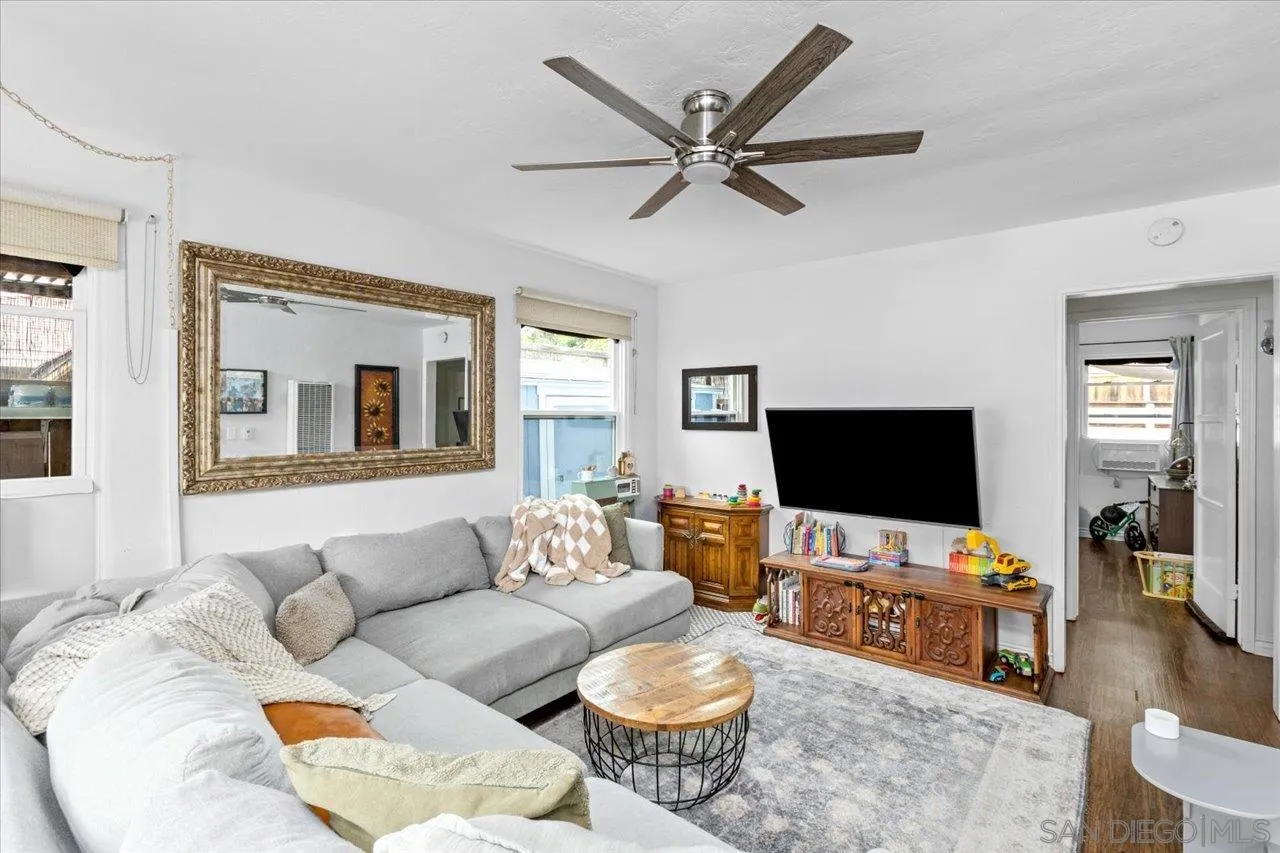 New pricing! Renovated, single-level San Diego home w/ prime location that is loaded with charm & character! Assumable VA loan! Curb appeal is apparent from the moment you drive up from the exterior paint & front door to the beautifully fenced turf yard & porch area with stunning rock & wood walls & benches. Step inside to beautiful warm brown luxury vinyl floors & a serene living space adjoining the stylishly updated kitchen. The robin's egg blue & white cabinetry, counters, backsplash, exposed shelves & stainless steel appliances make for a modern designer kitchen. Plenty of cabinets & open & closed shelving makes storage abundant. Two spacious bedrooms plus a third, private bedroom on the other side of the home (converted from the former garage) complete the floor plan along with a remodeled bathroom with shower/tub combo. Two of the bedrooms have very deep & tall closets to maximize the storage potential of this cozy home. The inside laundry area/mud room is large enough to accommodate a full-size washer/dryer side-by-side plus extra storage. Outside, enjoy the spacious low-maintenance backyard with concrete, turf, & a covered patio area. A hose running to the upper turf yard area - accessed by a gated staircase - allows for easy watering of the raised vegetable/plant gardens. Sit beneath the gorgeous mature Pepper Tree & enjoy the San Diego sunsets & evening breezes. This home also features 2 outside storage sheds that will convey! NO HOA, NO Mello-Roos, & a convenient location just off of College offers easy access to everywhere you want to be in San Diego!