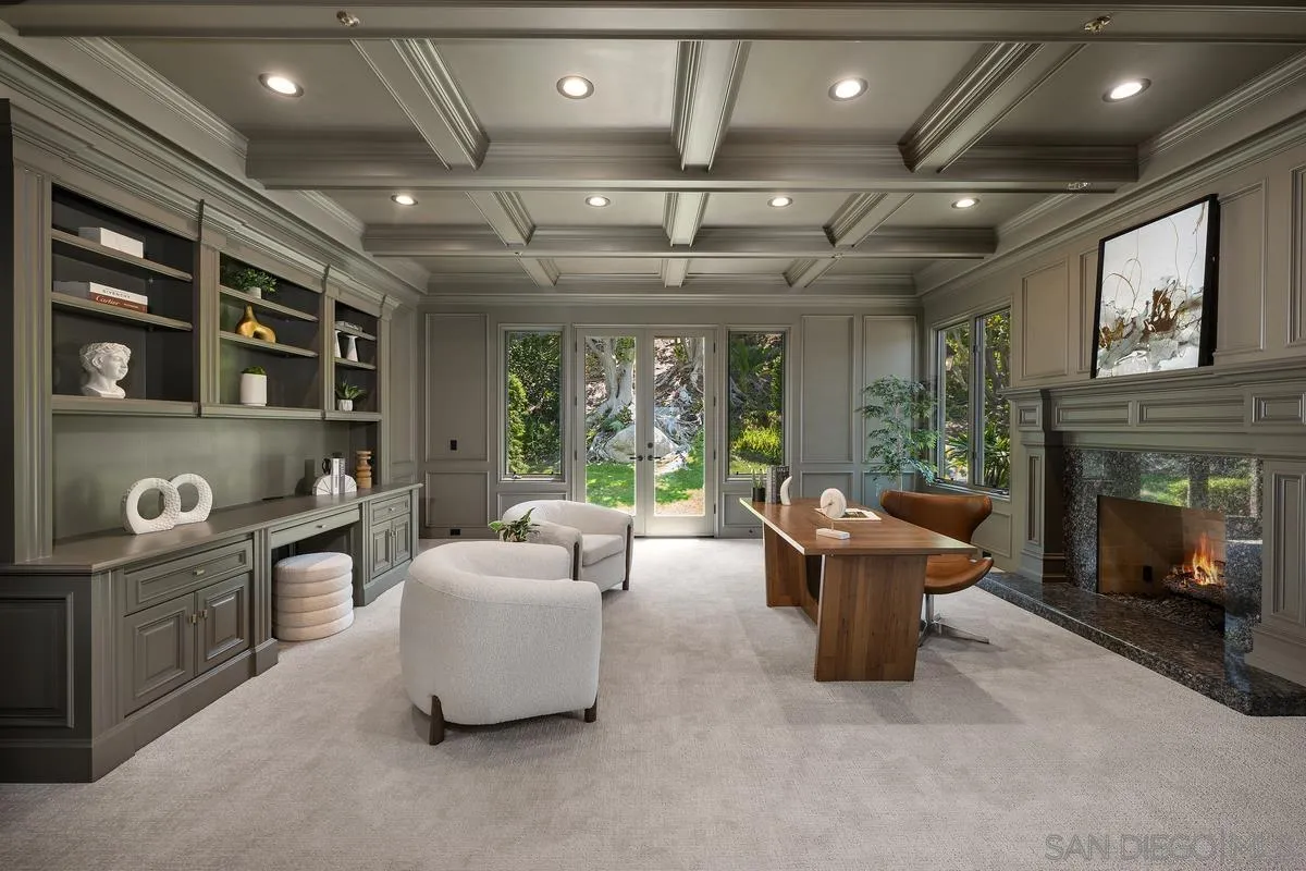 Timeless Luxury! Remodeled and turn-key! Enjoy resort-style living with panoramic views, an infinity-edge pool, expansive outdoor kitchen, and seamless indoor-outdoor flow. Inside, grand rotunda entry, chef’s kitchen with Sub-Zero appliances, spacious family and living rooms, and custom library/ office offer luxury at every turn. Primary suite is located downstairs. Newly renovated primary bath features rain showers, a Victoria + Albert soaking tub, dual primary bath suites with individual vanities and water closets. Entertainers dream with a temperature-controlled wine room, bar, formal dining area. Gorgeous outdoor terrace with fire pit, BBQ island & unforgettable sunset views. Fully paid solar. 3-car garage. This estate offers comfort, style, and sophistication in one of Rancho Santa Fe’s most desirable communities.