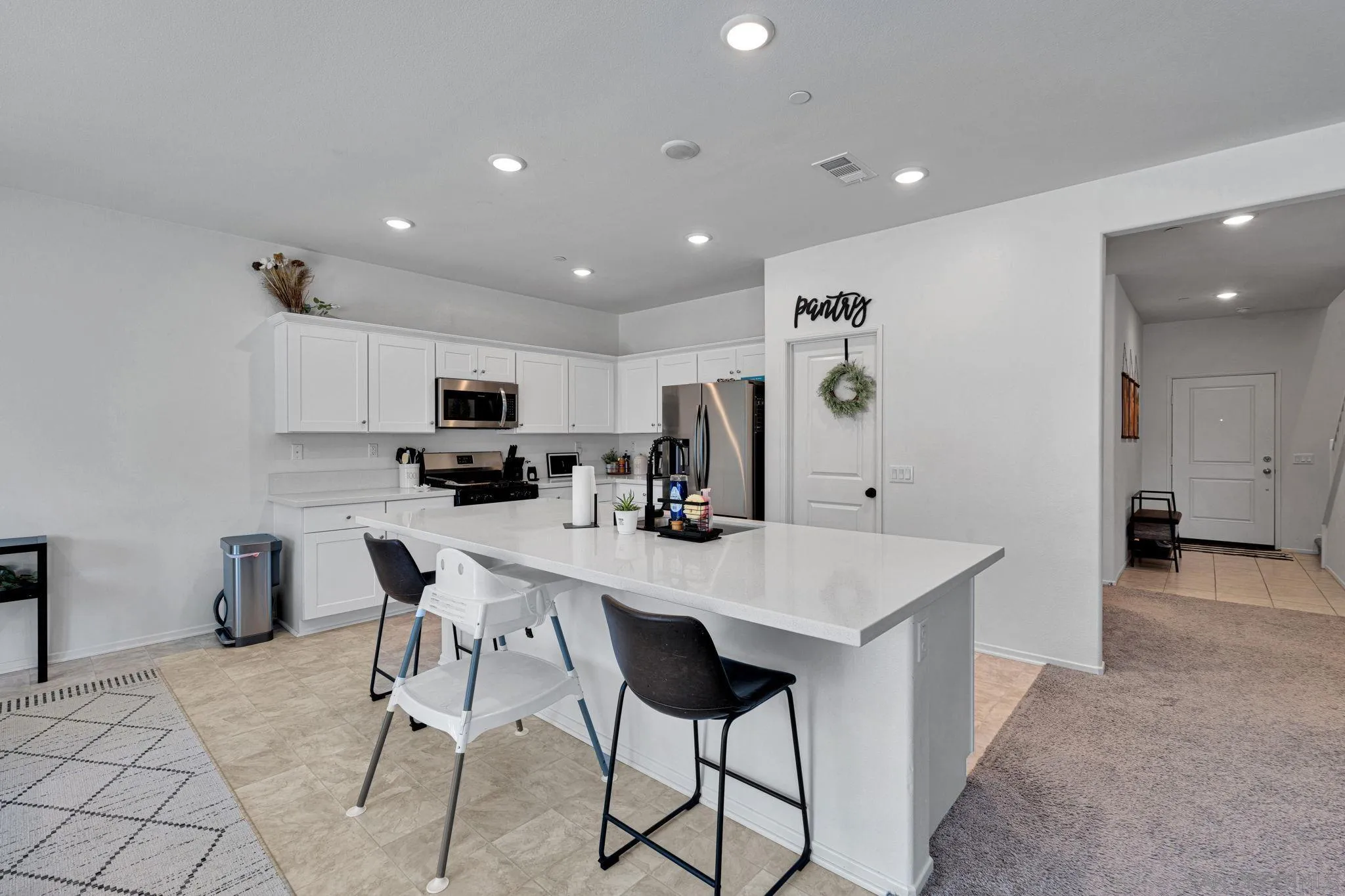 Nestled at the end of a peaceful cul-de-sac, this nearly new home offers the perfect blend of style, comfort, and functionality. From the moment you arrive, the desert-inspired front landscaping sets a warm and inviting tone, perfectly complementing the home’s modern curb appeal. The expansive, finished 3-car garage provides not only ample parking but also plenty of storage and workspace for hobbies or projects. Step inside and you’ll immediately be drawn to the heart of the home – the open-concept living space. The stunning white kitchen boasts a massive center island topped with sleek quartz countertops, creating the ideal gathering spot for family meals, entertaining friends, or simply enjoying your morning coffee. The bright, airy design flows seamlessly into the dining and living areas, making everyday living and entertaining effortless. With 3 full bathrooms and a well-appointed downstairs bedroom, this home is designed with both convenience and flexibility in mind – perfect for guests, multi-generational living, or a home office. Upstairs, a spacious loft provides even more room to relax, play, or work. The private living spaces are just as impressive. Each bedroom features generously sized closets, offering plenty of storage. The upstairs hall bath is beautifully designed with dual sinks, making mornings easier for a busy household. An upstairs laundry room adds another layer of convenience you’ll appreciate every day. Retreat to the oversized backyard – a blank canvas ready for your vision. With enough room for a sparkling pool, or an outdoor kitchen!