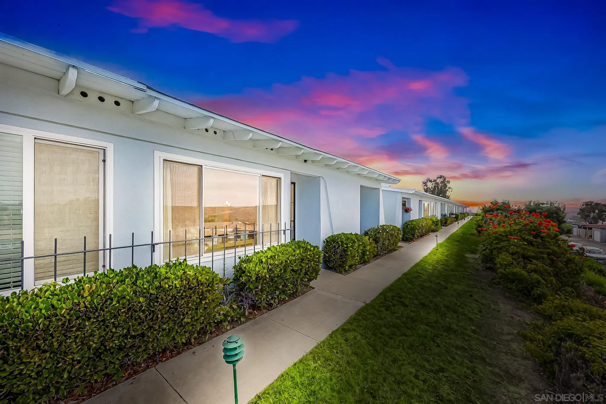 Panoramic views + active 55+ lifestyle — Oceana has it all! Remodeled home with south hill & greenspace views. Kitchen boasts quartz counters, stainless range, newer fridge & dishwasher. Features include luxury wood-style floors, Solatubes, recessed lighting, spa-like onyx walk-in shower, quartz vanity, dual-pane windows, and a sloped roof that keeps the home cozy in winter/cool in summer. Gated carport patio w/ terrazzo flooring ideal for you & (2) pets. Recent updates: garage door/opener & water heater. Oceana offers an active 55+ community: concerts, yoga, pickleball, woodworking, 2 pools, dog park, community garden, & more. HOA includes water, sewer, trash, Cox basic cable + HBO/Showtime, landscaping, & insurance. Close to beach, shopping, dining & Sprinter! Call today to see why Oceana is where you’ll want to live.