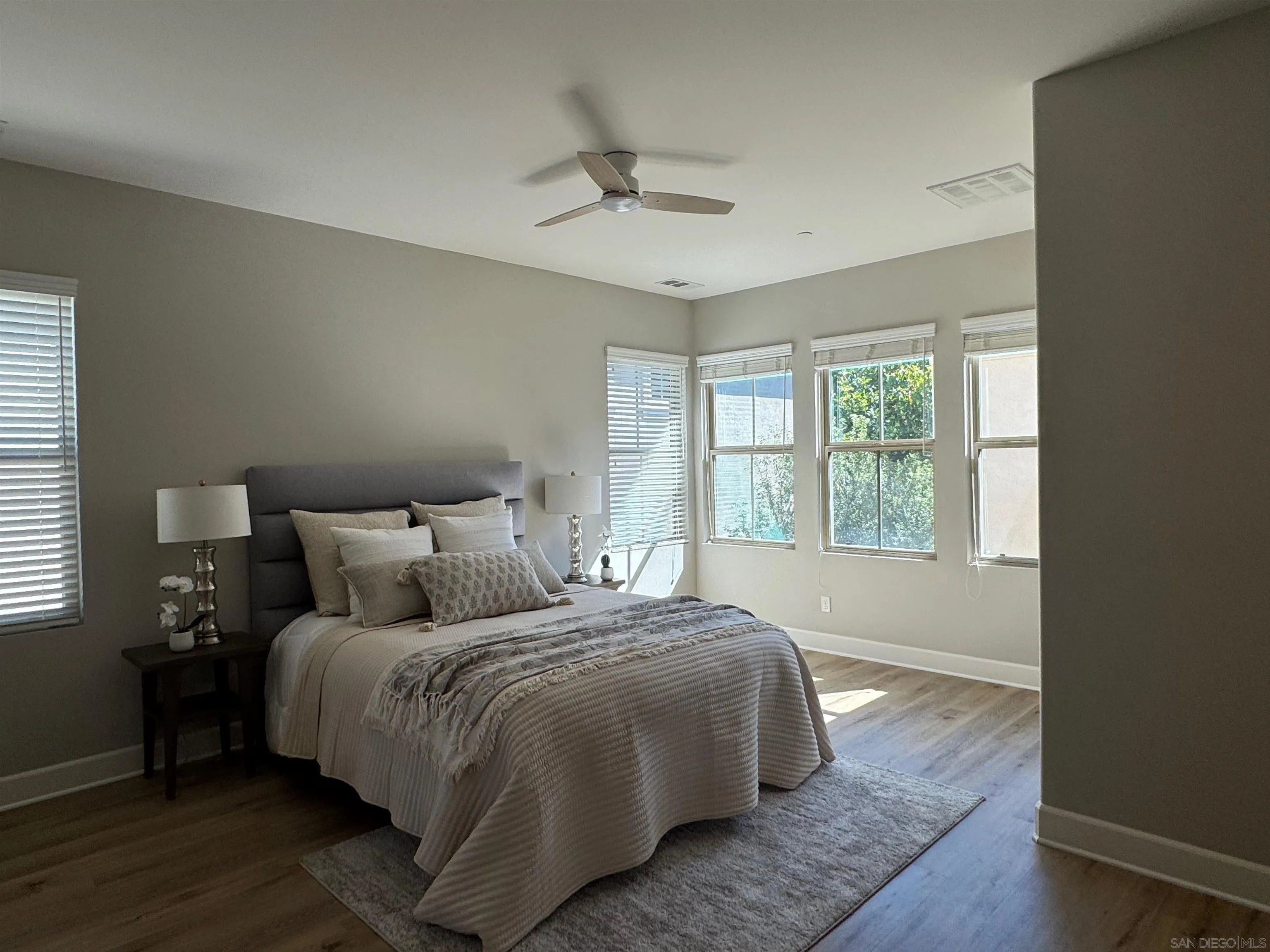 Welcome to this Hampton Lane Plan 2 home in the sought-after Pacific Highlands Ranch (PHR) community, just blocks from top-rated schools and parks. Wood floors flow seamlessly throughout the home, while the south-facing yard fills the space with abundant natural light. The first floor features a versatile layout with a formal living room, office, a bedroom, and a full bath. Upstairs, the second floor offers a spacious primary suite with a walk-in closet and a private bath retreat. Two additional bedrooms, a full bath, and a dedicated laundry room complete the upper level.