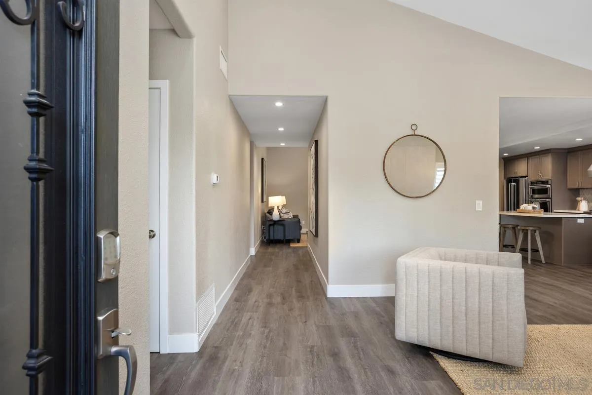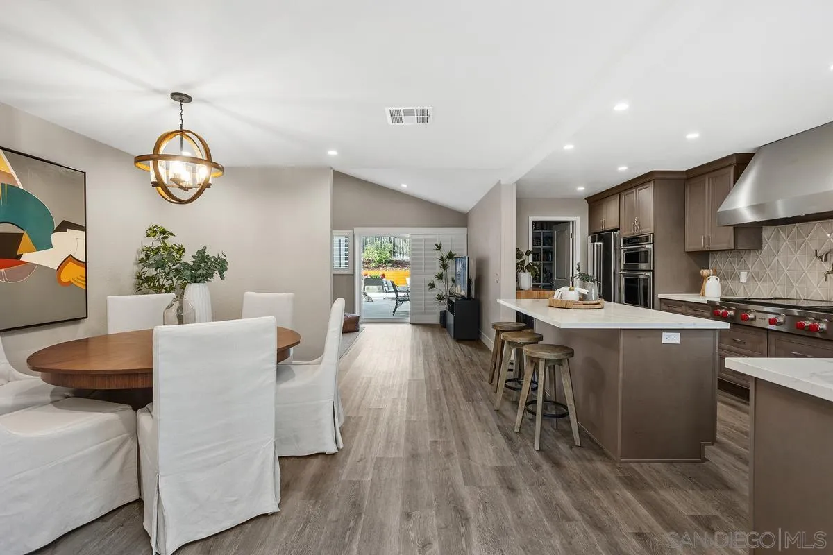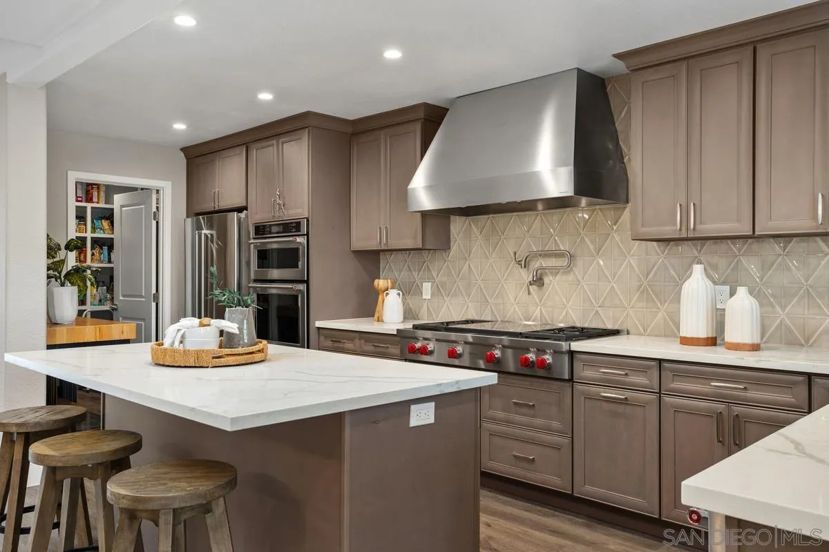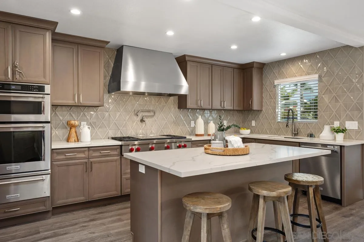 Discover the perfect blend of single-level luxury and thoughtful design in the highly sought-after Village Park community of Encinitas. Completely remodeled in 2020 with impeccable attention to detail, this move-in-ready home features a bright, open-concept floor plan and premium finishes throughout. The gourmet kitchen is a chef’s dream, equipped with a Wolf range and pot filler, Vent-A-Hood ventilation, KitchenAid in-wall oven, microwave/convection combo, warming drawer, deep Kohler sink with filtration, custom cabinetry, quartz countertops, designer tile, a spacious walk-in pantry, a coffee bar, and a second refrigerator—every detail designed to elevate your cooking experience. The private primary suite is a true retreat, boasting Graff fixtures, an expansive walk-in closet, in-suite laundry with an LG Styler Smart Steam Closet, and a secure fire-resistant safe for peace of mind. Additional highlights include two sets of washers and dryers, an owned 36-panel 9kW solar system, a 2016 YORK Affinity HVAC system, a finished two-car attached garage with an extra-wide driveway, and two outdoor storage sheds. Set on nearly a quarter-acre lot at the end of a quiet cul-de-sac, the large backyard offers endless possibilities for entertaining, outdoor dining, or tranquil relaxation. Enjoy exclusive access to community amenities such as a pool, tennis courts, playground, and clubhouse with event space. Perfectly located just minutes from pristine beaches, shopping, dining, Highway 5, and the breathtaking 979-acre San Elijo Lagoon with over nine miles of scenic trails.