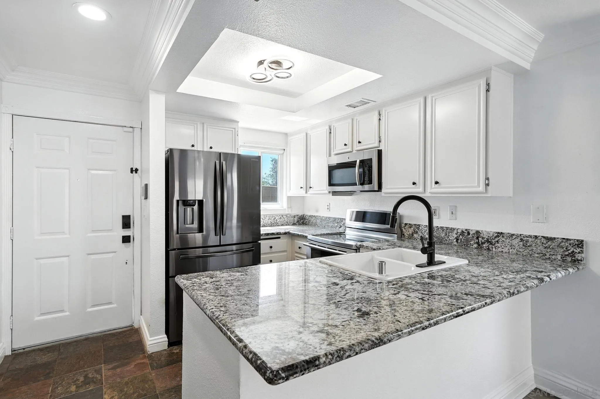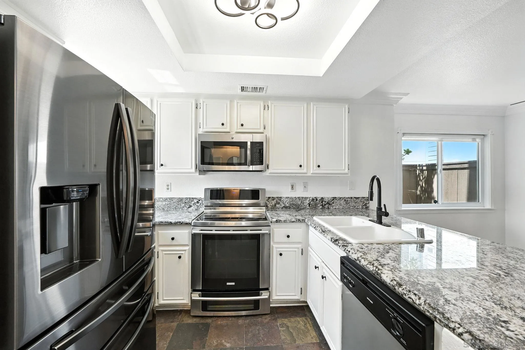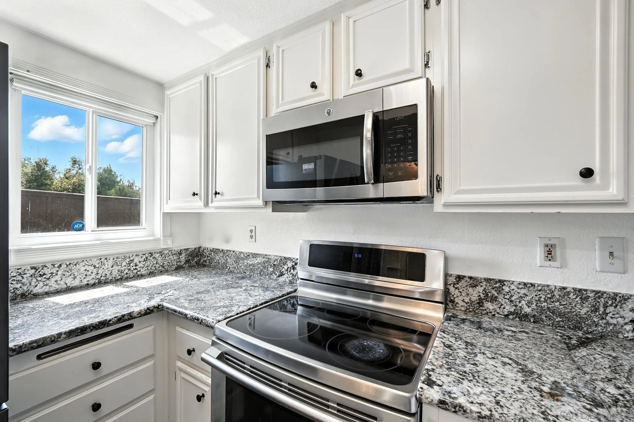 Welcome to this updated 2 bedroom, 2.5 bathroom townhome in the gated Ashford Parke community. Freshly painted throughout, this home features an inviting layout with each bedroom offering its own private bathroom, perfect for comfort and convenience. The kitchen boasts upgraded appliances and modern finishes, seamlessly flowing into the living and dining areas. Step outside to your own small private-use yard, ideal for relaxing or entertaining. Enjoy the benefits of solar for energy efficiency, plus two assigned parking spaces, one covered. With easy access to shopping, dining, and freeways, this home combines style, function, and value in one!