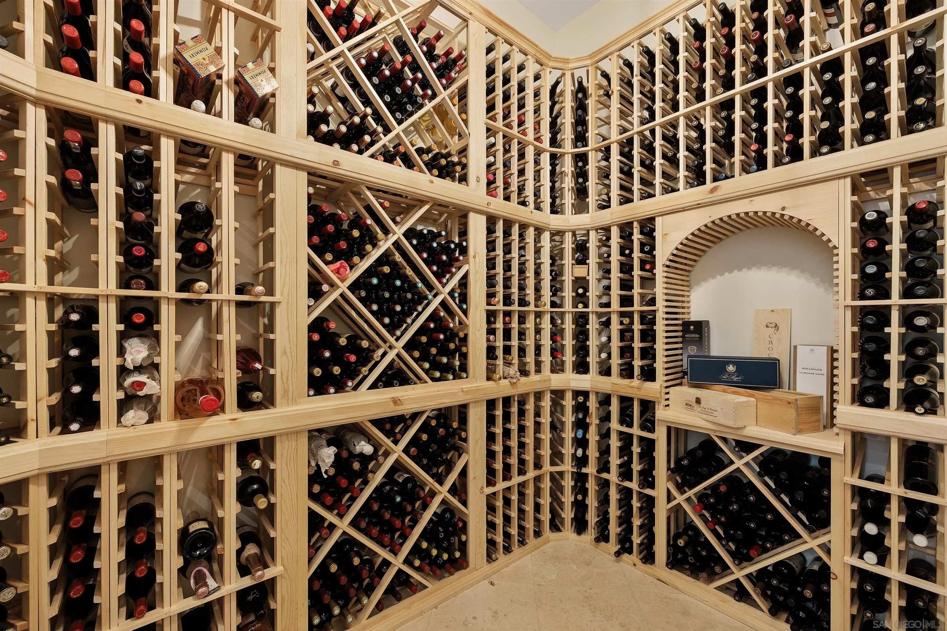 This absolutely stunning custom estate in The Crosby at Rancho Santa Fe was completed in 2022, making it one of the newest homes in this prestigious community! Located within the top-rated Solana Santa Fe (K–8) and Torrey Pines High School districts, near premier private academies. Designed by renowned local architect Scott Grunst, the home is situated on a quiet, beautiful street lined with luxury residences. The 6,523 sq. ft. residence offers timeless elegance and modern luxury. A grand 22-ft foyer welcomes you with soaring arched windows, hardwood floors, exposed solid wood beams, and a dramatic staircase with wrought iron railings. The chef’s kitchen features an eight burner Wolf range with an infrared charbroiler, 64" Electrolux fridge/freezer combo, and double Electrolux dishwashers, while the wet bar has a built-in kegerator. Wine lovers will appreciate the custom, temperature and humidity-controlled 800-bottle wine cellar with additional storage space. The house has Brazilian quartzite countertops and custom-built stained alder wood cabinetry throughout. Enjoy seamless indoor-outdoor living with disappearing pocket sliding doors that open the main living room to a covered loggia with full outdoor kitchen, fireplace, and Wolf BBQ. The resort-style backyard is very private and boasts a rim flow PebbleTec® coated pool, vanishing-edge spa, raised fire pits, and unobstructed sunset views over a protected natural preserve.
