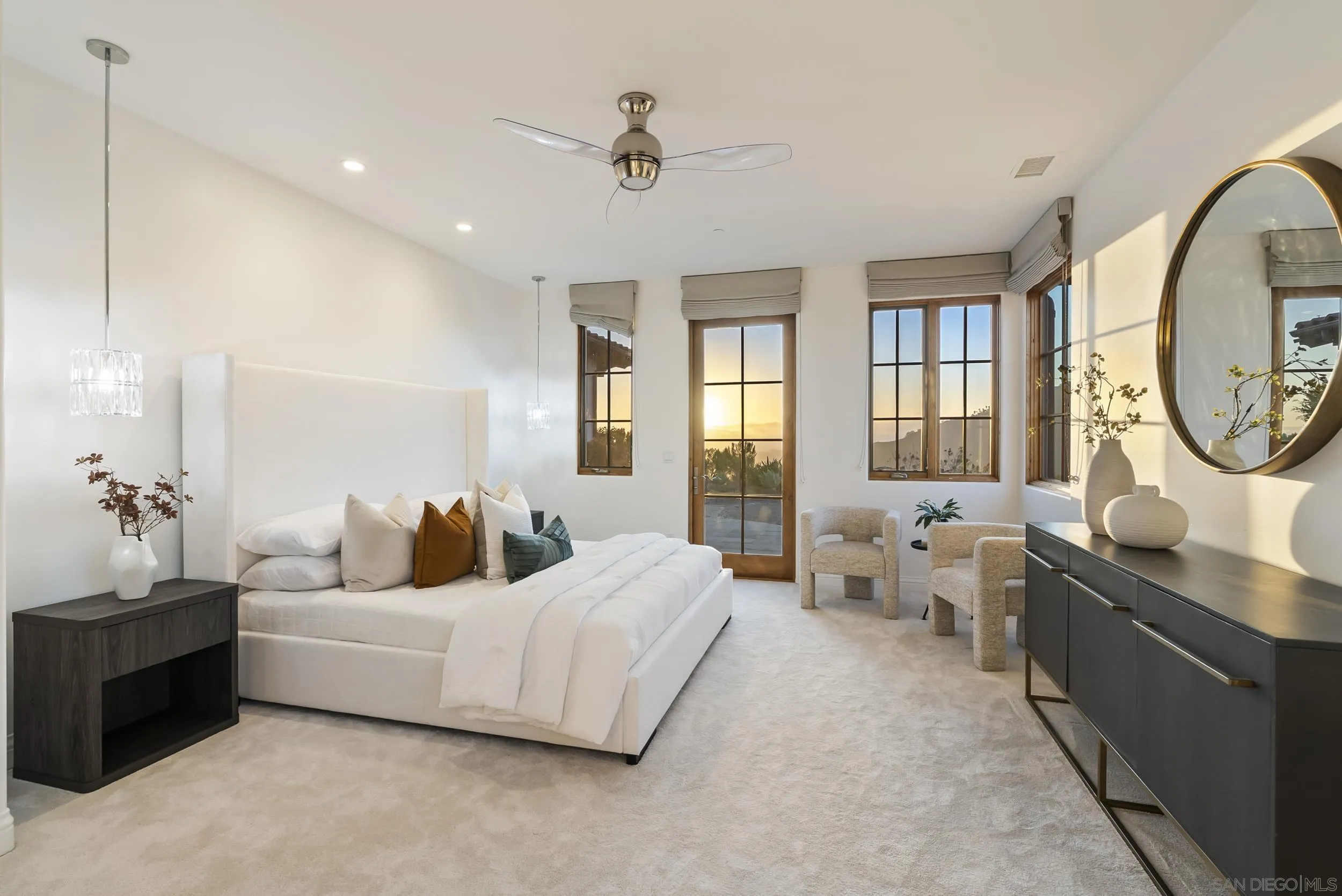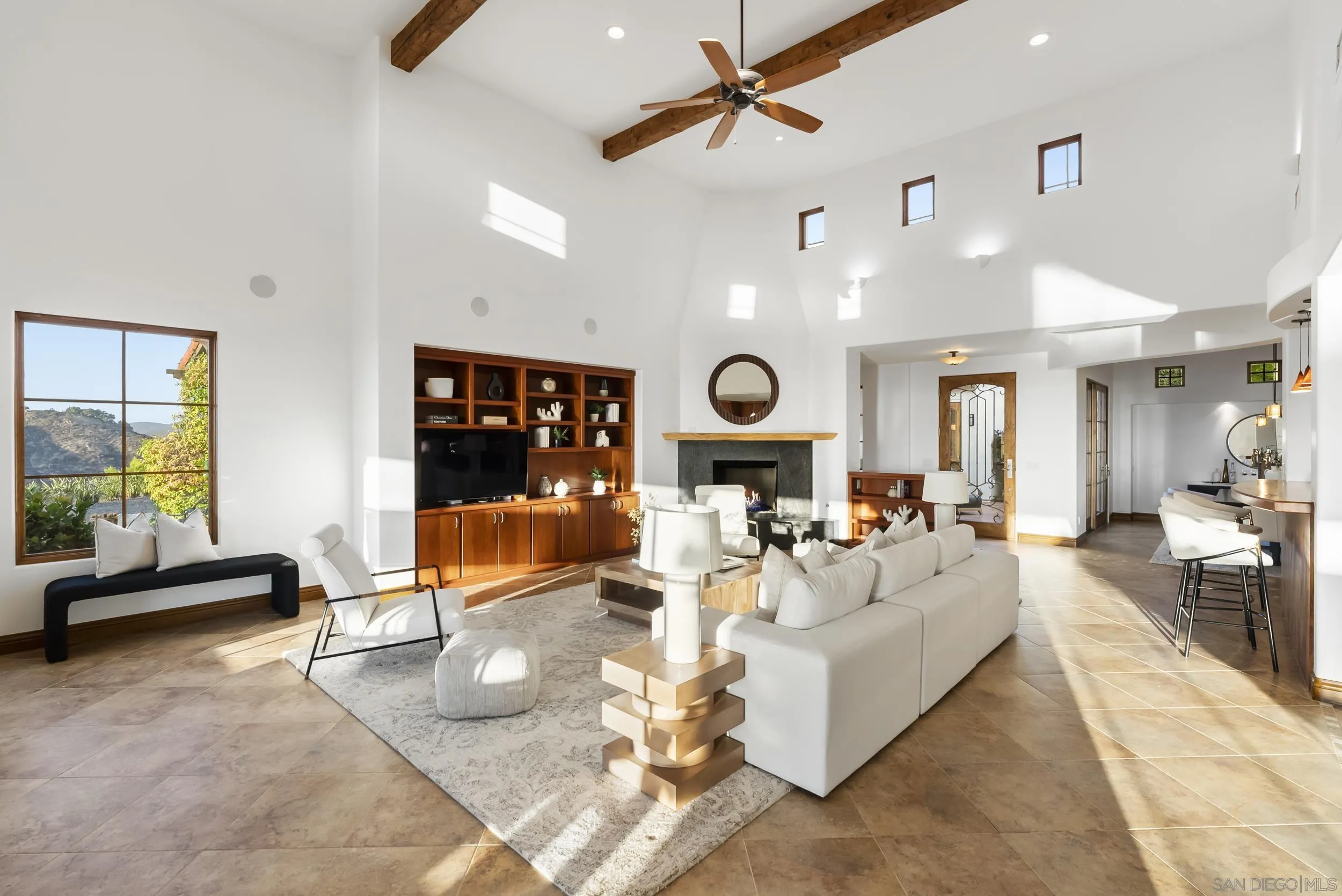 A chic & modern villa of boutique elegance and artful design. Perched atop a serene and private hillside in the prestigious guard-gated community of Cielo, this timeless Santa Barbara-style villa offers resort-style living at its finest. From the moment you step into the enchanting entry courtyard—complete with a cozy fireplace—you’re welcomed into a world of refined comfort and effortless indoor-outdoor living. This custom inspired villa showcases a spacious open-concept design that is as tasteful as it is inviting. At the heart of the home, a chef’s kitchen with a grand center island flows effortlessly into a sunlit breakfast nook and an expansive great room, creating the perfect setting for both everyday living and effortless entertaining. Thoughtfully designed for connection and comfort, the seamless layout blends timeless architecture with a warm, welcoming ambiance. The private quarters are designed for serenity and comfort. The primary suite serves as a true retreat, offering serene views, and a spa-inspired ambiance. A spacious secondary bedroom within the main residence also enjoys beautiful vistas, thoughtfully positioned away from the main living areas. The boutique-style attached casita provides a separate space for guests or a private home office, blending style with versatility. Showcasing breathtaking panoramic views that stretch in every direction from every room of the property. This custom inspired villa was designed to embrace San Diego’s coveted lifestyle, the expansive great room flows seamlessly to a covered outdoor loggia with a fireplace—ideal for...