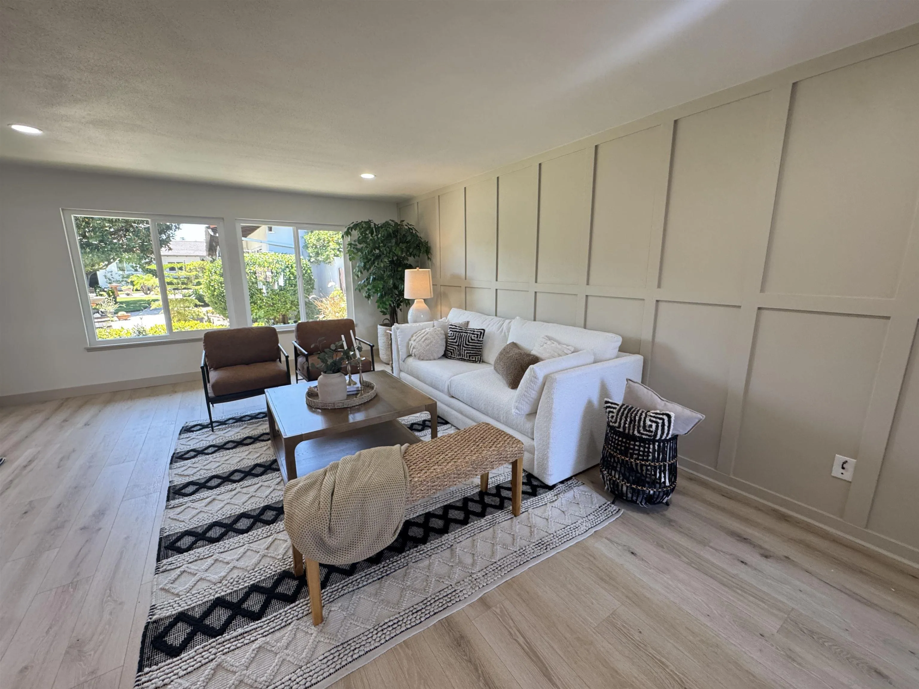 Welcome to this beautifully updated 2 bedroom, 2 bath condo in the highly sought-after Seven Oaks Haciendas, a 55+ community known for its peaceful setting and active lifestyle. This home has been thoughtfully renovated throughout, featuring brand-new dual-pane windows, fresh interior paint, and stylish luxury vinyl plank flooring, gorgeous board and batten wall in living room. The kitchen is completely new, with quartz countertops, shaker cabinets, and stainless steel appliances. Bathrooms are also completely renovated with luxurious finishes. Additional upgrades include a Brand New HVAC system, recently replaced hot water heater offering comfort and peace of mind. The spacious, private patio includes a laundry area, and there’s an adjacent carport plus a separate storage room for golf cart or just extra space for added convenience. Residents enjoy access to a well-equipped community center with a pool, gym, library, and a variety of clubs and classes making it easy to stay active and connected. HOA also covers water, trash, exterior maintenance,This home truly has it all! Don’t miss your chance to make it yours.