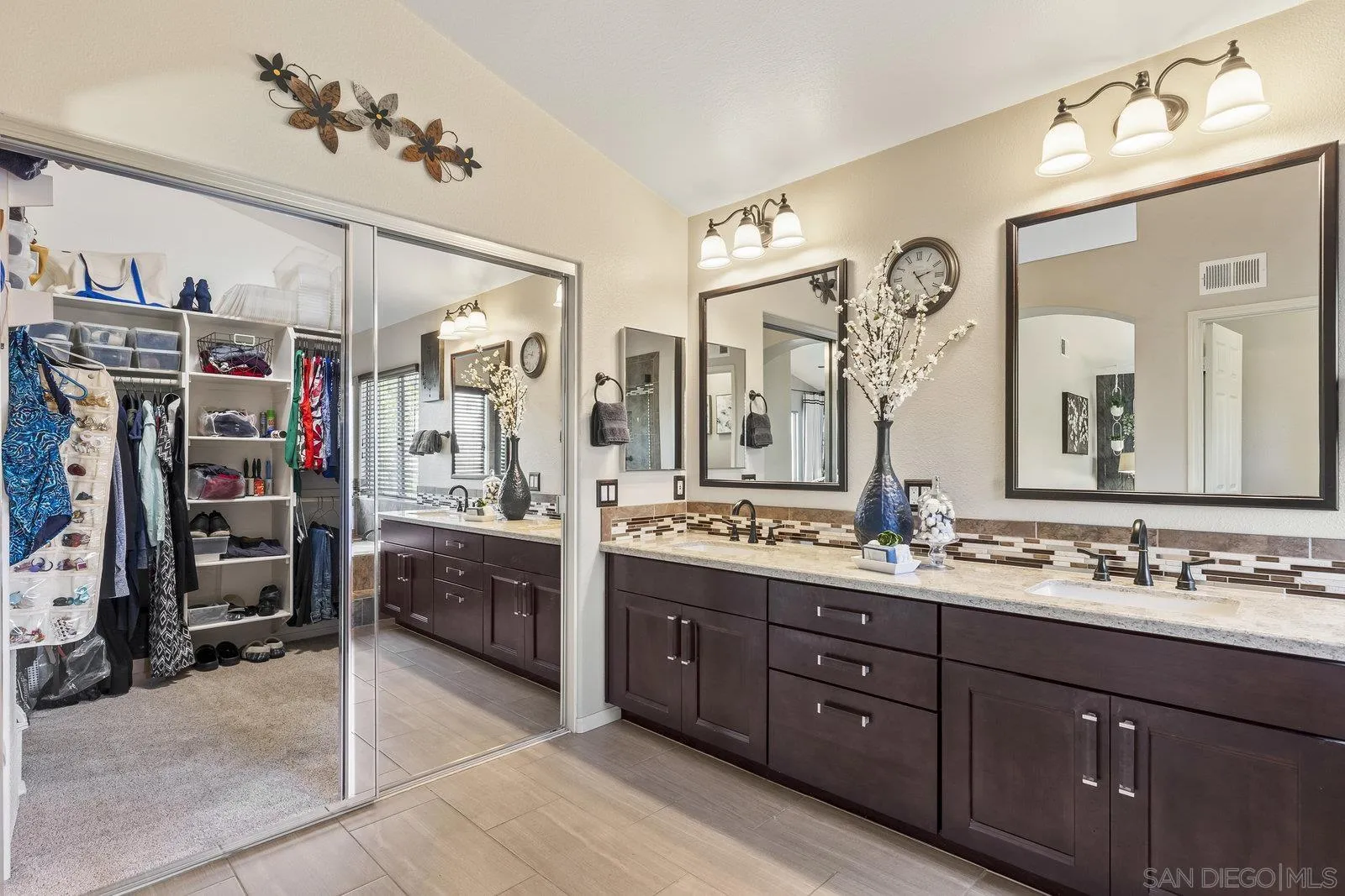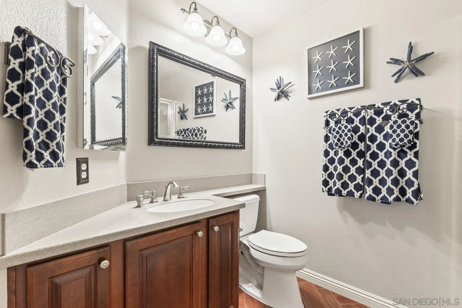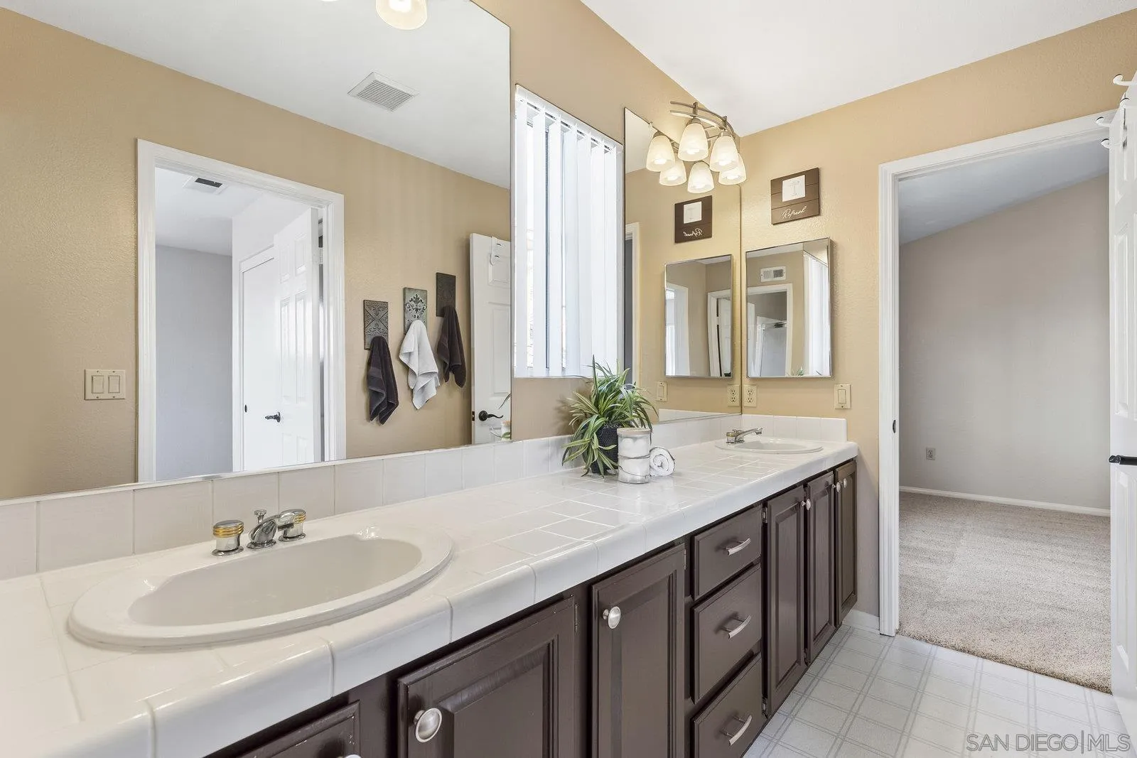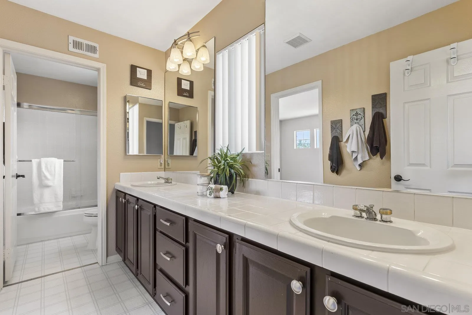 Welcome to this inviting home in the highly sought-after Park Village community. A bright and open floor plan with vaulted ceilings and large windows creates a welcoming atmosphere filled with natural light. The main level includes a full bath and versatile office or flex room, perfect for guests or working from home. The kitchen features granite counters, stainless steel appliances, rich wood cabinetry, and greenhouse windows looking out to the backyard. Upstairs, spacious bedrooms provide comfort and privacy, while the primary suite is a true retreat with a step-in shower, soaking tub, dual vanities, and a walk-in closet. The living areas are designed for both everyday living and entertaining, with a cozy fireplace and seamless flow between spaces. Step outside to a private backyard oasis with multiple seating areas, mature landscaping, and plenty of space to relax or host gatherings. A built-in BBQ makes outdoor dining and entertaining easy, while lush greenery and shade from mature trees create a tranquil setting. Additional highlights include owned solar for energy efficiency, and a three-car garage. Park Village is known for its welcoming community feel, nearby trails and open space, top-rated Poway Unified schools, and convenient access to shopping, dining, and freeways. Experience the perfect balance of comfort, convenience, and the vibrant lifestyle that makes Park Village so desirable.