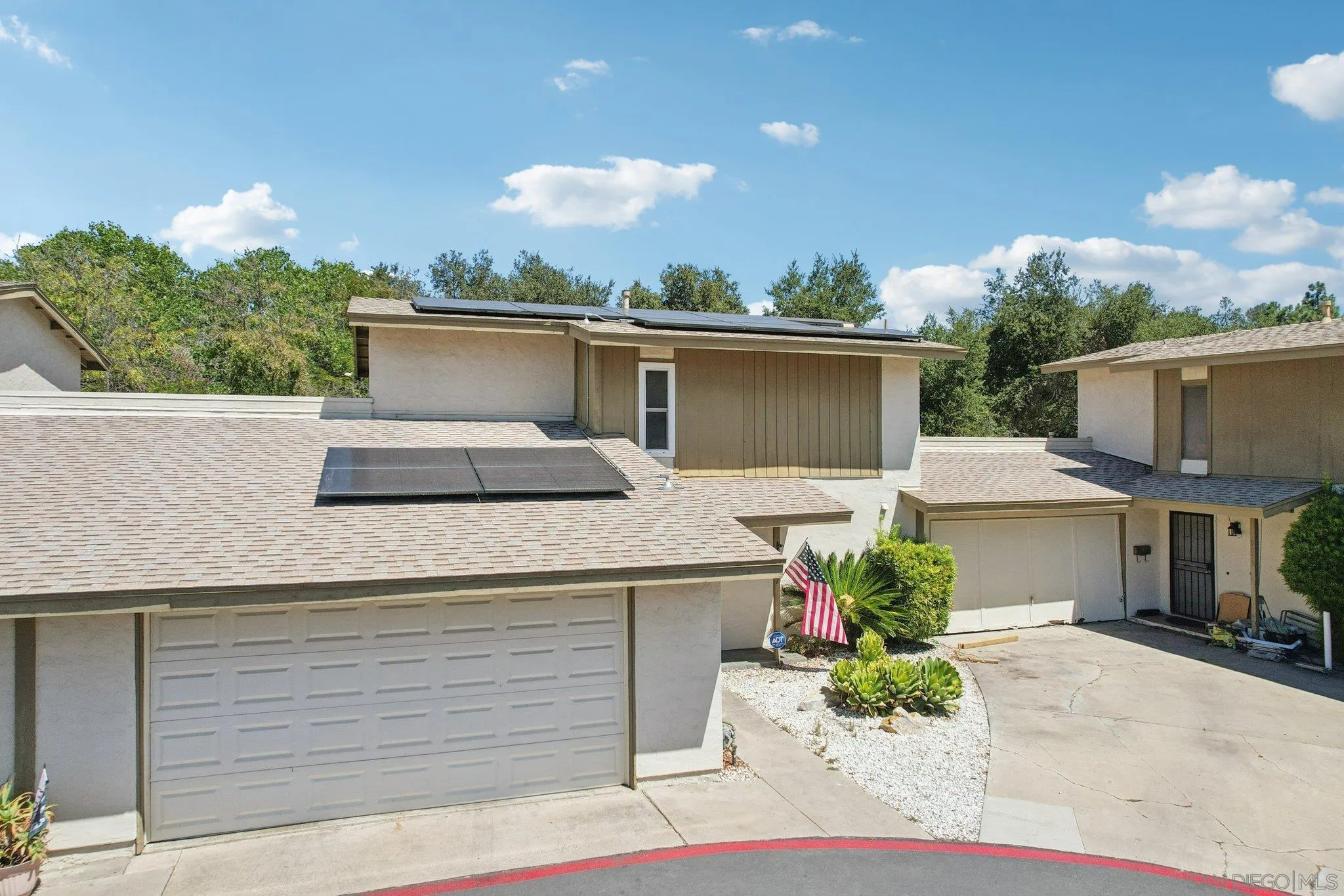 Welcome to Casa Del Sol Estates! Move-in ready 4BR/2BA townhome with approx. 1,497 sq. ft. Features include a downstairs bedroom with walk-in closet, updated HVAC, fresh paint, newer carpet, dual-pane windows & modern fixtures. Kitchen offers a 5-burner stove, gas oven, new dishwasher, new countertop & refrigerator. Enjoy solar panels with battery backup, providing energy efficiency & peace of mind. Attached 2-car garage with laundry hookups plus 1 extra parking space. Private fenced patio opens to a greenbelt. HOA amenities: pool, picnic area, RV parking & landscaped common areas. Convenient Lakeside location close to shopping, dining, Lindo Lake & freeway access.