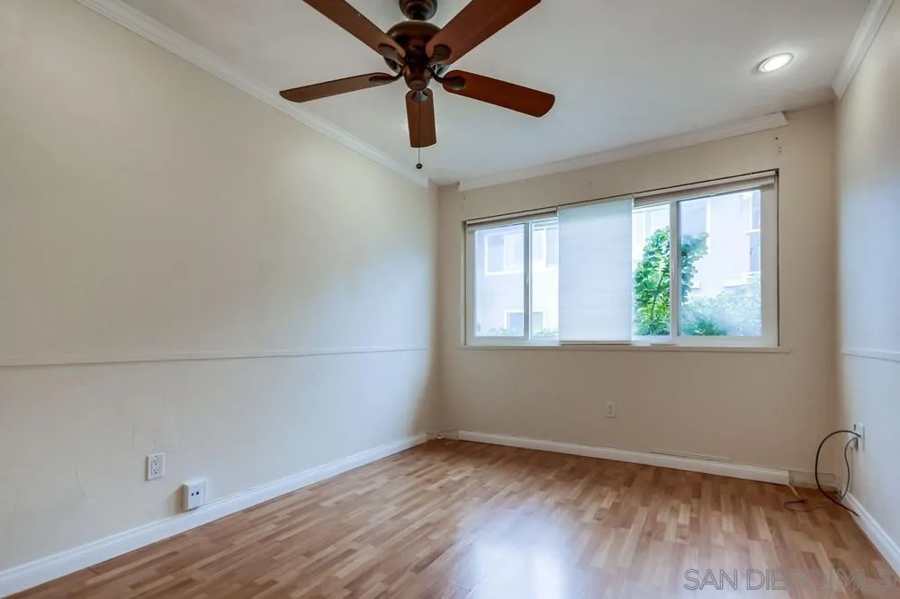 Condo is in cosmetic condition. Corner location townhome with city and sunset views. Nicely renovated main bathroom with large tub/shower. Upgrades include all new stainless appliances, solar, tankless water heater, water softner and reverse osmosis system and mini split AC and heat throughout the unit. Finished basement bedroom with a half bath. Recessed lighting throughout the unit. The parking area features a 1 car enclosed garage, 1 carport, 1 reserved parking space and an EV system to charge your vehicles. This is a must see and the best deal for next owner to add their personal touches. Close walk to USD.