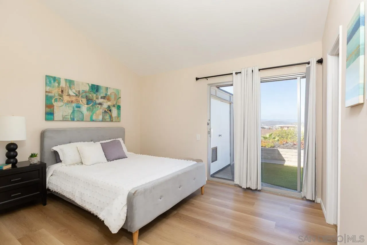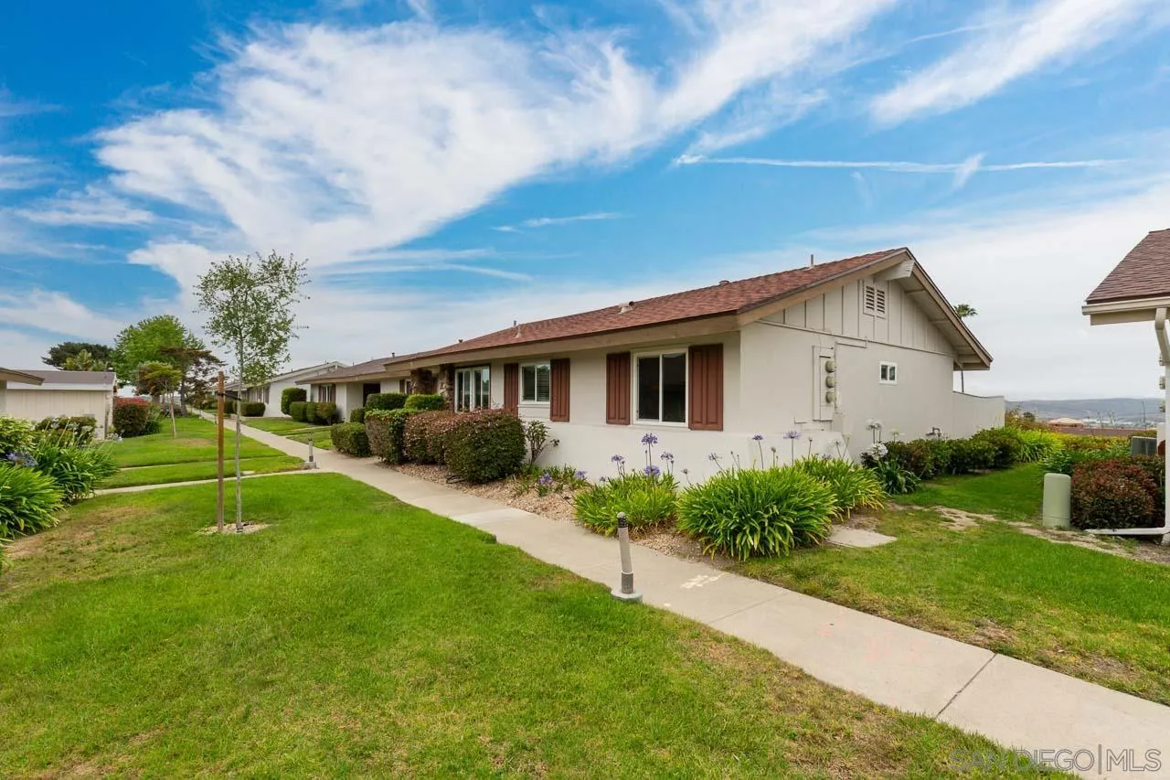 Beautifully remodeled attached home in the highly desirable senior community of Oceana, showcasing expansive, vista views of the mountains. This light-filled end unit has been thoughtfully updated with luxury vinyl plank flooring and fresh designer paint throughout. The open living area flows seamlessly into the bright enclosed sunroom, creating an airy, inviting atmosphere filled with natural light. The sunroom offers a versatile additional living space, ideal for a home office, craft room, or a relaxing spot to gather with friends while enjoying the views. The upgraded kitchen features soft-close shaker-style cabinetry, granite countertops, and stainless-steel appliances—perfect for both everyday living and entertaining. The spacious primary suite includes dual closets and a private ensuite bathroom. A second bedroom and full guest bathroom provide comfortable accommodation. Step outside to the rear patio, complete with low-maintenance turf, where you can unwind while taking in the stunning mountain views. Floor plan included in pics, square footage from floor plan and differs from tax records. Additional features include a detached one-car garage with ample storage, located just steps away. This move-in-ready home offers a rare opportunity to enjoy resort-style living in one of Oceanside’s most sought-after 55+ communities with a wide array of amenities. See it today.