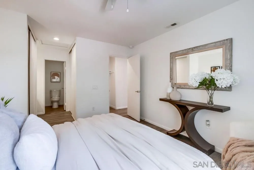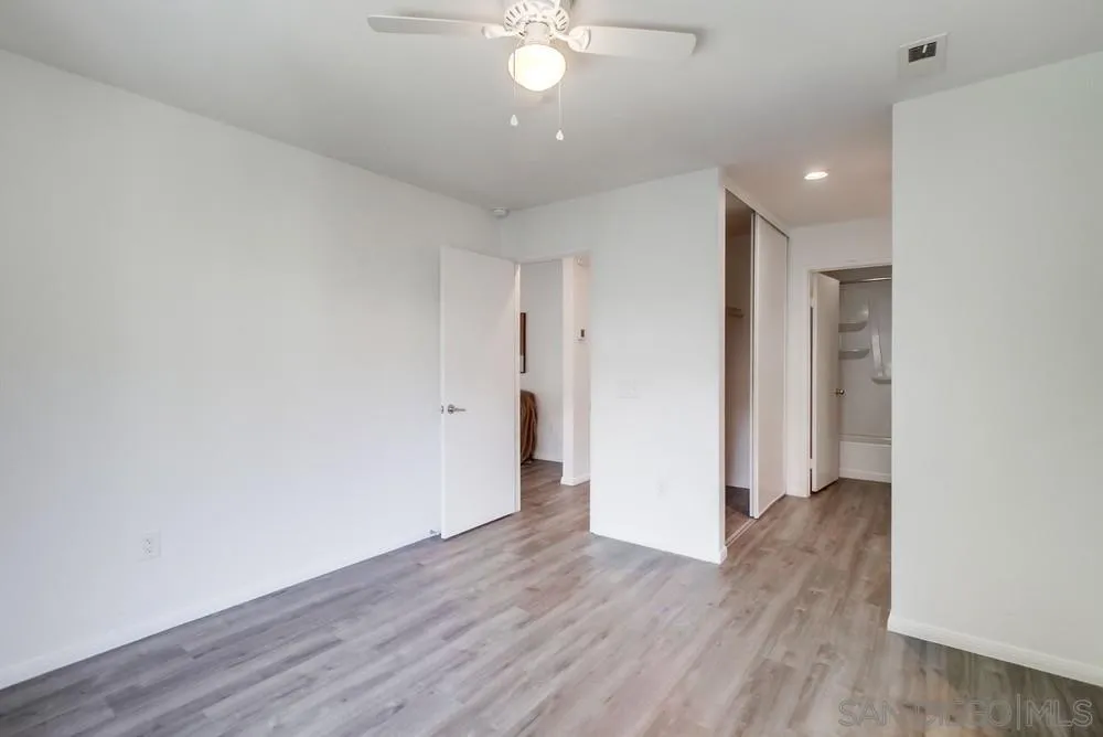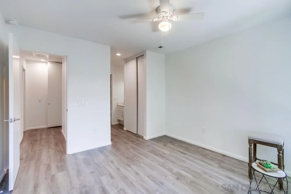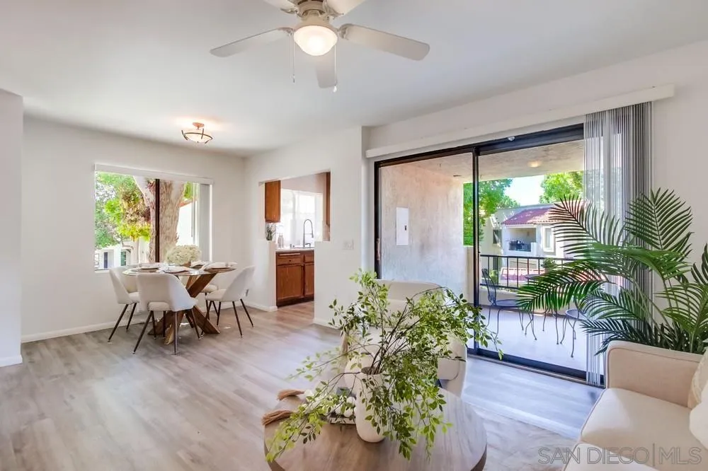 Motivated Sellers! Centrally located and move-in ready, this 2 bed, 2 bath upper-level condo offers 866 sq ft of comfortable living in the highly desirable Mira Mesa community. The kitchen features granite countertops, a subway tile backsplash, modern cabinetry, and a 4-burner gas range. A covered balcony with a storage closet includes full-size washer/dryer hook-ups for added convenience. Enjoy a quiet, well-maintained complex with a community pool and spa, assigned covered parking just steps from your door, and plenty of guest parking. Walk to nearby parks, schools, and shopping centers—it's a practical and convenient location. Ideal for first-time buyers, investors, or anyone seeking low-maintenance living in a central San Diego neighborhood.