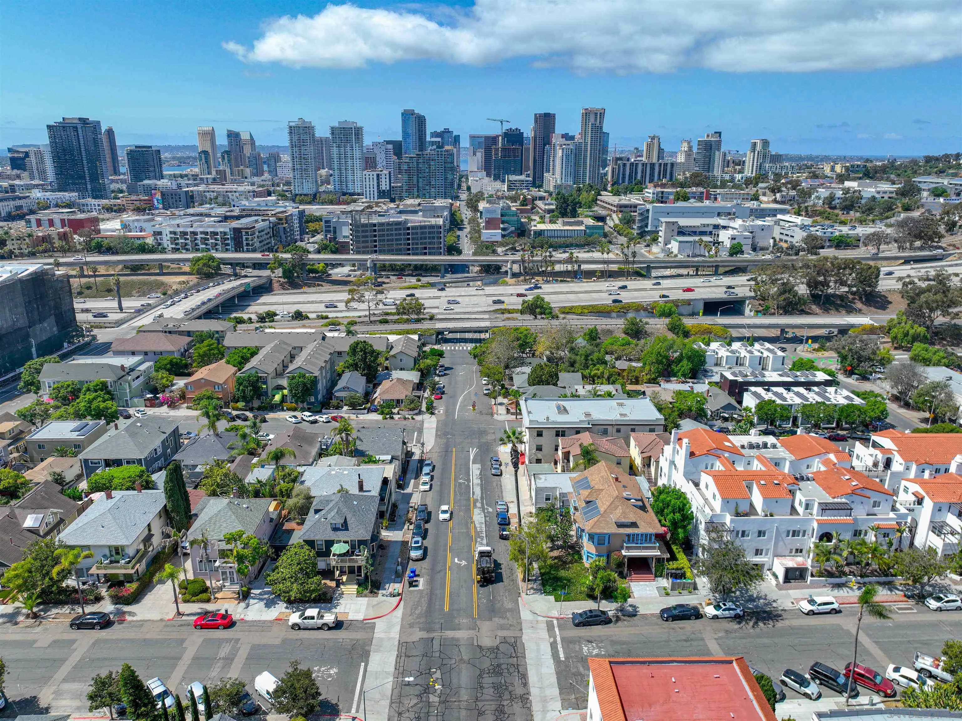 Price Improvement - REDUCED $25K! Enjoy sweeping downtown skyline views from this beautifully updated condo in the heart of Golden Hill. Featuring an open floor plan with abundant natural light, this unit boasts a freshly painted interior, spacious bedrooms, vinyl plank flooring throughout, a remodeled primary bathroom for a spa-like experience, and a private patio overlooking a tree-lined street. The kitchen is equipped with sleek, updated appliances (Frigidaire Gallery & Professional Series) & the unit integrates seamlessly with smart home technology – building wired with Google Fiber Internet. Additional features include in-unit laundry (Full Sized, GE), ample storage and closet space, central heat & A/C + ceiling fans in every room, and 2-car tandem parking in a secure, gated garage—plus an owner-exclusive Universal EV charging station wired directly into the spot + dedicated storage space. This boutique complex, built in 2007 and home to just 29 units, is professionally managed and has recently undergone extensive upgrades and repairs, ensuring comfort and peace of mind for years to come. Easily walk to Golden Hill Park, Balboa Park Golf Course, Grape Street Dog Park, or explore the great eateries in Golden Hill and South Park. With quick access to Downtown San Diego, San Diego International Airport, and major highways (I-5, I-163, I-94), commuting and enjoying the city couldn’t be easier. Some Photos have been Virtually Staged.