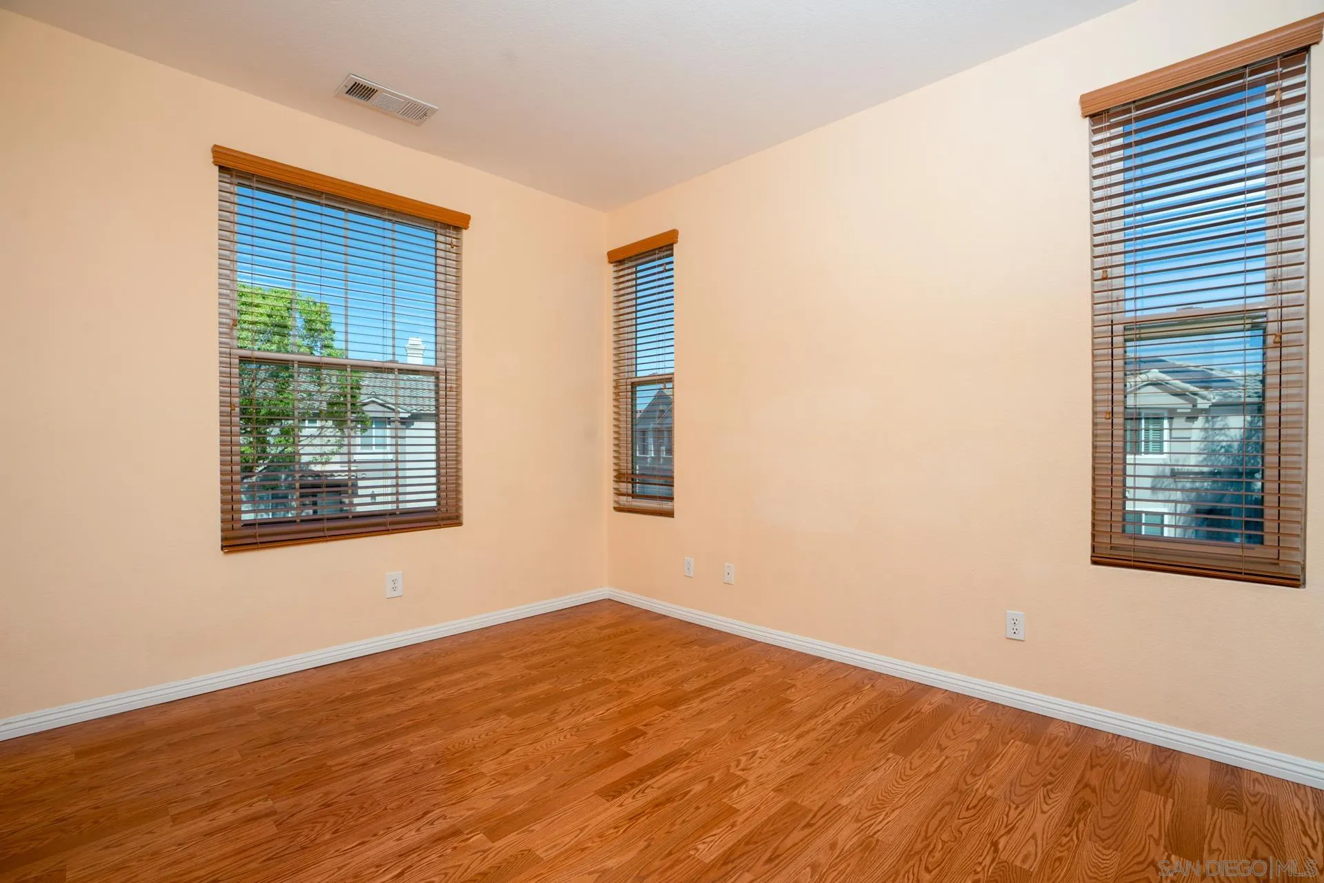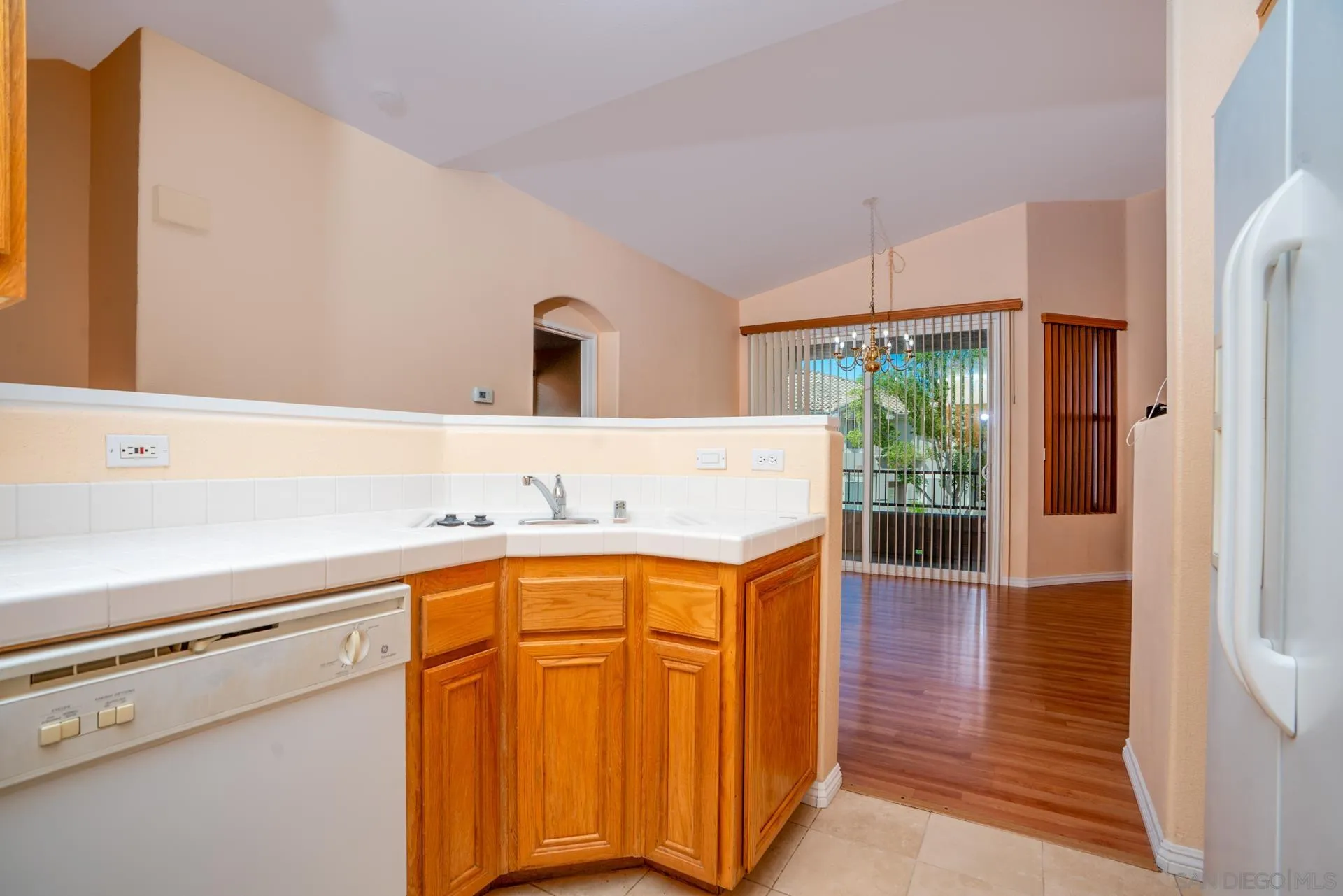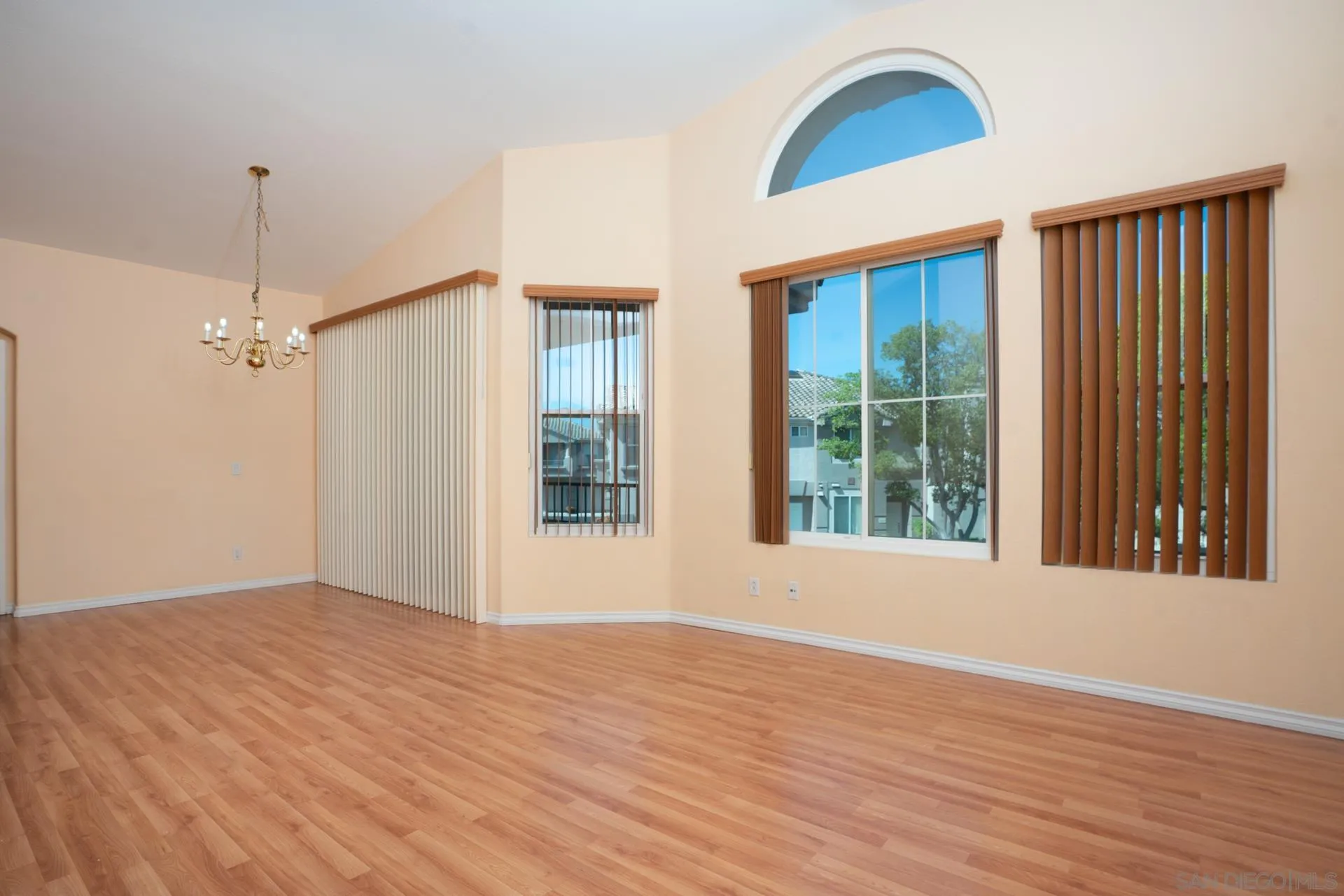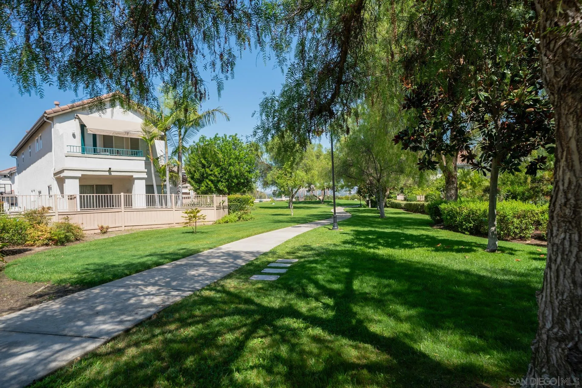 Don’t miss this exceptional opportunity to own a stylish townhouse in the resort-style community of Rancho Bernardo. This thoughtfully designed two-level residence features an attached one-car garage on the ground floor, complete with built-in cabinetry and a dedicated laundry area. The main living spaces are situated on the second level, offering a spacious and inviting layout. The open-concept living and dining area boasts soaring ceilings and an abundance of natural light, creating a warm and welcoming atmosphere. Upgrades include modern dual-pane windows and a sliding glass door, complemented by custom blinds throughout the home. Interior finishes include tiled flooring in the garage, natural stone and tile surfaces in the kitchen and bathrooms, and sleek laminate flooring in the living areas and bedrooms. This move-in-ready property is prepared to welcome its new owner.