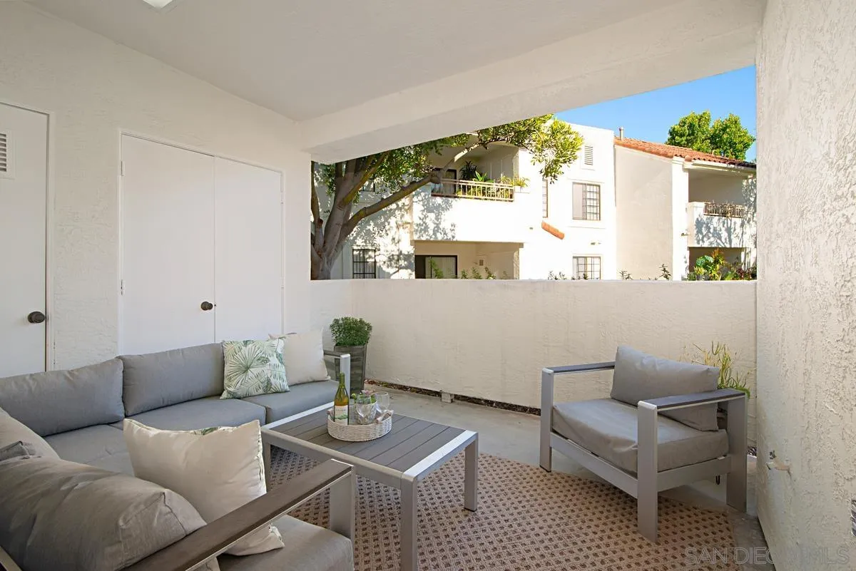 Priced improved to $599,000! Welcome to one of the best condos in the community — freshly updated, quiet, and move-in ready! This single-level, ground-floor home feels like a private retreat with a premier spot near the greenbelt. Though the map shows proximity to the freeway, the unit is set back far enough that you’ll enjoy peace and quiet with no road noise. Inside, you’ll love the abundant natural light streaming through newer Milgard windows—upgrades throughout add both beauty and efficiency. The open layout features new paint, stylish laminate wood floors, and remodeled kitchen and baths with sleek contemporary countertops. With two spacious primary suites—each with a full bath and generous closet—you’ll have comfort and flexibility for family, guests, or a home office. Step outside to your large private patio overlooking lush green space, perfect for morning coffee, relaxing evenings, or weekend BBQs. Everyday living is easy with in-unit laundry, a covered parking space, and plenty of guest parking. Community amenities include a resort-style pool, spa, gym, and peaceful walking areas. All of this is located in the award-winning Poway School District and just minutes from shopping, dining, parks, and freeways. Quiet, light-filled, and beautifully updated — this is the one to see!