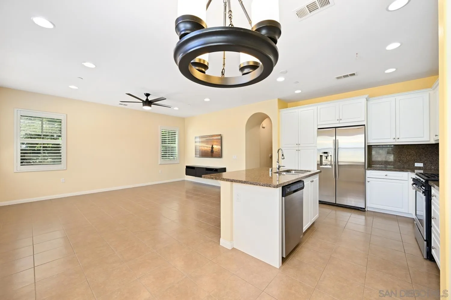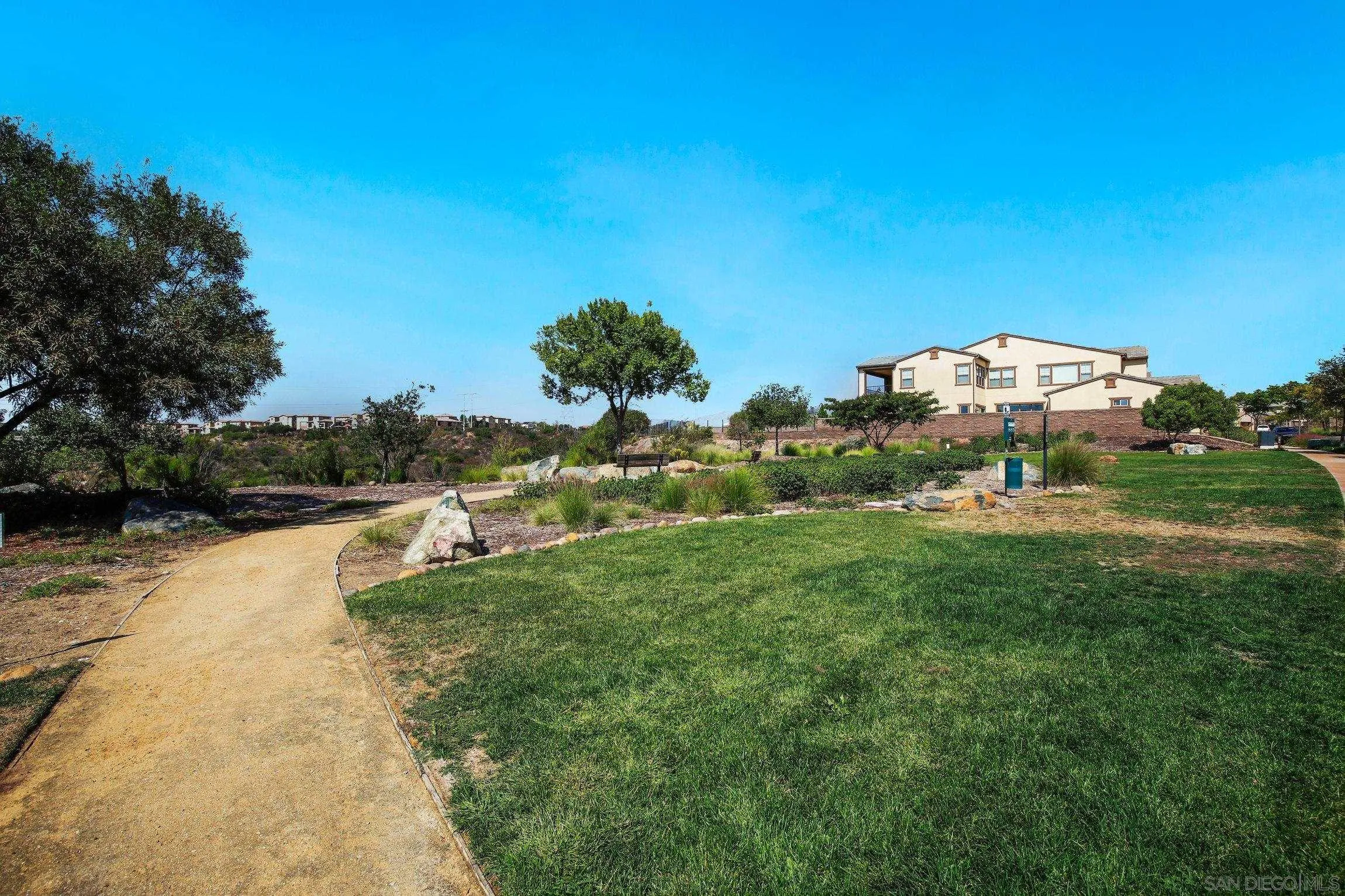 Welcome to Garretson at Del Sur, where resort-style living meets modern comfort! This corner-unit home offers 4 bedrooms, 3 bathrooms, and an attached two-car garage. The thoughtfully designed ADA-certified floor plan includes a main-level bedroom and full bath, ideal for guests or multigenerational living. The open-concept living area is filled with natural light and features recessed lighting, durable flooring, and a beautifully appointed kitchen with crisp white cabinetry, stainless steel appliances, granite countertops, and an island with breakfast bar seating. Upstairs, you’ll find the remaining bedrooms, including a spacious primary suite with a walk-in closet and luxurious en-suite bath complete with a soaking tub and walk-in shower. Del Sur is a community like no other, surrounded by over 1,000 acres of preserved open space with 18+ miles of trails, 14 parks, 11 heated pools, year-round community events, and a vibrant Town Center with shopping, dining, and services—including Target and Sprouts. Located within the top-rated Poway Unified School District, this home offers the perfect blend of convenience, comfort, and lifestyle in one of San Diego’s most sought-after neighborhoods.