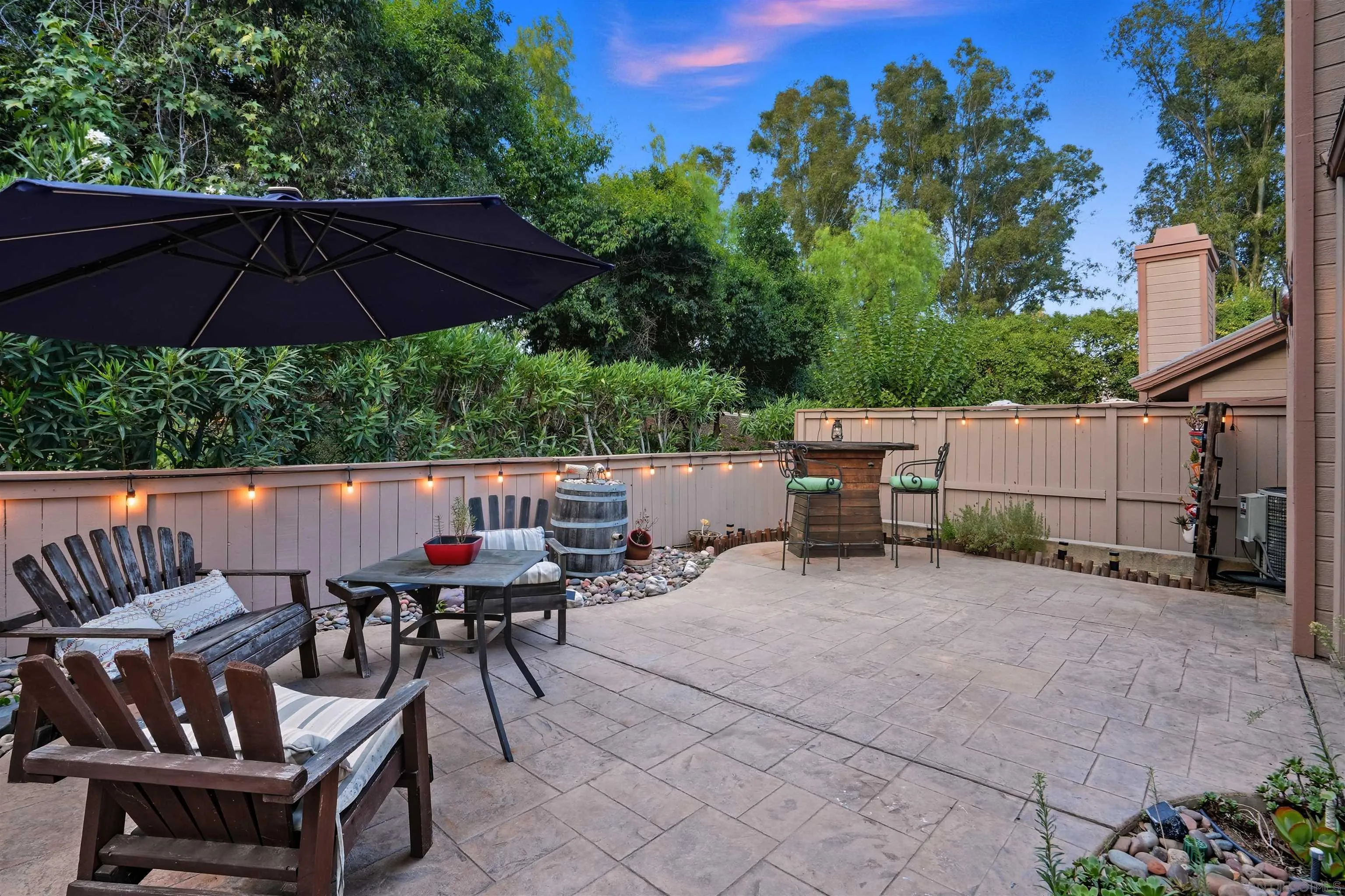 "Vaulted Ceilings, Dual Wing Bedrooms both En Suite, Tranquil Backyard Retreat — A Townhome That Lives Like a House." WHAT WE LOVE: Step inside and it’s clear this isn’t your standard townhome. Wood floors, plantation shutters, and a stone-tiled fireplace set the tone for an open living + dining space with soaring vaulted ceilings and a loft overhead. The updated kitchen brings granite counters, higher-end stainless appliances, recessed lights, a breakfast bar, and even a bay window alcove looking out to the yard. Upstairs, brand-new carpet leads to dual en suites - the primary with a custom, wall-to-wall dual-head shower that is a must see and vaulted ceilings, the other with its own updated finishes as well. A north-facing backyard retreat with stamped concrete and chill-tree canopy seals the deal.