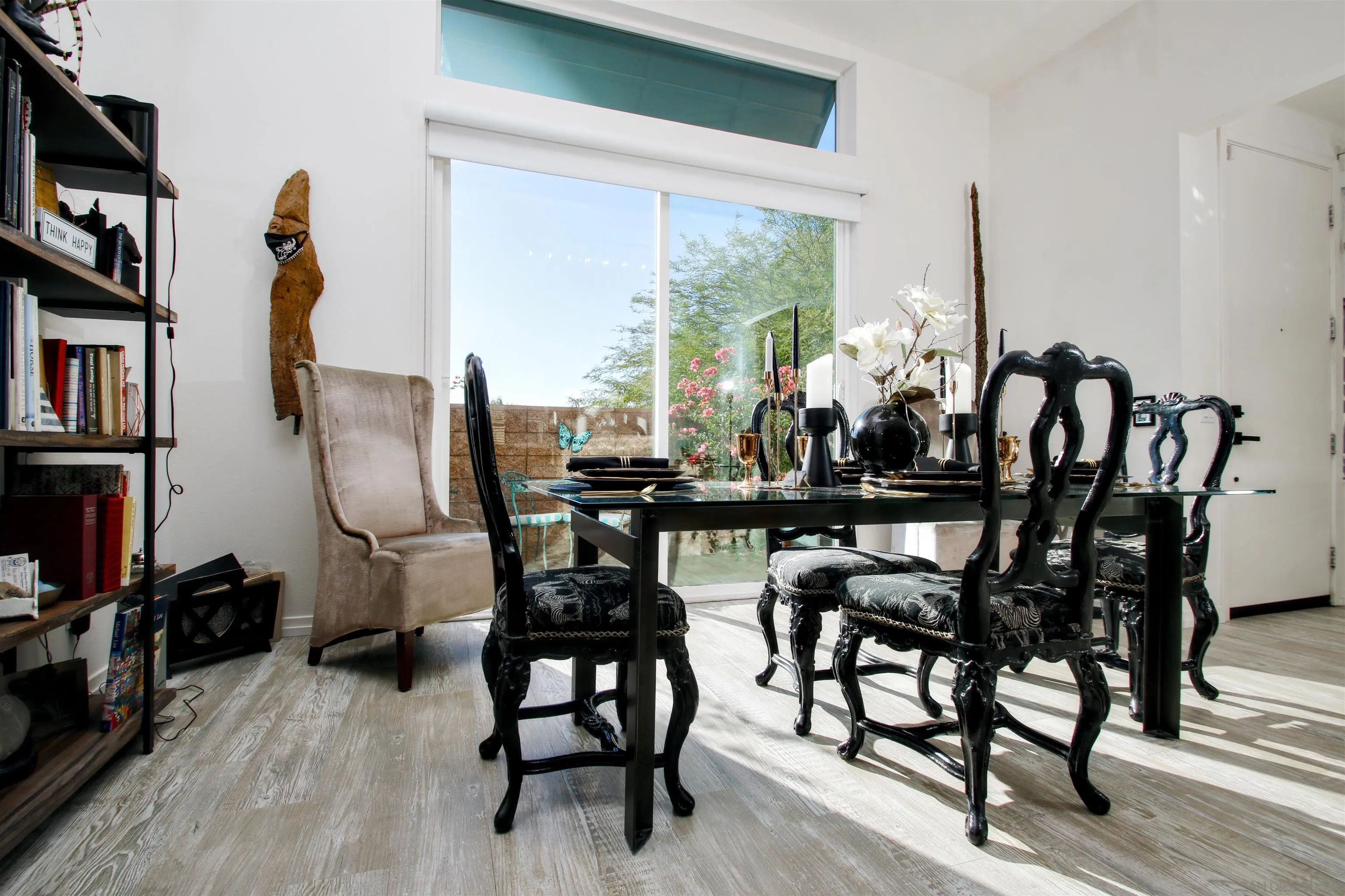 Breathtaking mountain views and a sparkling pool set the scene for this well-maintained mid-century–style home on a quiet cul-de-sac near the Spa District. Built in 2017, this 2,054 sq ft residence combines dramatic architecture, soaring ceilings, oversized windows, and light-filled living spaces that bring the desert landscape right inside. The open-concept kitchen is a showstopper, featuring an impressive island with under-counter lighting, abundant cabinetry, and seamless flow into the living and dining areas—perfect for entertaining. Durable tile flooring runs through high-traffic zones, while plush carpet adds comfort to the bedrooms. The primary suite offers a spacious walk-in closet and a serene retreat, while the secondary bedrooms share a stylish Jack-and-Jill bathroom, creating both privacy and convenience for family or guests. Step outside to your private desert-chic oasis: sparkling pool and spa, two gazebos, and low-maintenance landscaping—perfect for relaxing or entertaining. Practical upgrades include a paid-off solar system for the home, a tankless water heater, a two-car garage with extensive built-in shelving, a storage shed, and no HOA fees. Sitting on a generous 10,018 sq ft lot, this 3-bed, 2-bath gem combines style, comfort, and savings—ready for you to enjoy now.