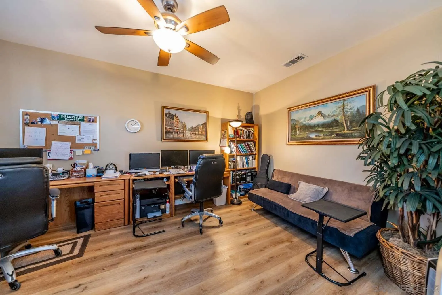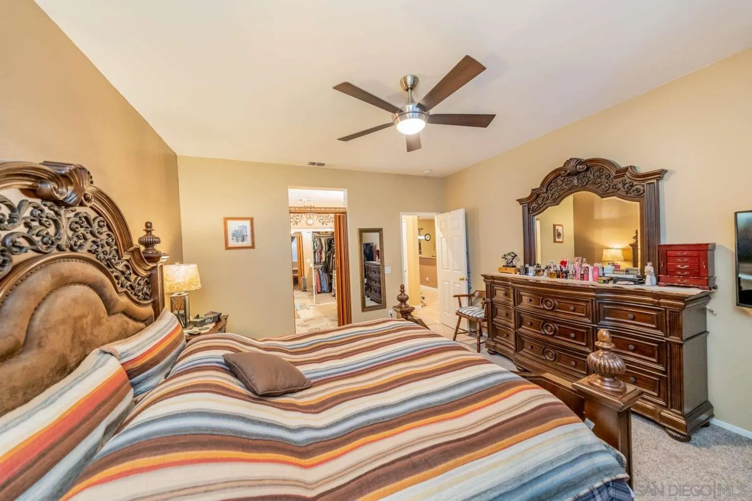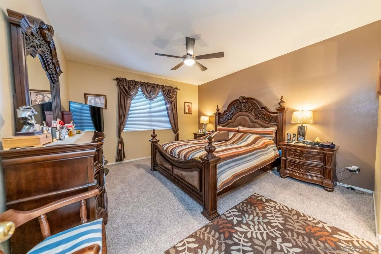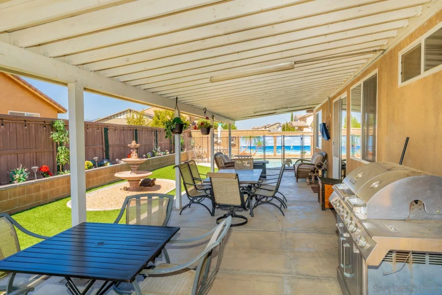 Welcome to this stunning single-story pool home located at the end of a quiet Hesperia cul-de-sac with RV parking. Built in 2005, this pride-of-ownership property offers 2,364 sq. ft. of living space on a 10,397 sq. ft. lot with 4 bedrooms and 2 bathrooms. Inside, you’ll find a spacious formal living and dining room with tile flooring, plus a versatile office or optional 5th bedroom with custom French doors. The open-concept kitchen features granite countertops, a center island, stainless steel appliances, and a dining area that flows into the living room with a cozy fireplace. The primary suite includes a huge walk-in closet, and a bathroom with dual sinks, soaking tub, and separate shower, while three additional bedrooms and a guest bath with double sinks provide plenty of space for you and your guests. The backyard is perfect for entertaining with a sparkling pool, Jacuzzi, covered patio, fountain, gazebo, low maintenance landscaping turf and rock, lighting, large shed, and a beautiful 45-ft custom wall mural. Additional highlights include recessed lighting, ceiling fans in every room, tinted windows, an insulated garage door, attic stairs, and two sliding glass doors for easy outdoor access. Sun Run Solar 5.98 kW system installed in 2021. Conveniently located near schools, parks, restaurants, and with quick freeway access, this home truly has it all don’t miss the chance to make it yours!