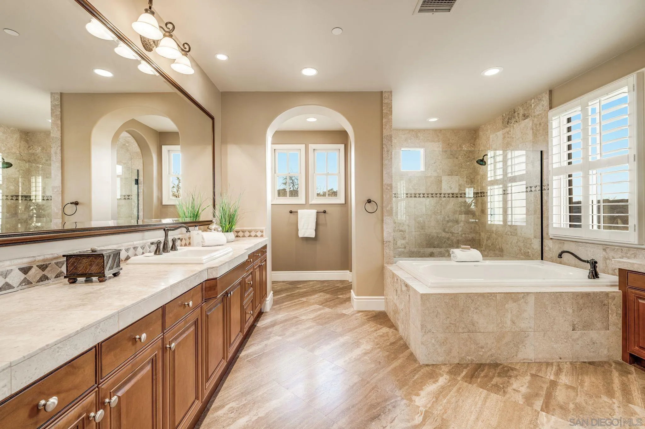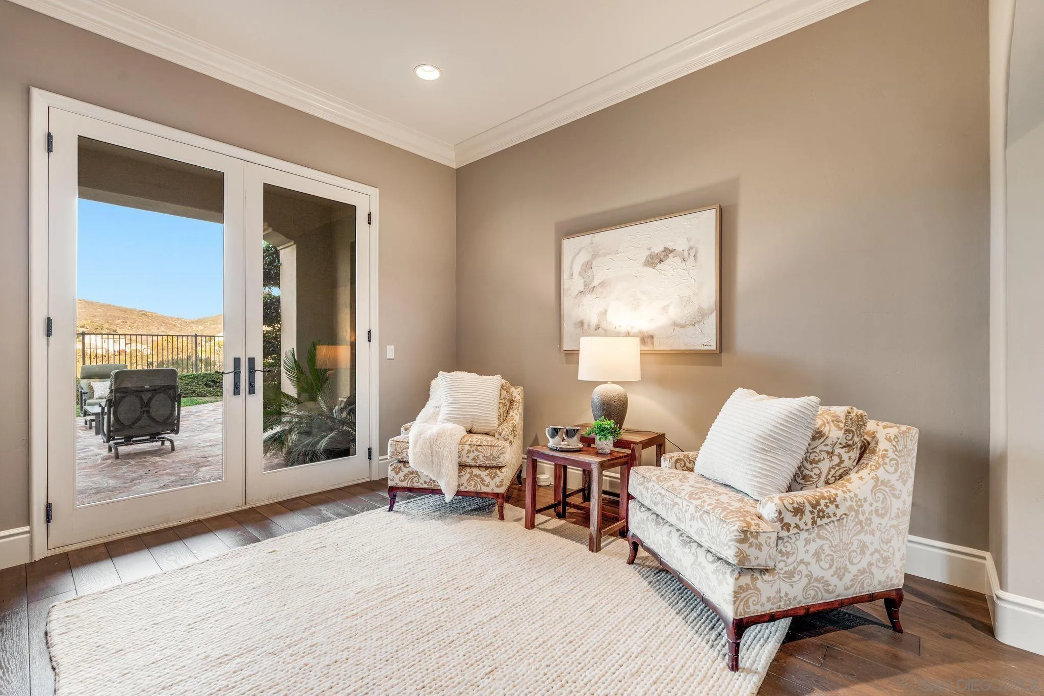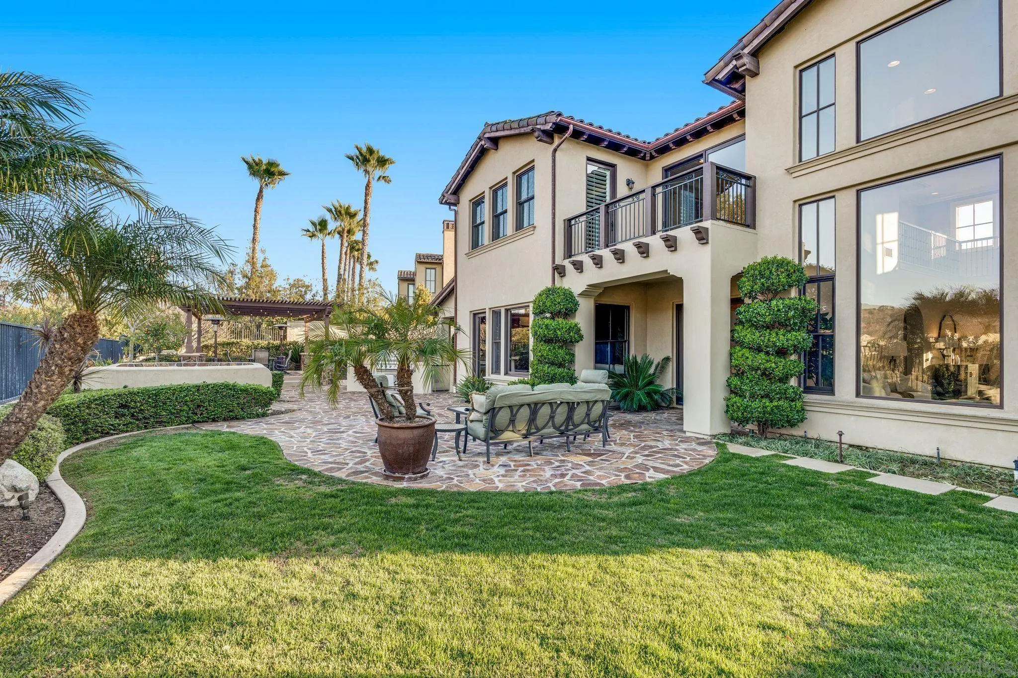 This home sits on a prime canyon view lot overlooking the #1 fairway in The Crosby, offering stunning views and a highly desirable location within the 24-hour guarded gates. Homes on this street rarely come up for sale, making this an exceptional opportunity. Just steps from a scenic park, it offers a peaceful and private setting on one of the community’s most coveted streets, Lamour Lane. Inside, high ceilings and hardwood floors create a bright, open feel. The updated kitchen features modern touches, blending style and functionality. Upstairs, the spacious primary suite provides a relaxing retreat with a large ensuite bath and two separate bathrooms within the master suite—a rare and highly sought-after feature. A detached guest casita offers extra space for visitors or a private office. Designed for seamless indoor-outdoor living, the backyard is built for entertaining, complete with a covered patio, built-in BBQ, cozy fire pit, and citrus trees—all set against the backdrop of breathtaking canyon views. This home also features owned solar, adding efficiency and long-term savings. Showcasing pride of ownership throughout, this is a rare chance to own a premier view home in The Crosby—don’t miss it!
