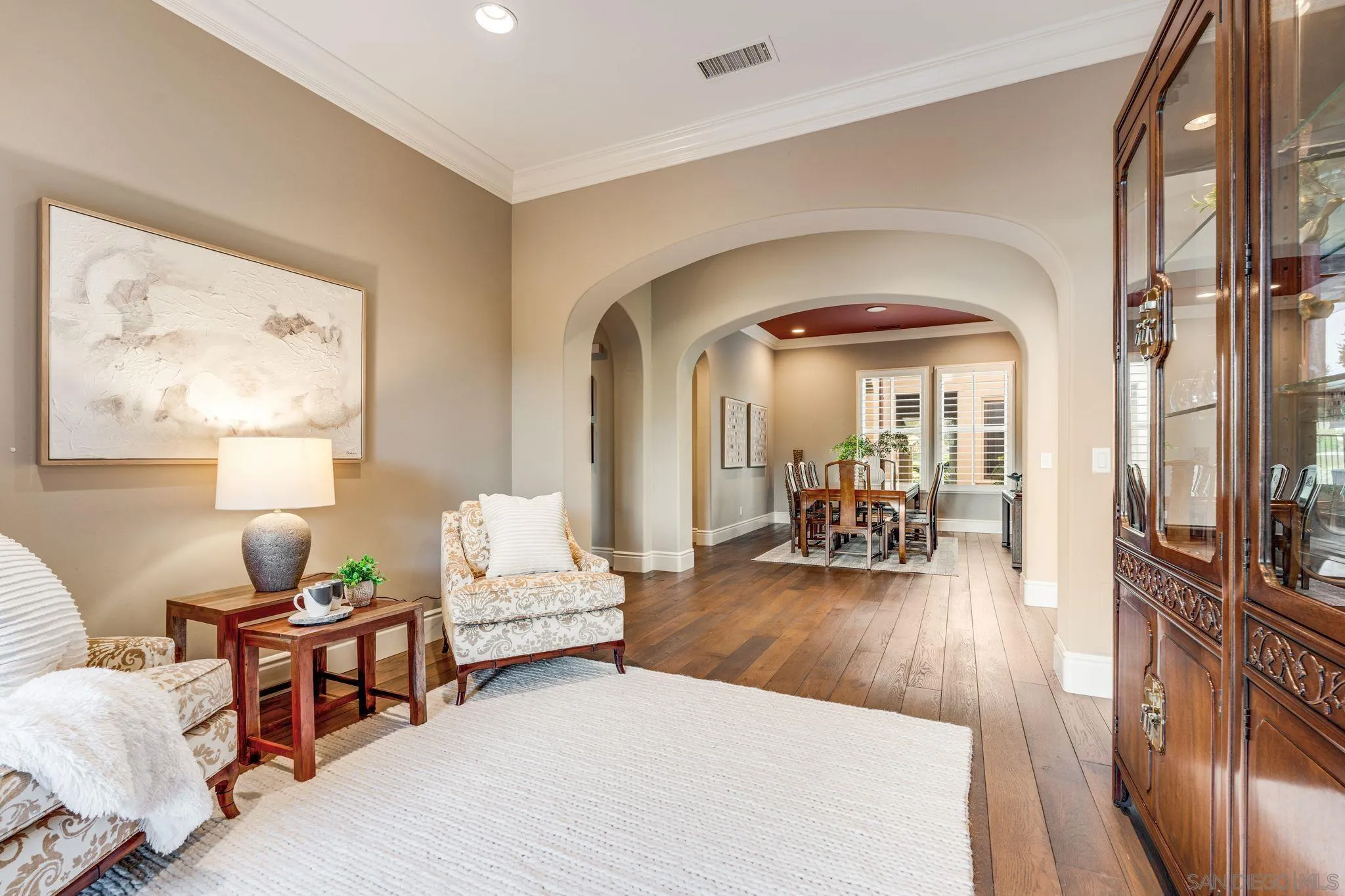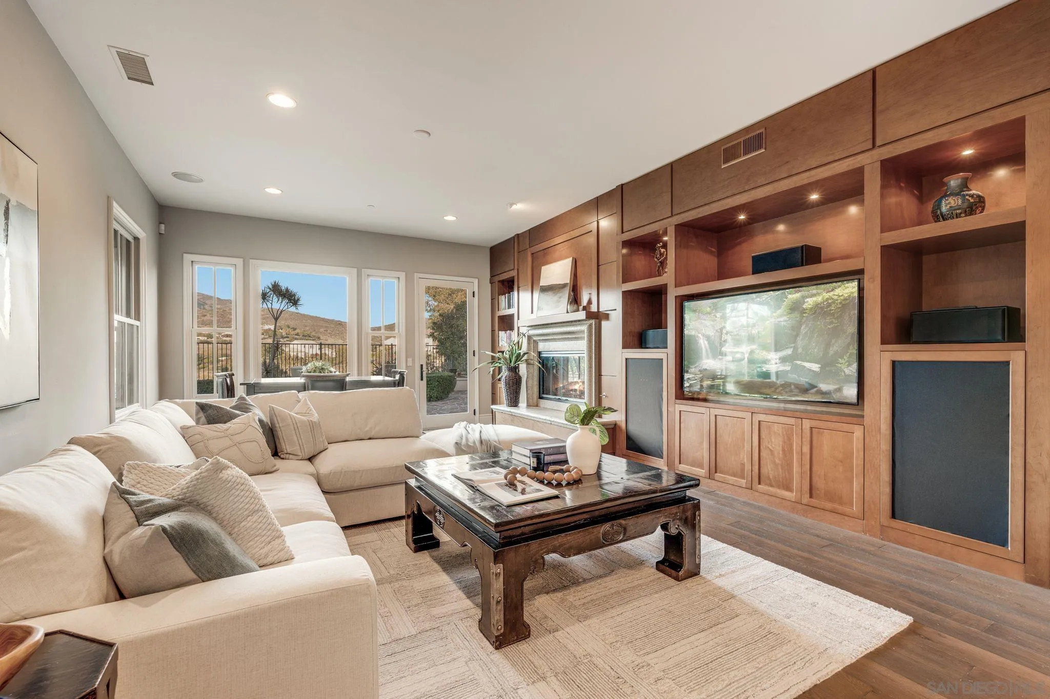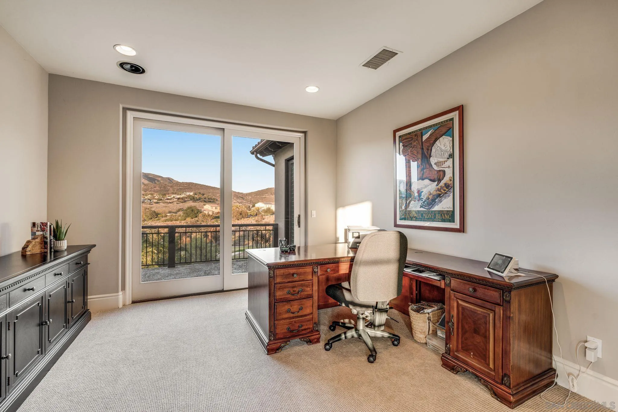 This home sits on a prime canyon view lot overlooking the #1 fairway in The Crosby, offering stunning views and a highly desirable location within the 24-hour guarded gates. Homes on this street rarely come up for sale, making this an exceptional opportunity. Just steps from a scenic park, it offers a peaceful and private setting on one of the community’s most coveted streets, Lamour Lane. Inside, high ceilings and hardwood floors create a bright, open feel. The updated kitchen features modern touches, blending style and functionality. Upstairs, the spacious primary suite provides a relaxing retreat with a large ensuite bath and two separate bathrooms within the master suite—a rare and highly sought-after feature. A detached guest casita offers extra space for visitors or a private office. Designed for seamless indoor-outdoor living, the backyard is built for entertaining, complete with a covered patio, built-in BBQ, cozy fire pit, and citrus trees—all set against the backdrop of breathtaking canyon views. This home also features owned solar, adding efficiency and long-term savings. Showcasing pride of ownership throughout, this is a rare chance to own a premier view home in The Crosby—don’t miss it!