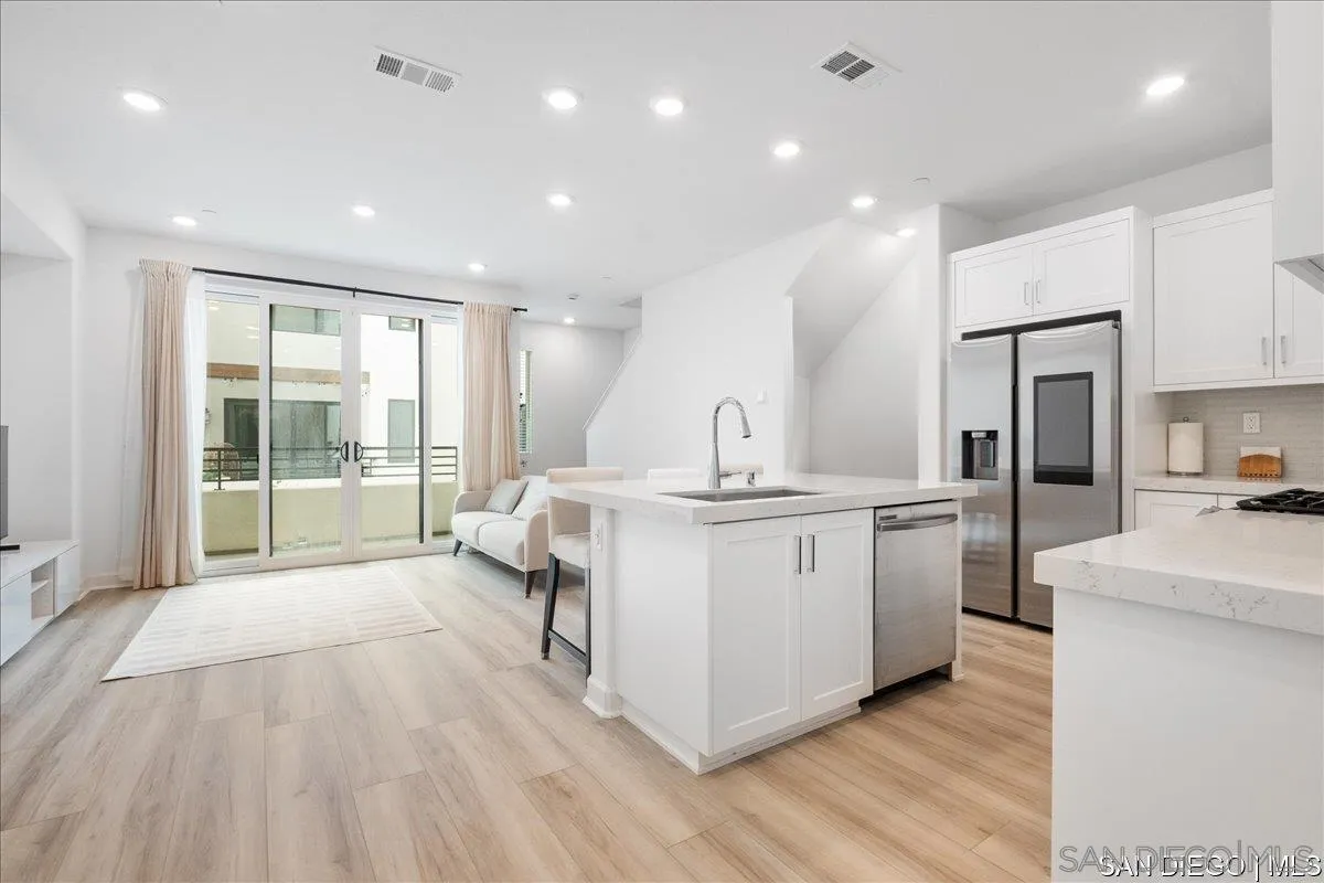 Nestled in the desirable neighborhood of Otay Mesa, this condo offers ease of access to major freeways, shopping, dining, parks, and all the amenities you expect. This very clean, beautifully loved home, is bright with natural light and sleek finishes throughout all 3 bedrooms and 3 full bathroom areas. This thoughtfully designed living space also includes an optional bedroom, office, den, or entertainment center on the first floor. The gourmet kitchen is outfitted with contemporary cabinetry, stone countertops, and high-end stainless steel appliances, ideal for entertaining. Newly built construction homes means modern systems, energy efficiency, and minimal maintenance. Additionally, this home also offers leased solar panels in which the new buyer can opt into purchasing them outright and receive up to 30% tax credit should they choose, otherwise, they can continue to lease the solar panels and pay a monthly minimum amount while enjoying a full capacity of electricity. Enjoy this bright and open floor plan with comfort, style, and functionality today!