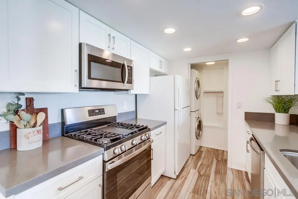 Fantastic top floor 2 bedroom, 2 bath unit in Casablanca, one of Rancho Peñasquitos’ most desirable communities. Beautifully updated kitchen with newer cabinets, solid surface countertops, stainless appliances, and recessed lighting. Spacious living room with gorgeous fireplace plus access to a generous balcony that includes an extra storage closet. The primary suite offers vaulted ceilings and an updated bathroom with newer vanity, while the secondary bath features incredible storage space. Enjoy peaceful mountain views to the north, one covered parking space with built in storage cabinets, and an additional assigned space conveniently located in front of the unit. Stackable washer and dryer inside the home. Excellent location within the complex with tranquil water features, lush landscaping, and community pool. Located in the award winning Poway Unified School District, close to shopping, restaurants, and the post office.