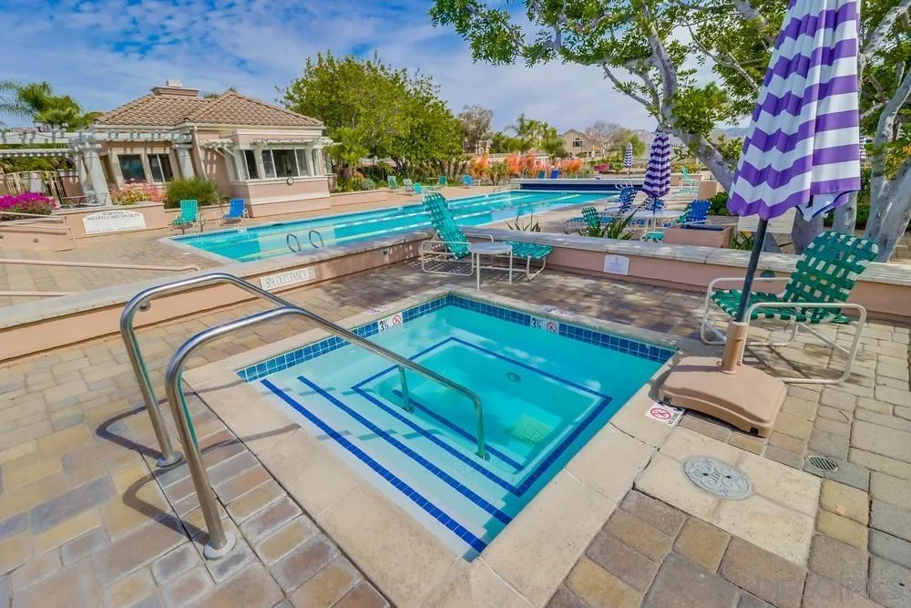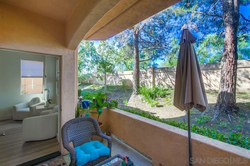 Experience resort-style living in the desirable gated community of Morada at Bernardo Vista Del Lago! This beautifully updated ground-floor 1-bedroom, 1-bath condo , is one few rare unit with a private 1-car garage welcomes you with soaring ceilings, abundant natural light, and elegant luxury wood flooring throughout the living and dining areas. The spacious bedroom includes a walk-in closet and private patio access, while the living room opens to a serene outdoor retreat complete with a large storage closet—perfect for relaxation or entertaining. The kitchen features brand-new appliances (all included), and a full-sized washer and dryer are conveniently located in the hallway. Enjoy the comfort of your private garage with extra storage and ample guest parking throughout the community. Residents of Morada at Bernardo Vista Del Lago enjoy resort-quality amenities, including two sparkling pools, a spa, tennis courts, a fitness center, clubhouse, and billiards room. Ideally situated just off I-15, you’re minutes from shopping, dining, Westfield North County Mall, and the scenic Lake Hodges trails. The HOA covers water, trash, exterior maintenance, and full access to all amenities. A true turnkey opportunity in one of San Diego’s most sought-after communities!