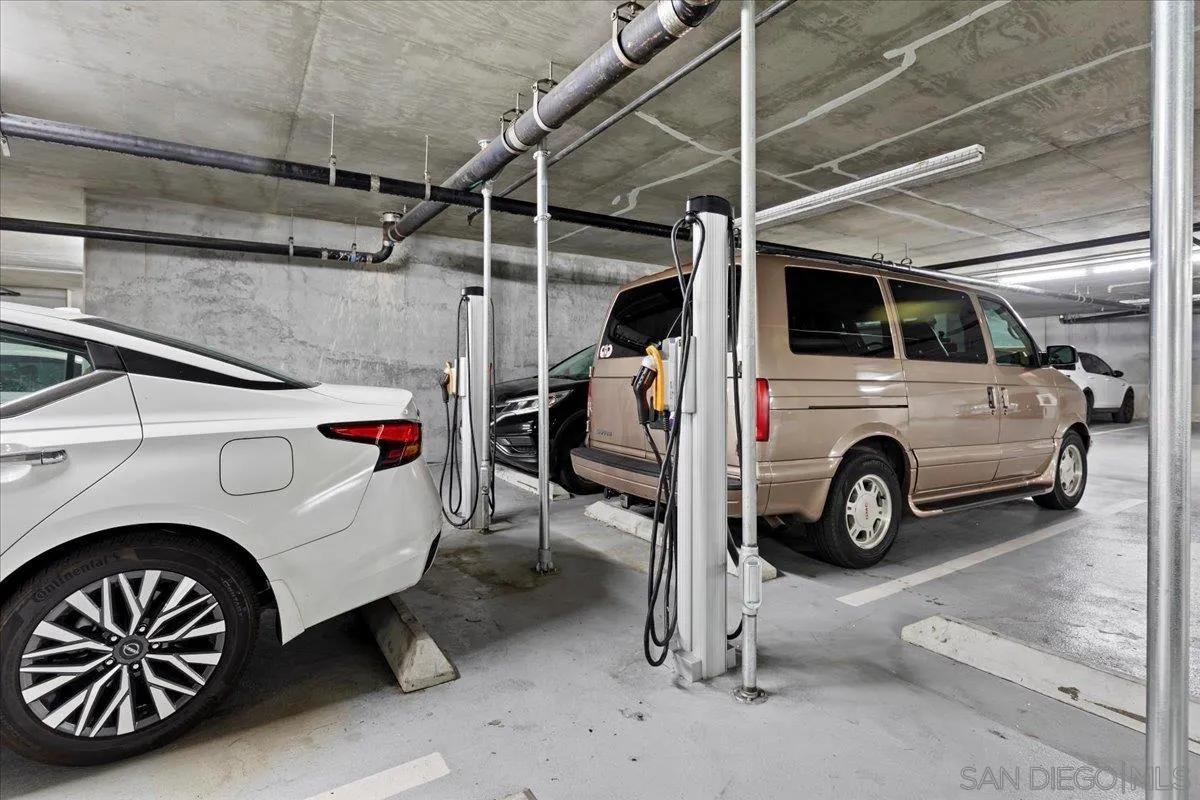 Situated in the vibrant heart of East Village, this expansive 739-square-foot one-bedroom, one-bath Park Terrace residence offers an elevated urban living experience. With soaring 9-foot ceilings and floor-to-ceiling windows, the home is bathed in natural light and showcases captivating west-facing views that span the dazzling city skyline, Coronado Bay Bridge, and the electric atmosphere of Petco Park. The open-concept kitchen is designed for both style and function, featuring sleek granite countertops, stainless steel appliances and generous cabinetry. Luxury vinyl plank flooring adds warmth and sophistication throughout, while the spacious bath offers ample storage and counter space. The full-size, in-unit washer and dryer and central air and heat provide added convenience, and the generous balcony invites you to savor San Diego’s most exciting views from the comfort of your own home. Beyond the residence, Park Terrace elevates lifestyle with an array of premium amenities. The fifth-floor terrace is perfect for entertaining or relaxing—complete with a fire pit, picnic-style seating, and front-row views to concerts and the energy of the ballpark. Residents also enjoy access to a state-of-the-art fitness center and an elegantly landscaped entertainment deck with lounge seating and BBQs. Just four blocks away, the iconic Gaslamp Quarter awaits with its vibrant dining and nightlife, while the nearby Harbor Drive Pedestrian Bridge connects you to the Convention Center, Embarcadero Park, Seaport Village, and ferry access to Coronado.