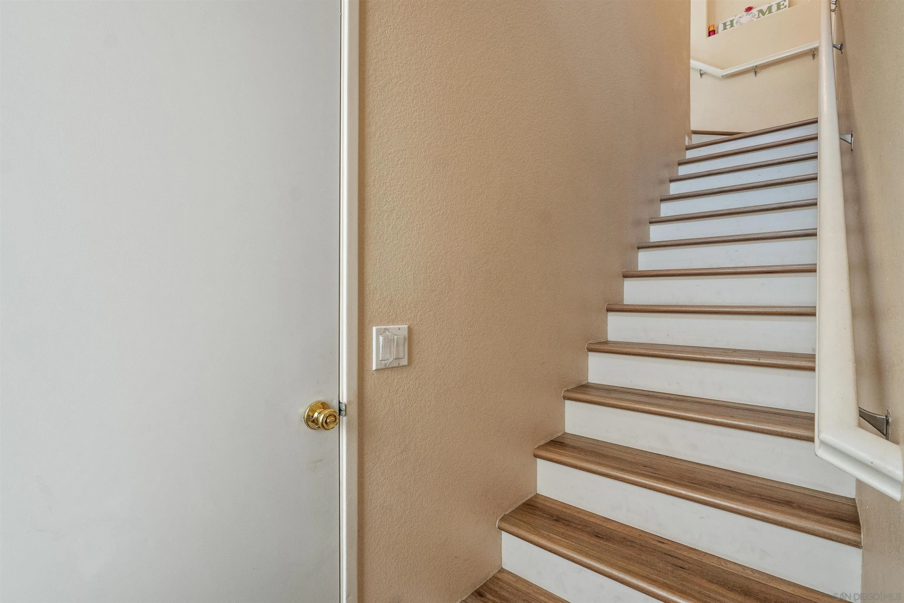 This beautiful 2 bedroom, 2 bathroom corner unit townhome in the heart of Otay Ranch offers the perfect balance of comfort, style, and convenience. From the moment you arrive, you'll notice the easy access walkway leading to the front door, providing a private and welcoming entry. Inside, the home showcases hardwood flooring throughout, enhancing its warmth and timeless appeal. The open living spaces are designed to maximize functionality and allow for an abundance of natural light, creating a bright and uplifting atmosphere throughout the day. Both bedrooms are located on the second floor, offering privacy and separation from the main living areas. The primary suite includes ample space for relaxation, while the secondary bedroom is perfect for family, guests, or even a home office. With two full bathrooms, daily living is made simple and comfortable. Practical features include an attached 1-car garage, along with plenty of first-come, first-served community parking, ensuring both residents and guests have convenient options. As part of a well-maintained community, residents enjoy access to a sparkling pool, scenic parks, and thoughtfully designed walkways, making it easy to enjoy the outdoors close to home. The location is hard to beat because it is just minutes away from popular shopping, dining, and entertainment destinations, as well as conveniently close to HWY-125 for quick commuting. Families will also appreciate the home's proximity to some of Chula Vista's most highly regarded schools: Veterans Elementary, Rancho Del Rey Middle School, and Olympian High School. Of