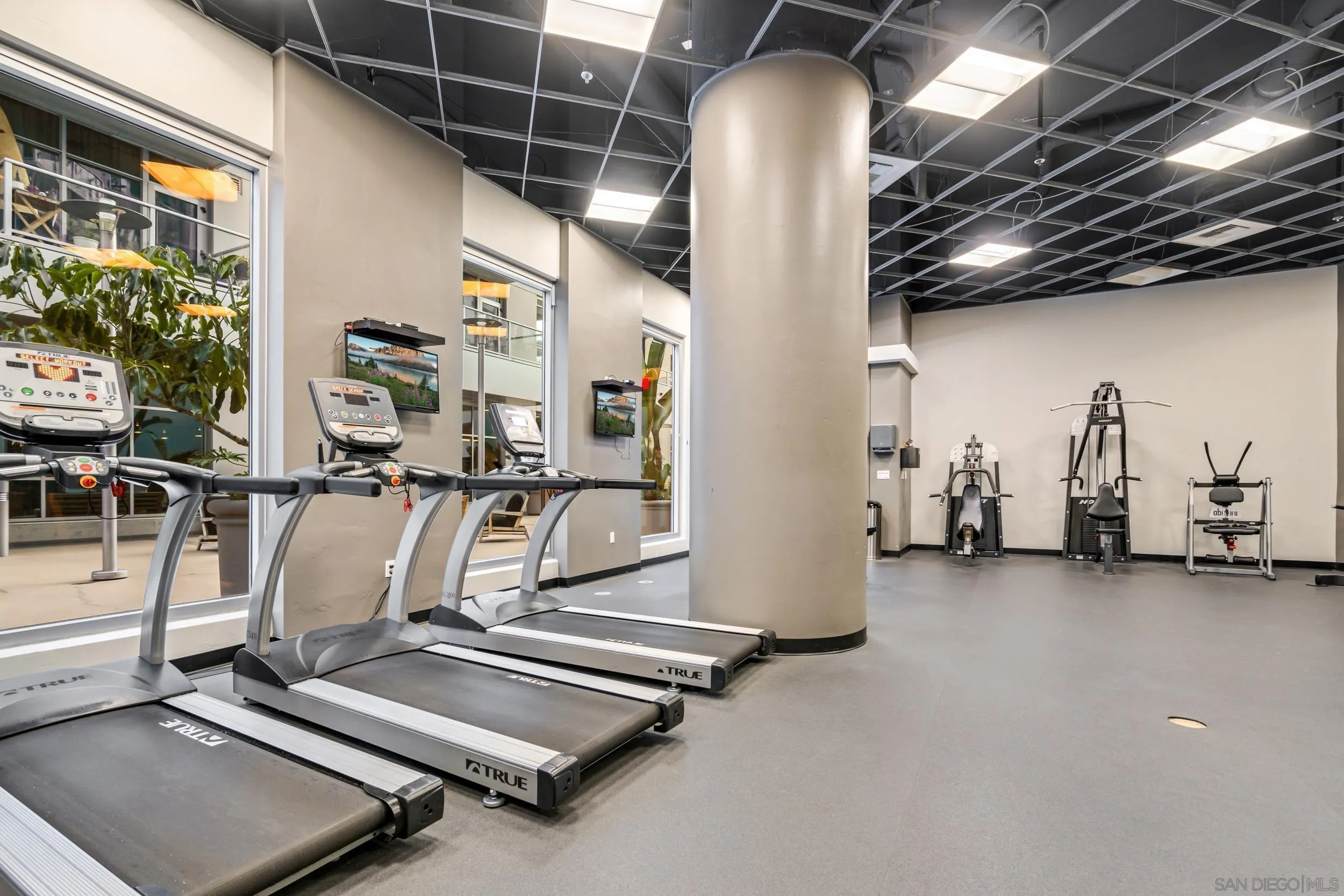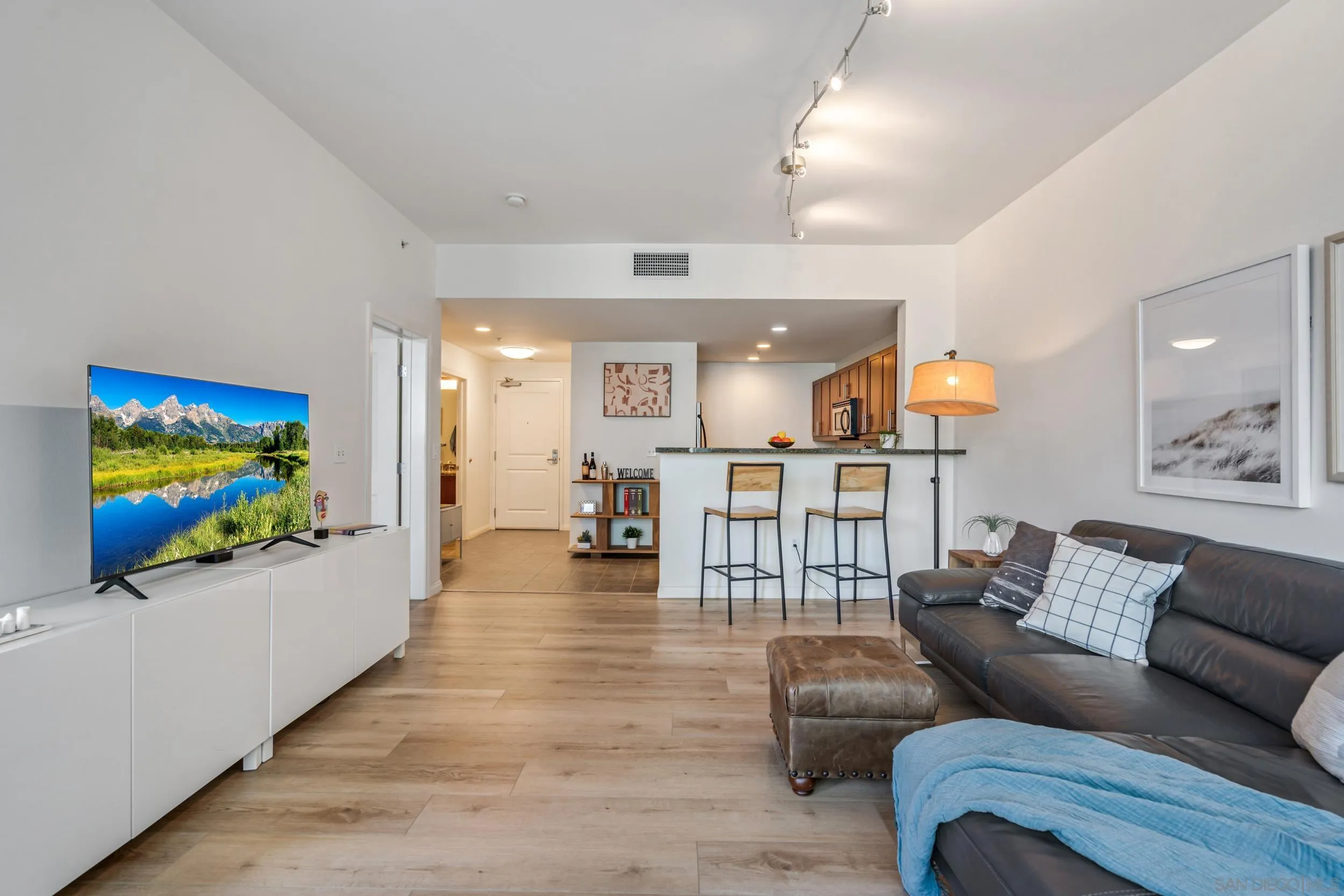 Perfectly positioned across from Petco Park, this thoughtfully designed condo offers a peaceful retreat with incredible city lifestyle perks just a short distance away. Enjoy views of the courtyard and stadium from an oversized balcony that extends your living space outdoors—ideal for morning coffee or evening unwinding. Inside, bright, wide-plank vinyl floors complement the open layout, while the kitchen impresses with granite countertops, stainless steel appliances, and abundant cabinet space. Custom lighting, updated bathroom tile, and organized closets complete the move-in-ready appeal. This residence also includes a dedicated underground parking space. Park Terrace is a VA-approved community offering exceptional amenities, including 24-hour security, a fully equipped fitness center, rooftop BBQ terraces on the 2nd and 5th floors, a recreation room, interior courtyard seating, bike storage, on-site property management, and a sleek, modern lobby entrance. Explore the best of Downtown living—just a short distance to Petco Park, Gallagher Square, the historic Gaslamp Quarter’s shops and dining, the Central Library, bus and trolley transportation, FIT Athletic Gym, and the Harbor Drive Pedestrian Bridge, which connects to The Rady Shell, the Convention Center, Seaport Village, Embarcadero Parks, the Coronado Ferry, and more. The lifestyle you’ve been waiting for starts here.