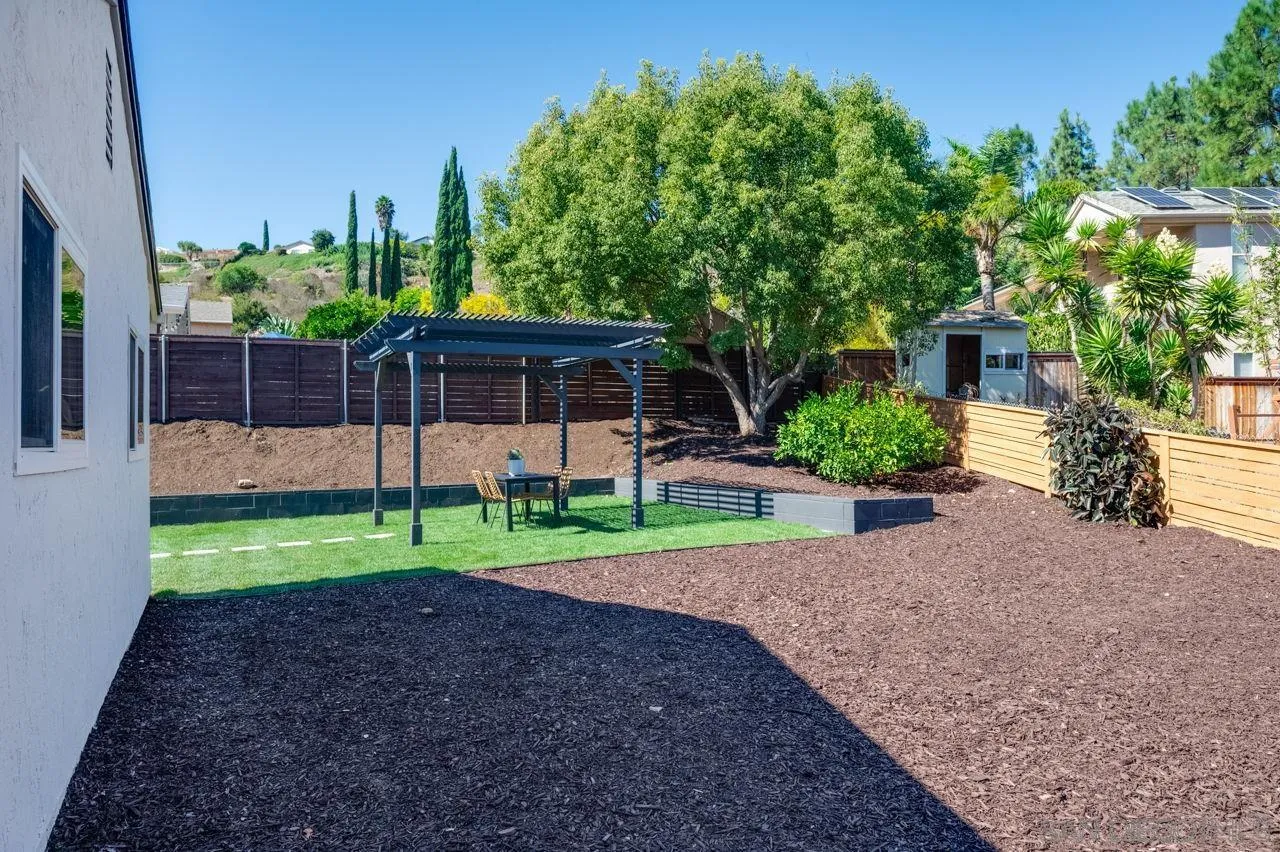 Welcome to this freshly remodeled 3-bedroom, 2-bathroom single-story home in the heart of Rancho Peñasquitos, located within the highly sought-after Poway School District. Inside, you’ll find custom paneling, accent lighting, and stylish LVP flooring throughout. The kitchen features quartz countertops, oak-finish cabinets, and new stainless steel appliances. Additional upgrades include a brand-new HVAC system for year-round comfort. French doors open to a backyard with hill views, a charming outdoor pergola, and fresh sod, while the front yard showcases beautiful native landscaping, creating inviting curb appeal and effortless maintenance.