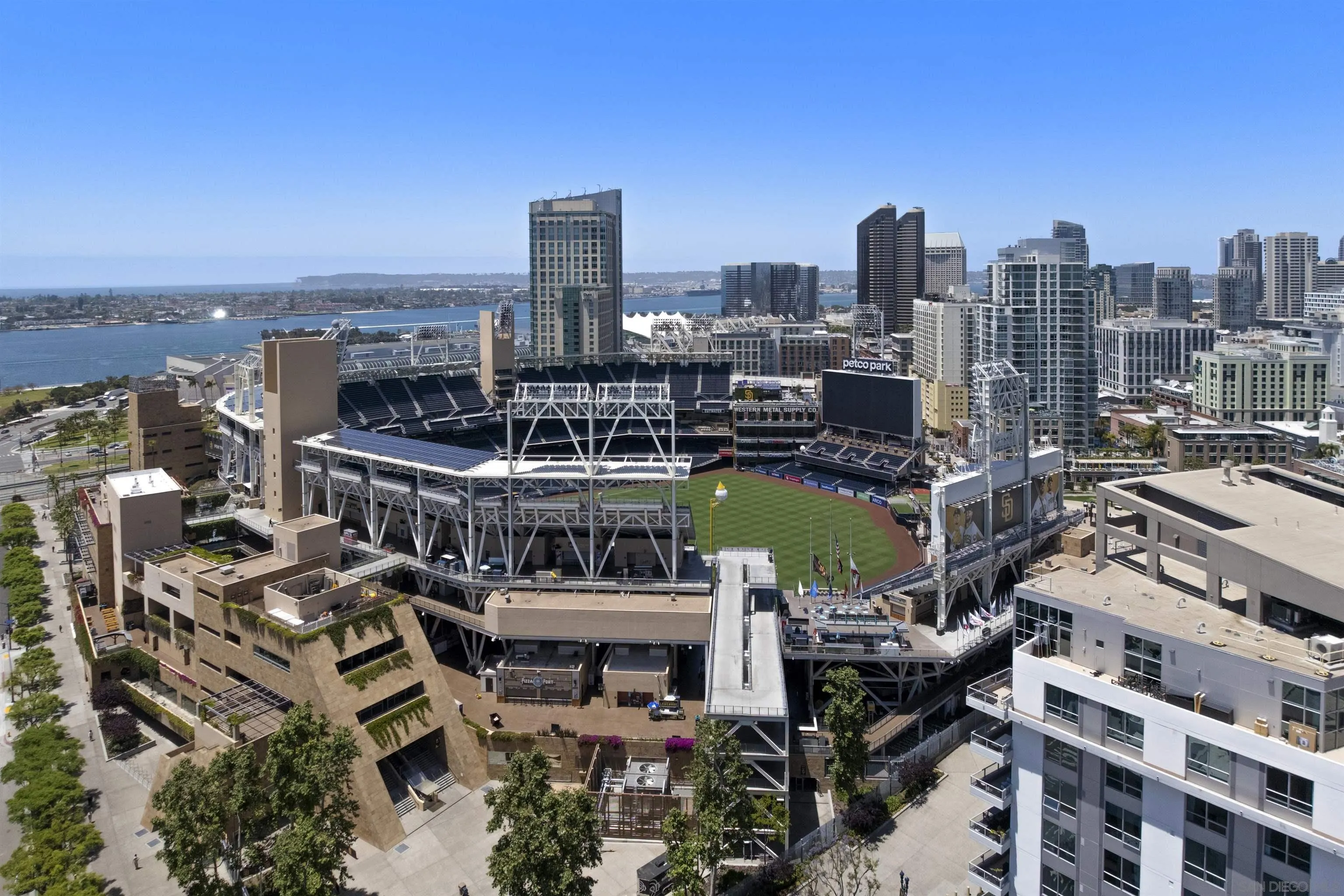 Welcome to Park Terrace, perfectly positioned in the vibrant Ballpark District of Downtown San Diego. This stylish studio maximizes every inch, offering floor-to-ceiling windows, a private balcony with bay views, and an inviting open layout. Recent enhancements include fresh paint, new window treatments, sleek hard-surface flooring, and stainless steel appliances, plus the convenience of in-unit laundry. Park Terrace residents enjoy generous outdoor lounges with BBQs, a well-appointed fitness center, and a spacious clubhouse. Across the street from Petco Park and moments from the Rady Shell, Seaport Village, Gaslamp Quarter, and the sparkling San Diego Bay—this is downtown living at its best.