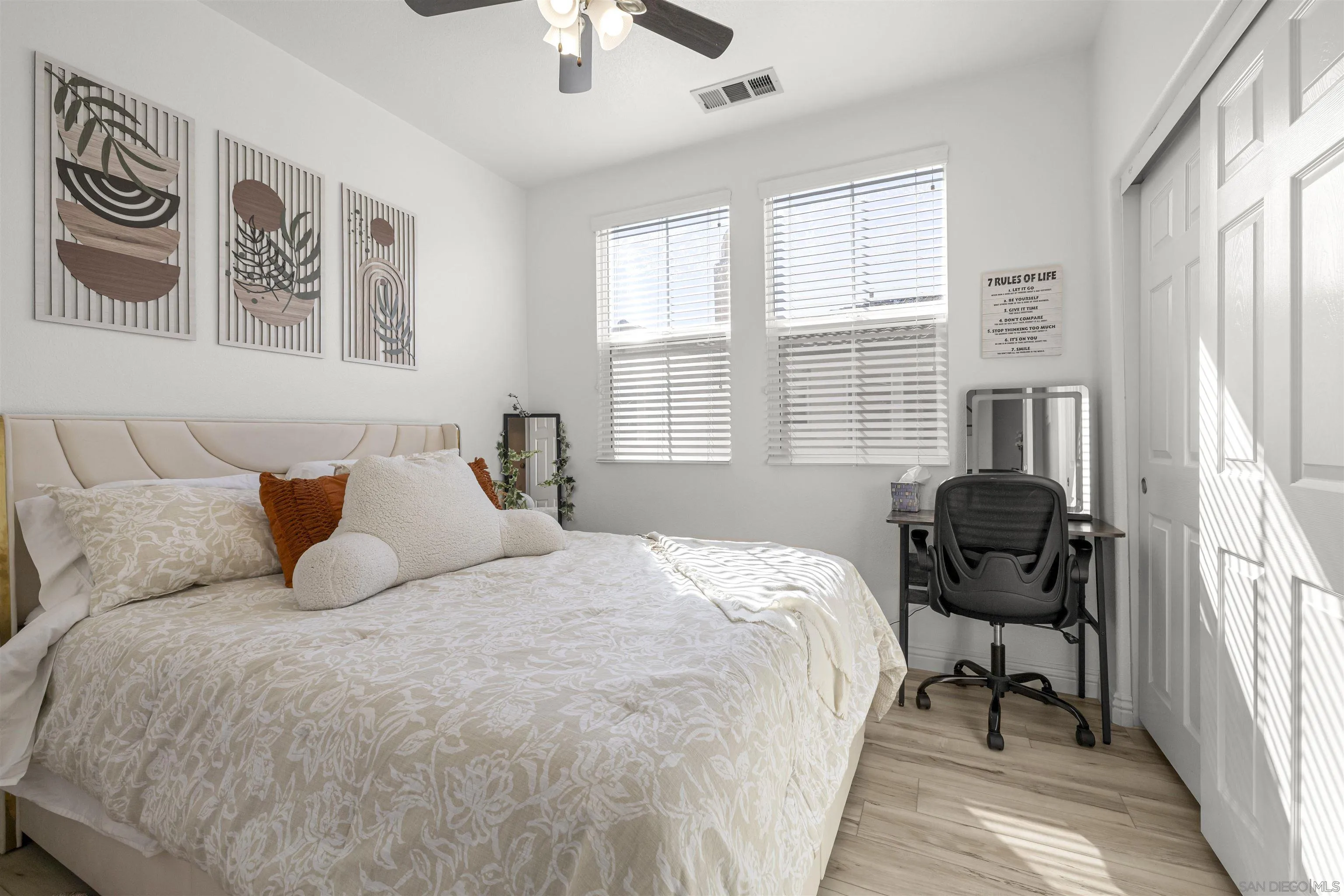 You will love this beautifully remodeled end-unit condo in Lake Elsinore. This bright and airy two-bedroom, two-bath home features new flooring throughout, fresh paint, a modern accent wall in the primary bedroom, and an open-concept layout that feels warm and inviting. The kitchen has been completely remodeled with new appliances, floating shelves, and a reverse osmosis system, and the guest bathroom has also been tastefully updated. The home includes an upstairs laundry area, attached two-car garage, electrical car charger, and water softener system, making it truly move-in ready.