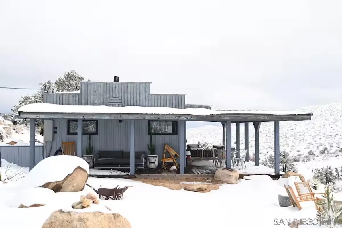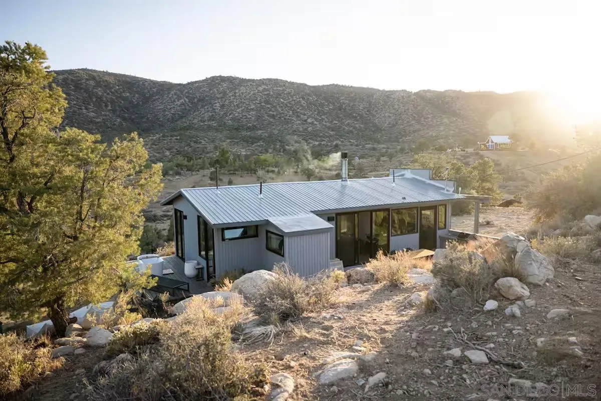 Discover a Luxury High-Desert hideaway in Burns Canyon dubbed as "The Glass House", perched high above Pioneertown with breathtaking views of the Canyon and Valley below. This Fully-Off-Grid 2-Bedroom, 2-Bathroom Cabin is a masterpiece of design, seamlessly blending Rustic Charm with Modern Luxury. The Cabin features Biophilic Design elements that harmonize nature and comfort in a stunning down-to-the-studs renovation. It boasts complete Off-Grid convenience with a Solar Setup complemented by Solar Battery Storage and a backup generator, a Private Certified Well with a 3,000-Gallon Storage Tank, and a newer Septic System. Inside, you'll find Mini-Split Heating and Cooling, a Morso Fireplace, Wall-Mounted Toilets, and extra-large Rainfall Thermostatic Showers in both Bathrooms. The indoor-outdoor living experience is exceptional, with an expansive front deck offering jaw-dropping views, a cozy hillside patio equipped with a BBQ and seating for six, and a private deck featuring a year-round 5'5" soaking tub under the stars. The Primary Bedroom serves as a sanctuary with endless views through a wall of windows, a luxurious Cashmere Dream Bed, and a Private Walk-Out Shower that opens to a serene outdoor setting. Whether you're watching the Sun rise over Pioneertown, hosting friends by the BBQ, or unwinding under the desert night sky, this Cabin is the ultimate luxurious retreat in Burns Canyon. Experience the magic for yourself.