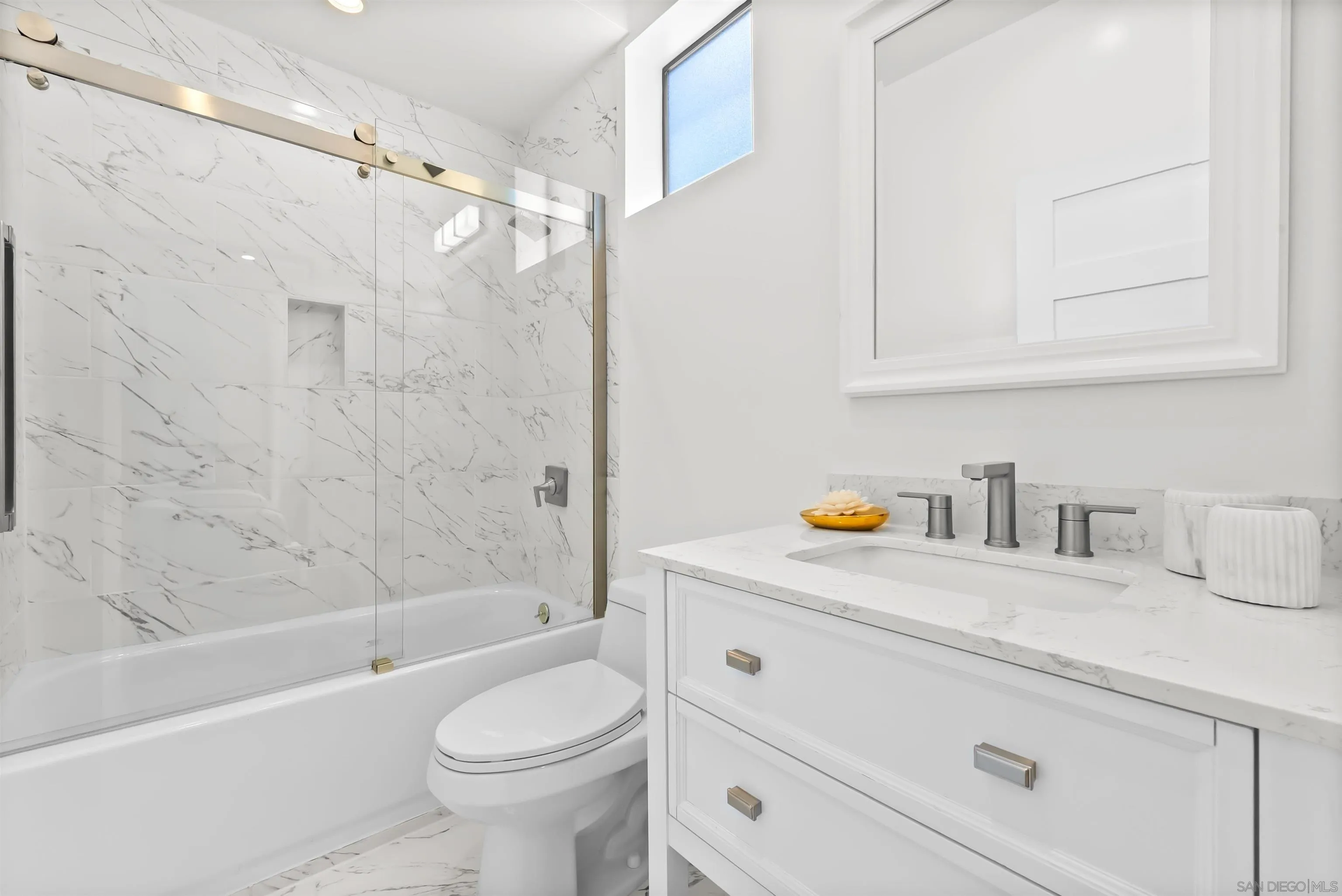 Modern minimalist luxury in the heart of Uptown San Diego. Located in the highly sought-after Marston Hills neighborhood, this newly built residence blends refined contemporary design with a serene, tree-lined greenbelt setting. A thoughtful and flexible floor plan offers privacy and versatility, featuring a luxurious primary suite, two oversized ensuite bedrooms, two half baths, and a dedicated flex/office space with direct access to a sun-filled rooftop deck showcasing sweeping treetop views. Soaring ceilings, wide-plank oak flooring, and designer-selected finishes create a warm, light-filled interior. The chef’s kitchen is the centerpiece of the home, complete with Viking appliances, a quartz waterfall island, and an open-concept layout ideal for both entertaining and everyday living. The primary suite serves as a peaceful retreat with a spa-inspired bath, generous closet space, and a private balcony overlooking mature trees—offering rare tranquility in an urban setting. Outdoor living includes a private fenced yard, two-car covered port garage, and the calming backdrop of nature just beyond the property line. Ideally located just minutes from Balboa Park, Hillcrest shopping and dining, Downtown San Diego, and San Diego International Airport. With no HOA and flexible living options, this home delivers a rare balance of modern luxury, natural surroundings, and urban convenience.
