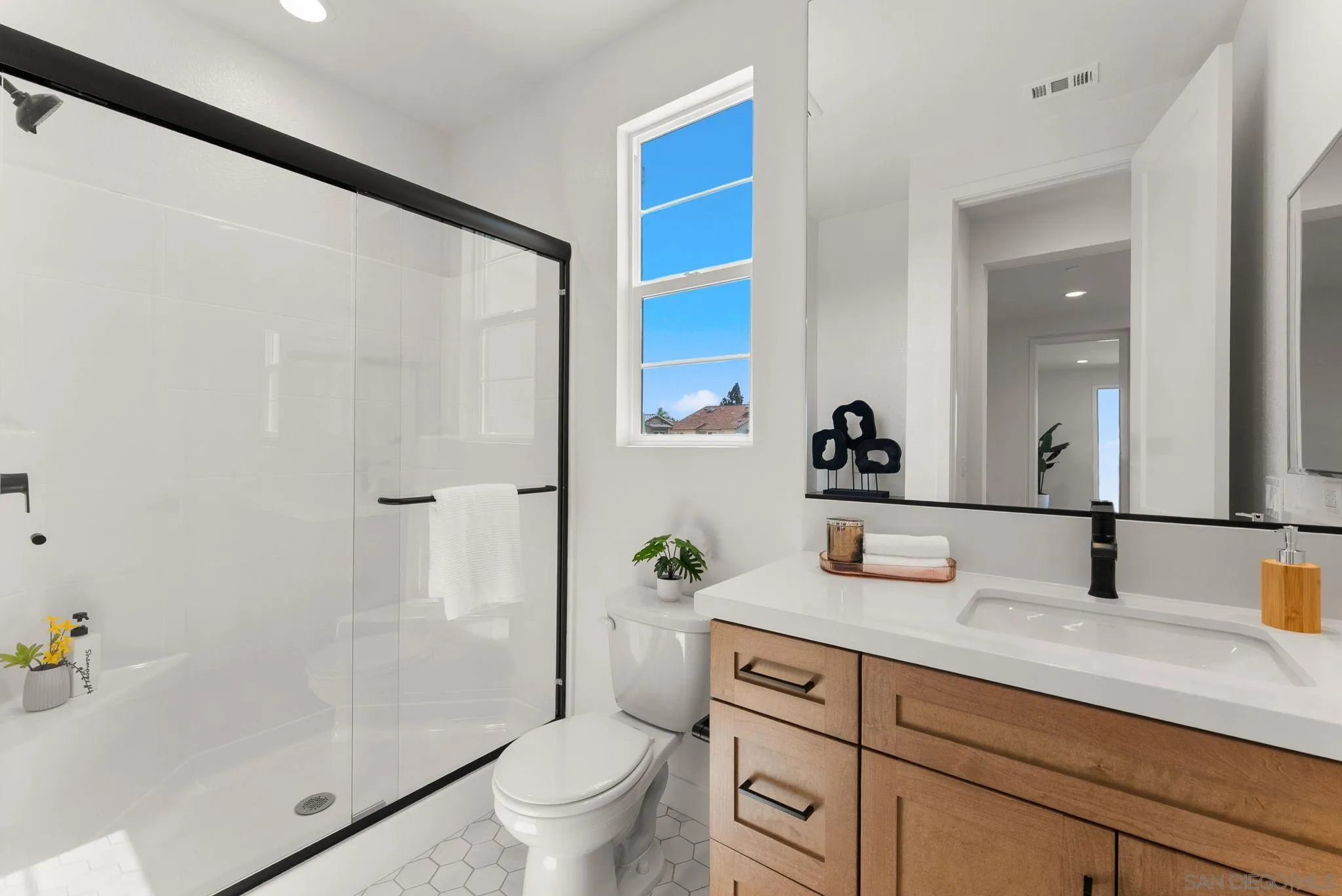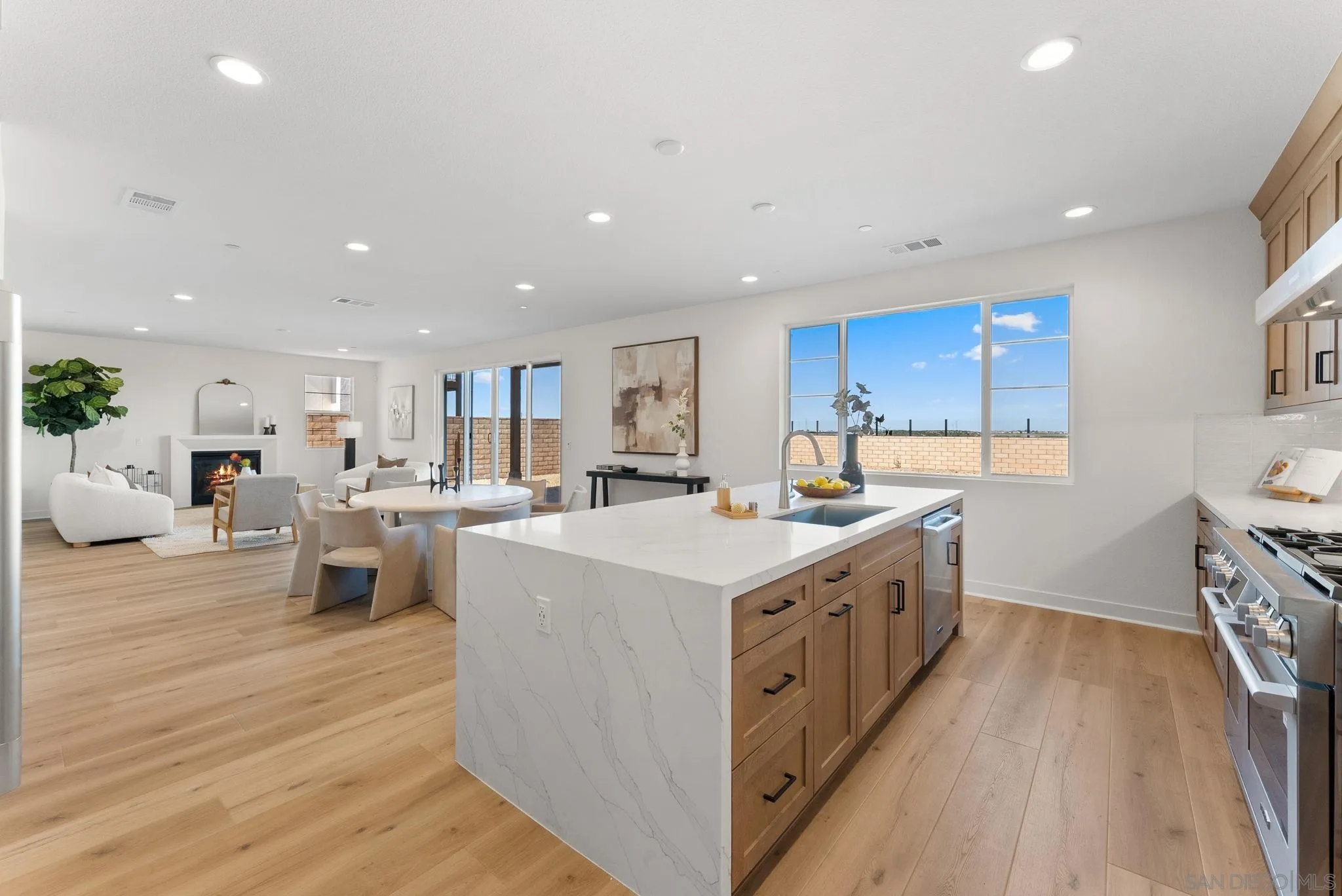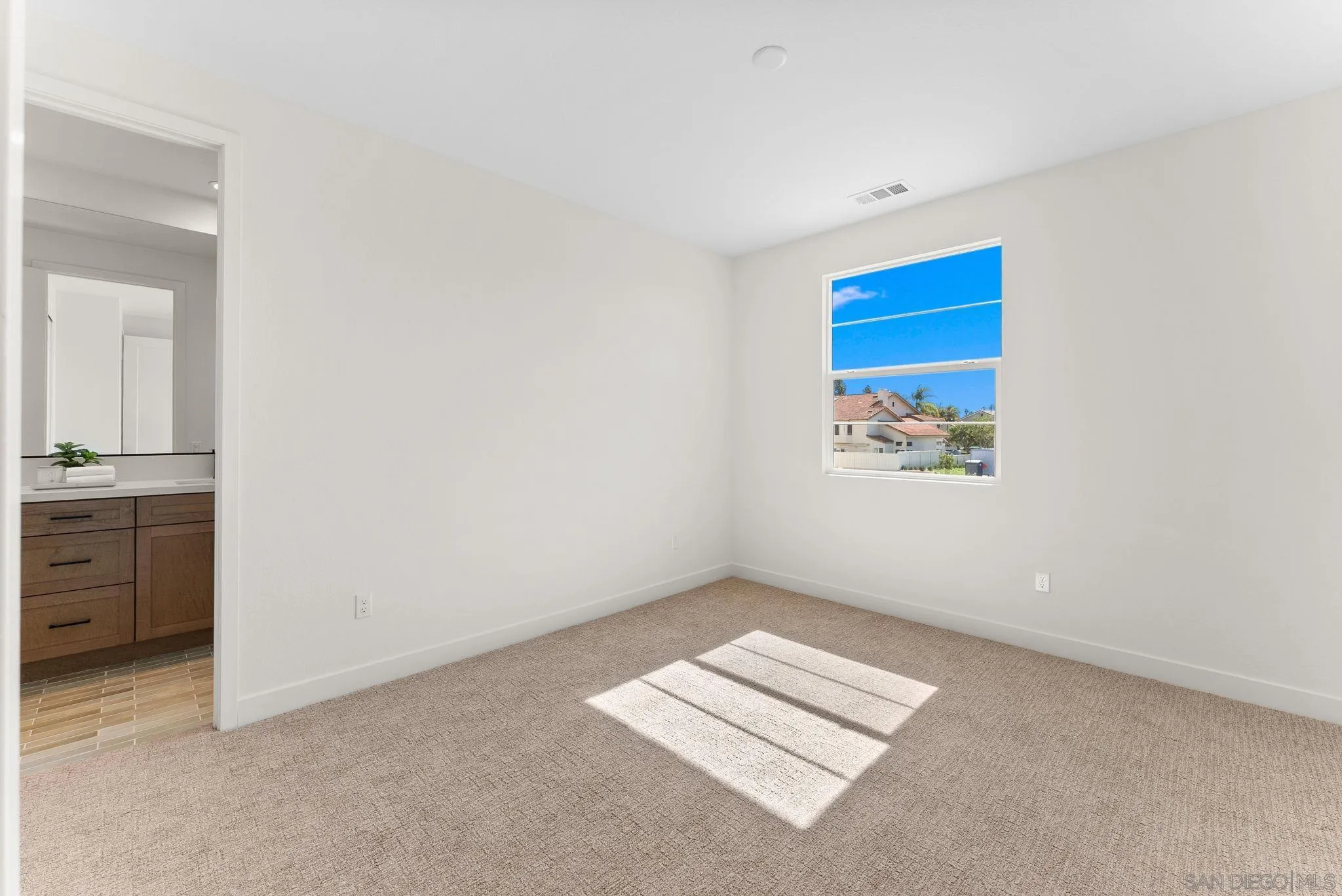 Lot 3 – New Construction Home in Sorrento Mesa. Welcome to Tierra Alta, an intimate 8-home cul-de-sac community offering spectacular views of Los Peñasquitos Canyon Preserve. This 3,183 sq. ft. detached home (Plan 3) blends modern design with functional living spaces. 5 bedrooms, 4.5 baths, loft, a tech room, and a 3-car attached bay garage; a move-in ready home designed for comfort and convenience. The primary suite includes a private deck, while the large fenced backyard is perfect for gatherings and outdoor relaxation. The stylish kitchen showcases "sand" finish maple shaker-style cabinets, extra cabinetry, and electrical upgrades. Plus, owned solar (not leased) adds energy efficiency and savings. Ask about our limited-time builder incentives!