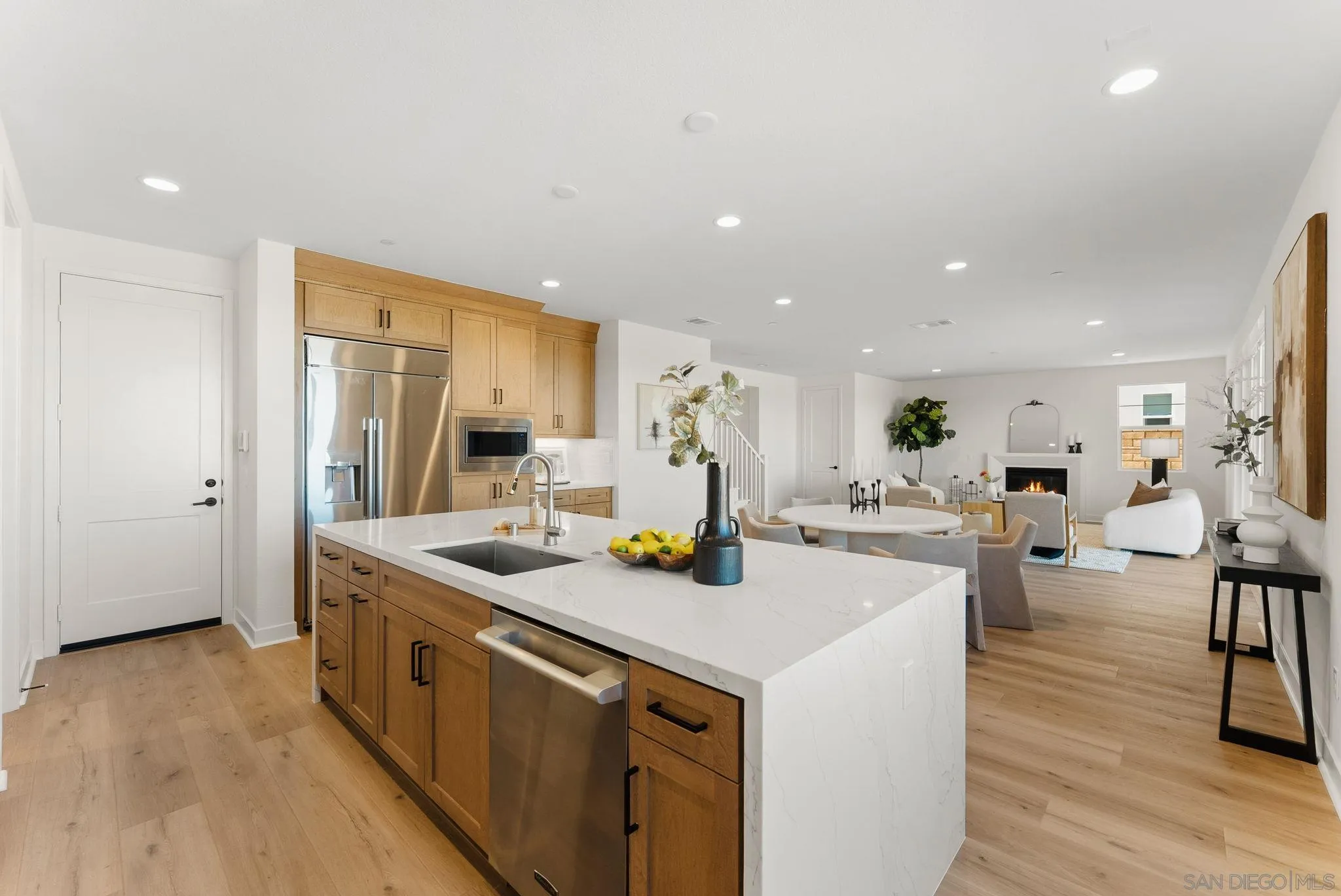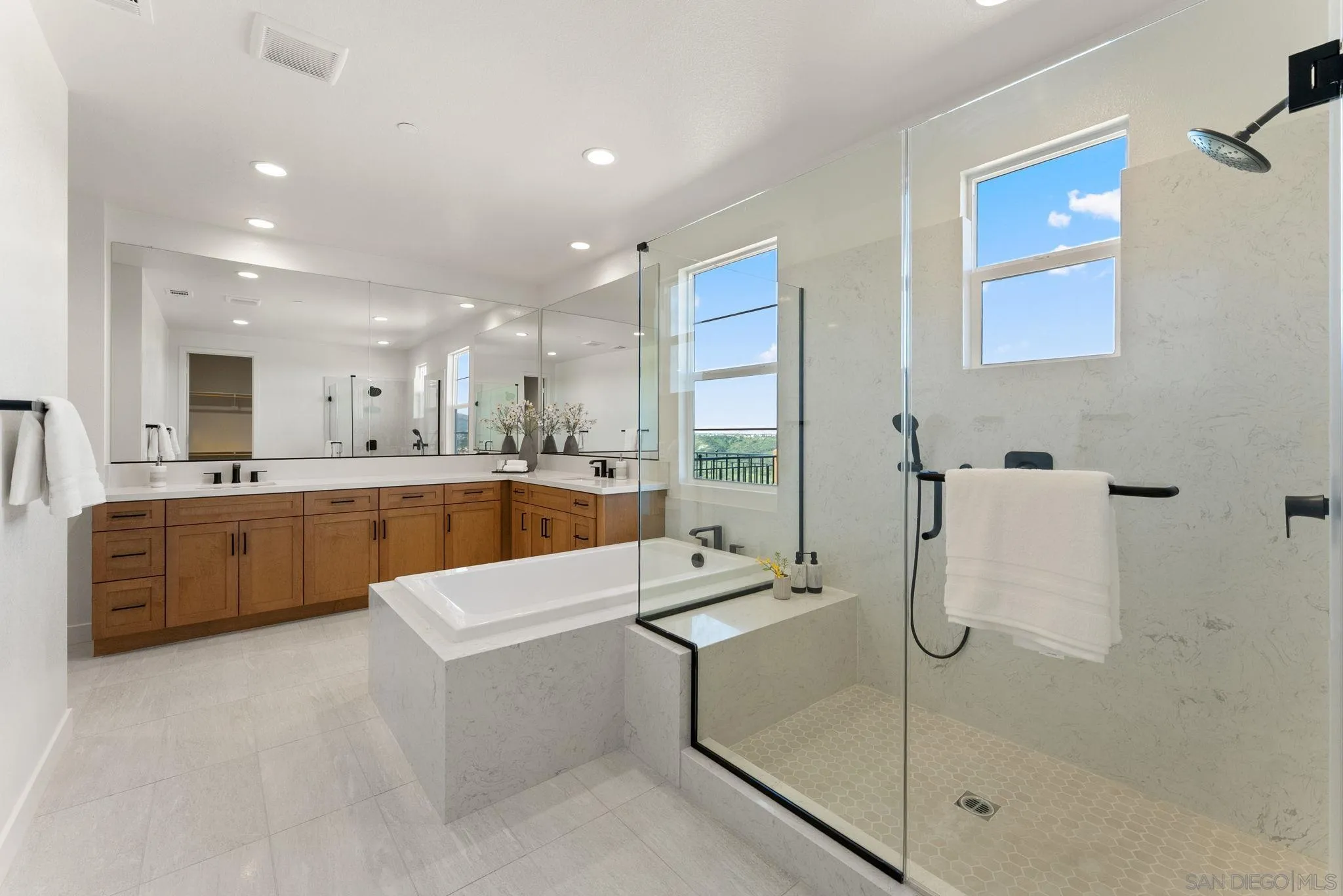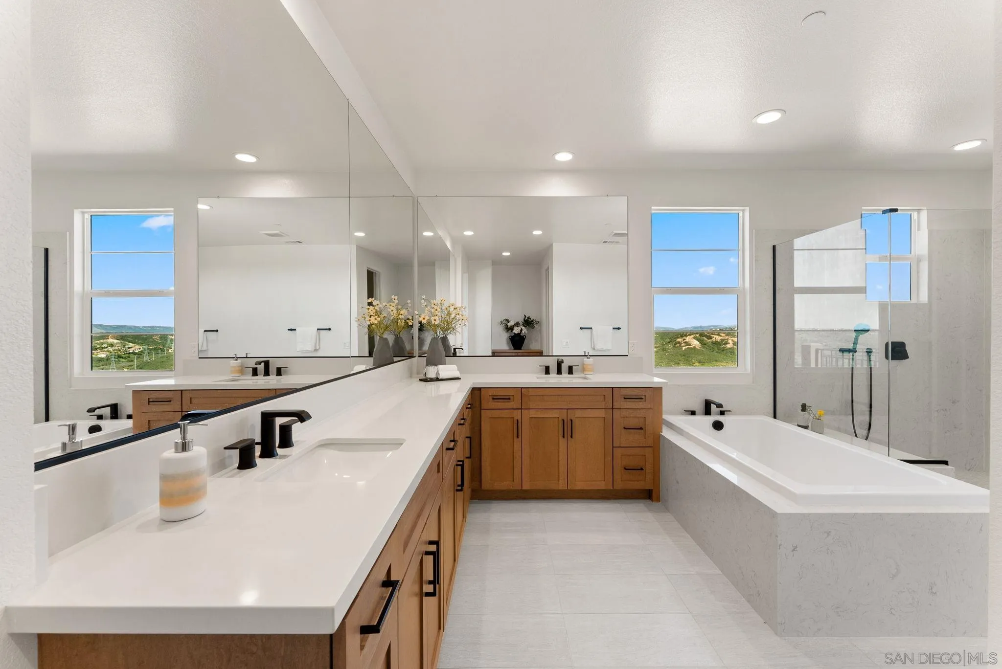 Lot 3 – New Construction Home in Sorrento Mesa. Welcome to Tierra Alta, an intimate 8-home cul-de-sac community offering spectacular views of Los Peñasquitos Canyon Preserve. This 3,183 sq. ft. detached home (Plan 3) blends modern design with functional living spaces. 5 bedrooms, 4.5 baths, loft, a tech room, and a 3-car attached bay garage; a move-in ready home designed for comfort and convenience. The primary suite includes a private deck, while the large fenced backyard is perfect for gatherings and outdoor relaxation. The stylish kitchen showcases "sand" finish maple shaker-style cabinets, extra cabinetry, and electrical upgrades. Plus, owned solar (not leased) adds energy efficiency and savings. Ask about our limited-time builder incentives!