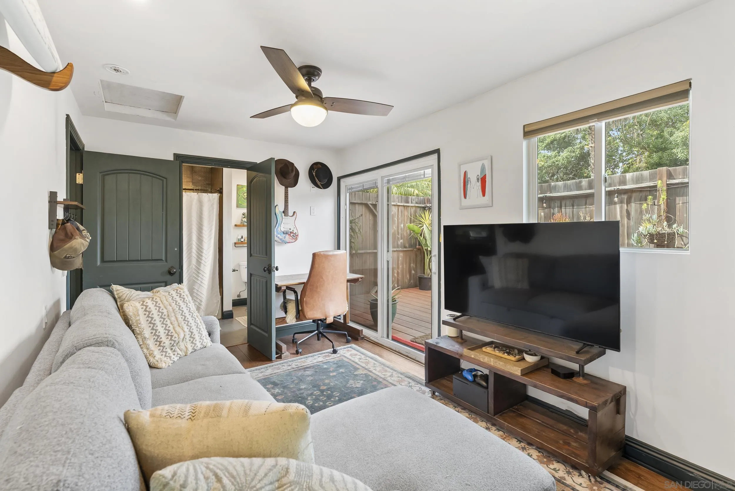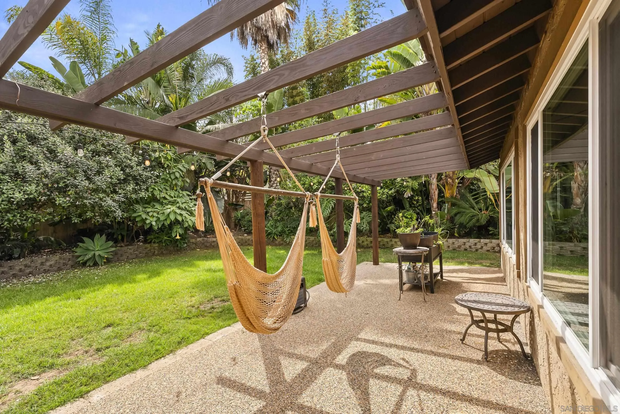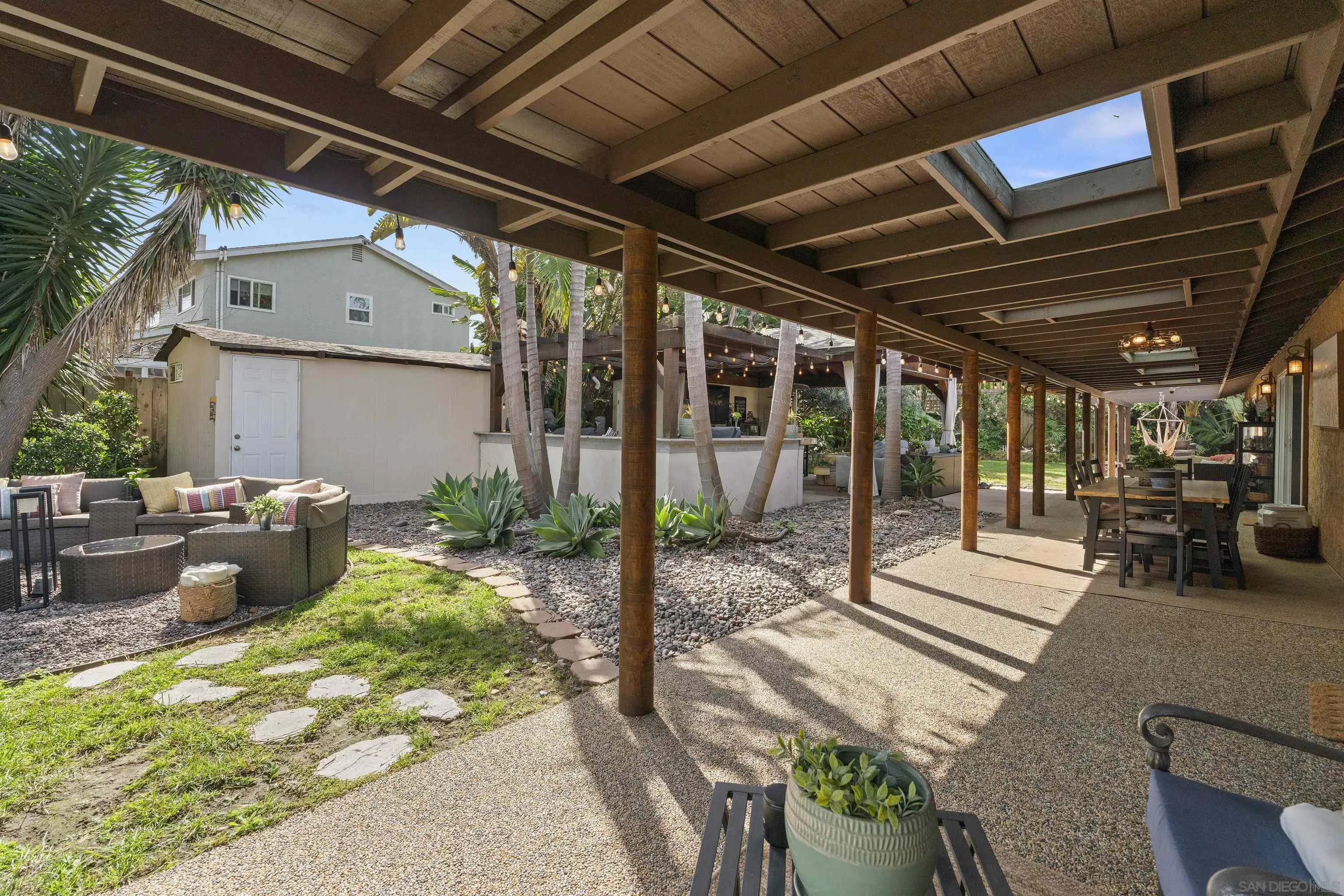 I am excited to share a rare opportunity for a beautiful single-level property located just a short walk to the beach with ADU & Fully Paid Solar system The main home features 4 bedrooms and 2.5 bathrooms, including a primary suite with a walk-in closet and ensuite bath. The interior offers a light-filled great room with an impressive fireplace, a dining area perfect for entertaining, and a kitchen complete with leathered granite counters, warm cabinetry, and a Sub-Zero refrigerator, separate laundry room with storage closets and direct access to the double garage. Outside, you will find a secure front patio with a soothing water feature and a private backyard oasis that includes a vaulted patio cover, a BBQ station, a circular conversation area, and a large TV entertainment center as well as room for children and pets to enjoy the fully fenced area. Additionally, the property includes a detached 2-bedroom, 1-bathroom unit with its own kitchen, private patio, and direct access parking—ideal for rental income or as an in-law suite. Practical amenities include a double garage, ample off-street parking, a storage shed, and RV parking with full hookups and a clean-out.