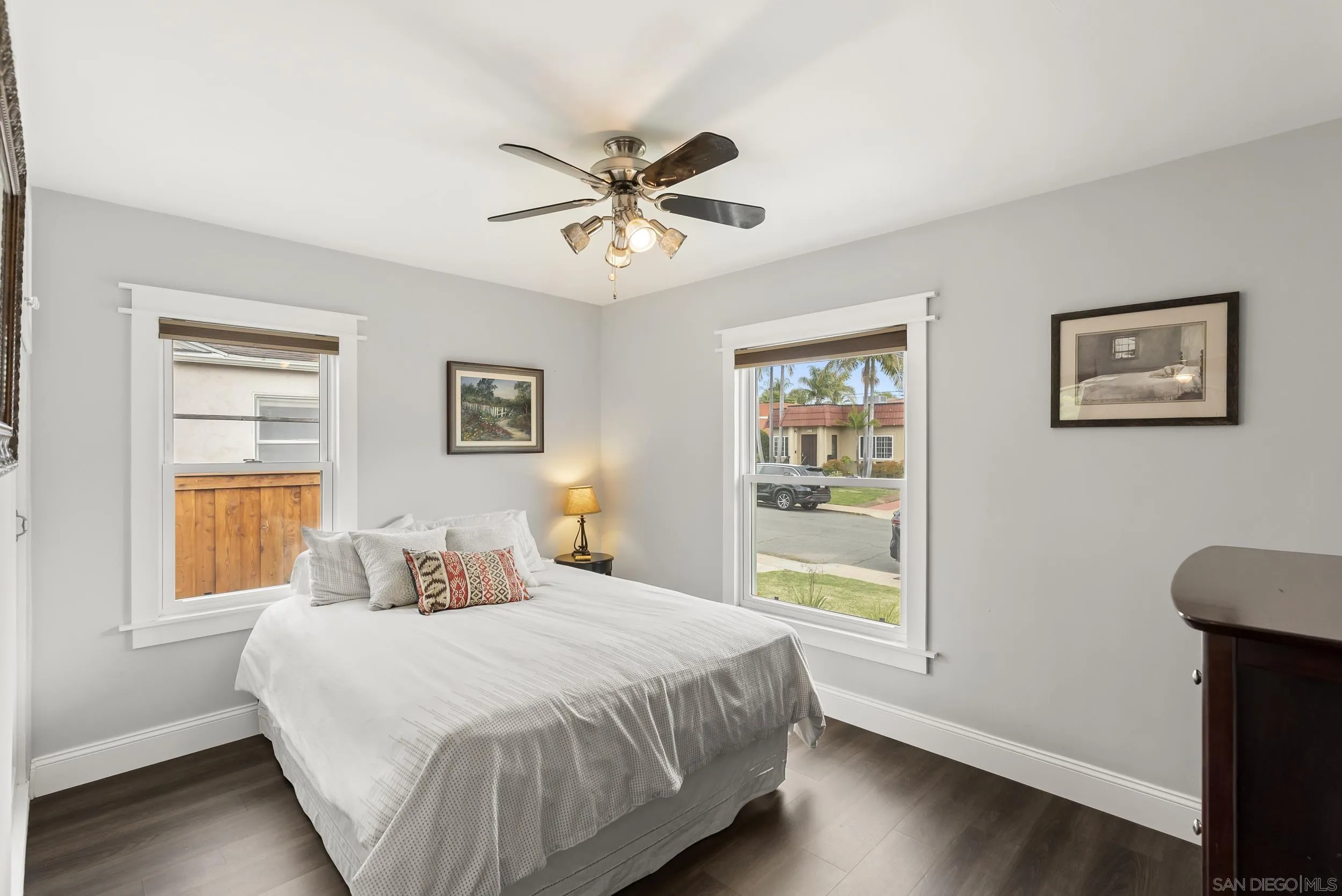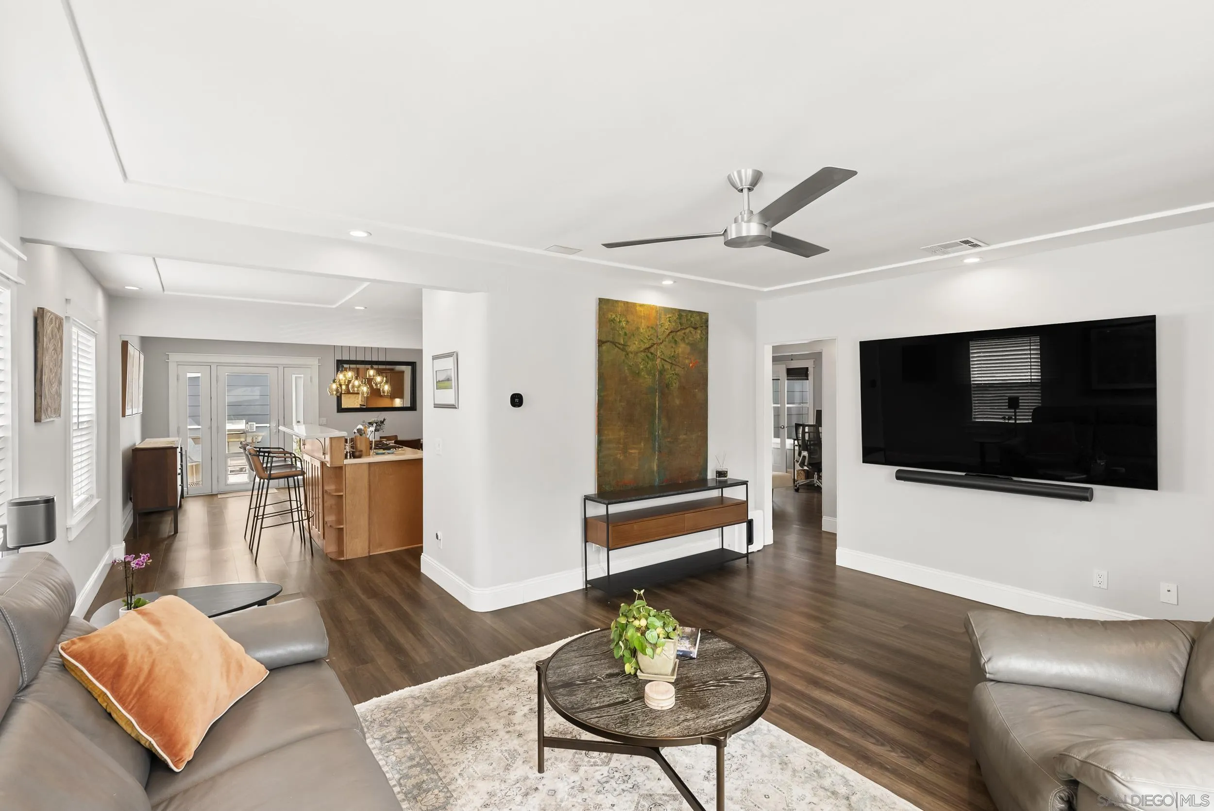 This beautifully reimagined 1940s bungalow blends timeless character with thoughtful modern enhancements. A well-designed addition—featuring a spacious primary suite, expanded dining area, and powder room—introduces abundant natural light and a seamless circular flow throughout the home. Set back on a sunny corner lot just south of Adams Avenue, this unexpected gem is filled with warmth and comfort at every turn. Indoor and outdoor zen living come together effortlessly, with inviting spaces that open to a private backyard retreat—perfect for al fresco dining, quiet relaxation, or entertaining guests. The open-concept kitchen and dining area serve as the heart of the home, while Bedroom Three offers ideal flexibility as a home office or creative space. A two-car garage provides everyday convenience, complemented by paid-off solar and an EV charger for energy efficiency without compromise. Easy-care landscaping allows you to spend more time enjoying the property and less time maintaining it. All of this, just a short stroll to Kensington’s charming village of shops, cafés, and local favorites—with quick freeway access that keeps the rest of San Diego within easy reach.