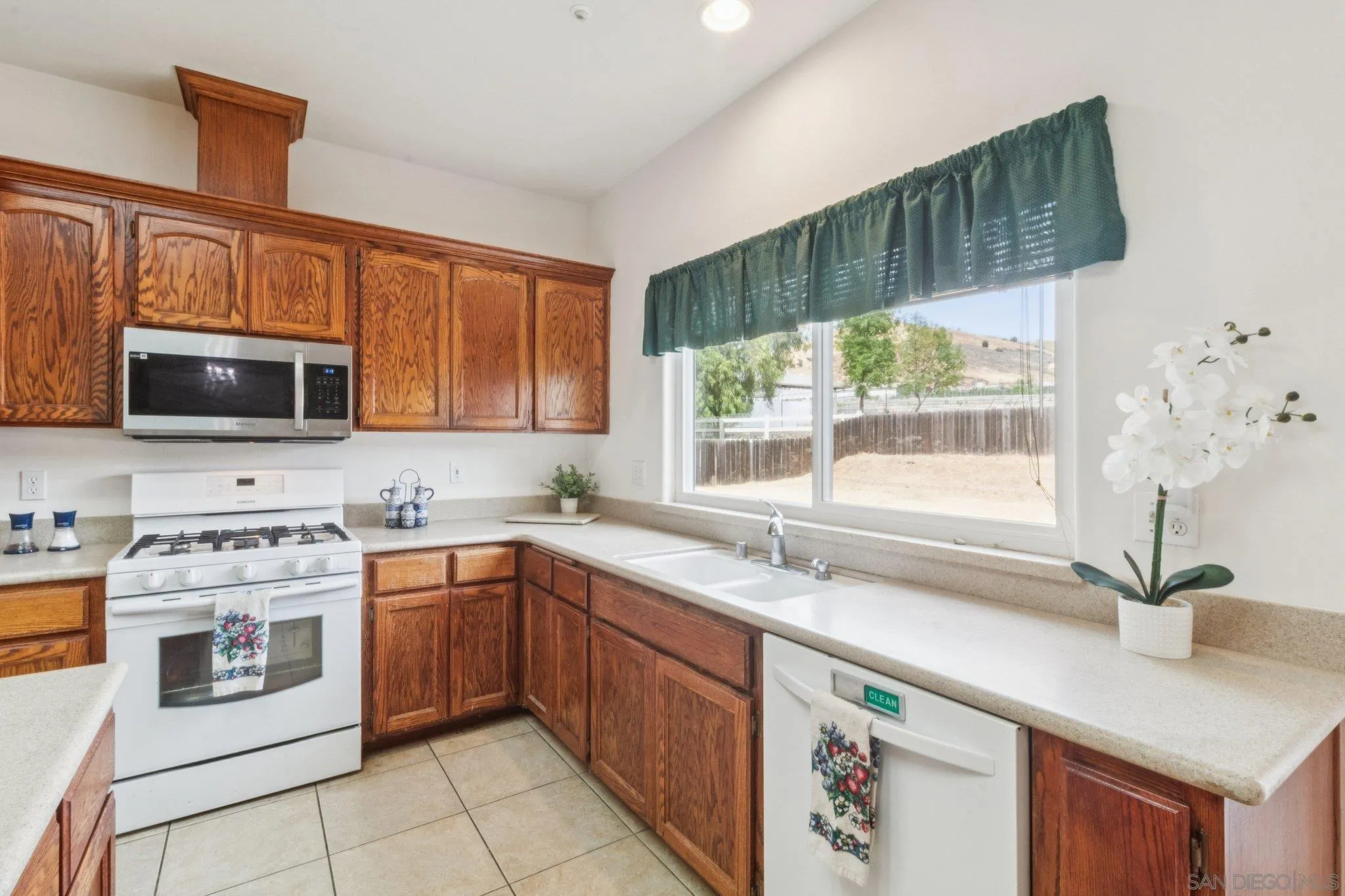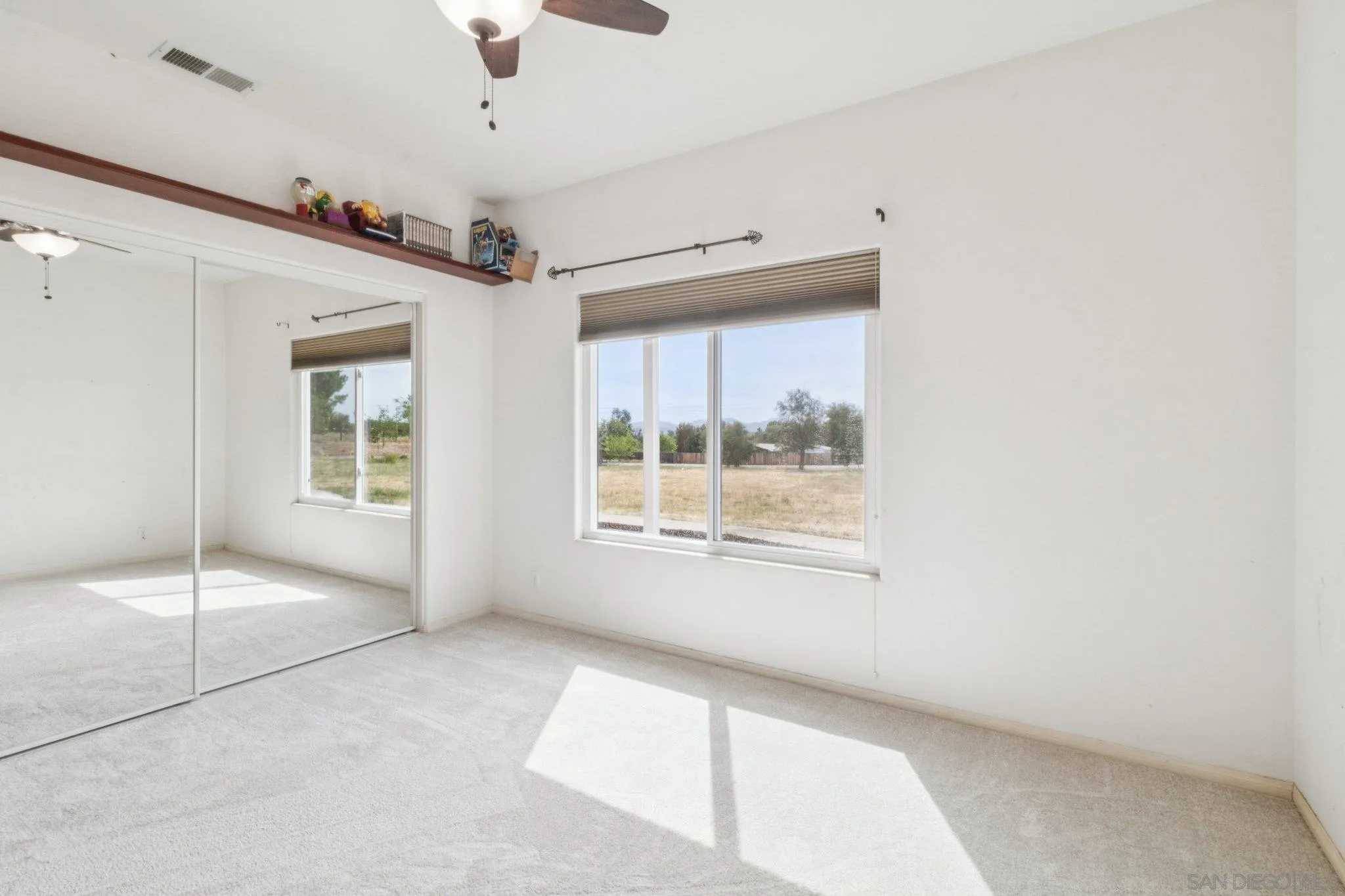 Single-level 4 spaceous bedrooms plus a large office/game toom 3 bath, 3,008 sq ft home on 2.25 acres of flat, usable land with peaceful mountain views. Quality construction throughout with wide doors, bullnose corners, curved archways, 9 ft ceilings, skylights, recessed lighting, and four ceiling fans. Spacious island kitchen with Corian counters top, walk-in pantry, and breakfast bar. Large great room with fireplace and French doors leading to the back patio. Primary suite includes French doors, walk-in closet, cultured marble tub and sinks, and a spacious bedroom layout. Additional bedrooms are generously sized. Wide 4-ft hallway with sconces, dedicated office, and full laundry room. Finished, insulated 3-car garage with storage shelves. Property offers room for horses, chickens, RV parking, and additional uses, subject to local guidelines. Quiet, serene setting with open, usable land. Enjoy your everyday beautiful setting inside, and out side mountain views.
