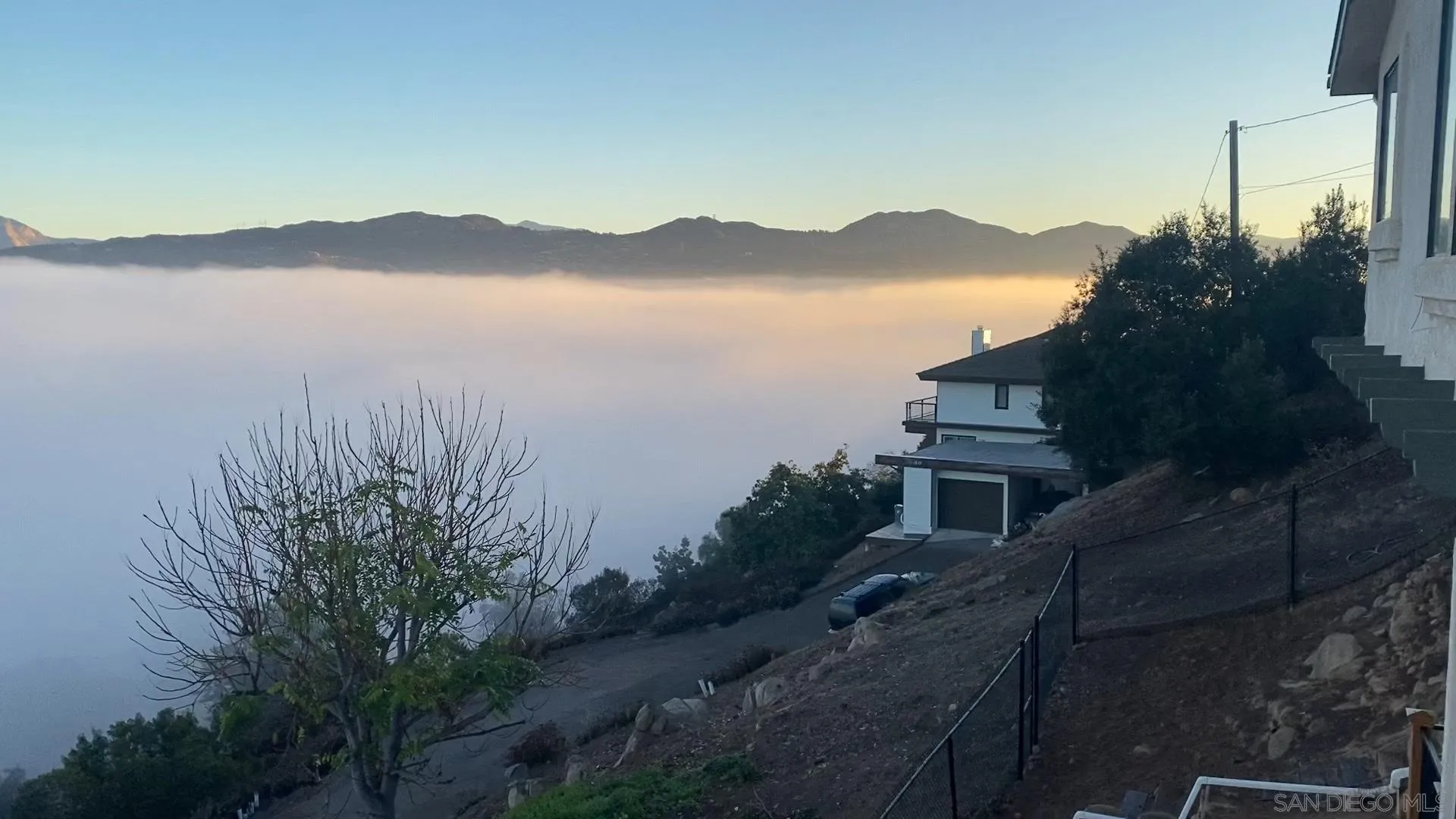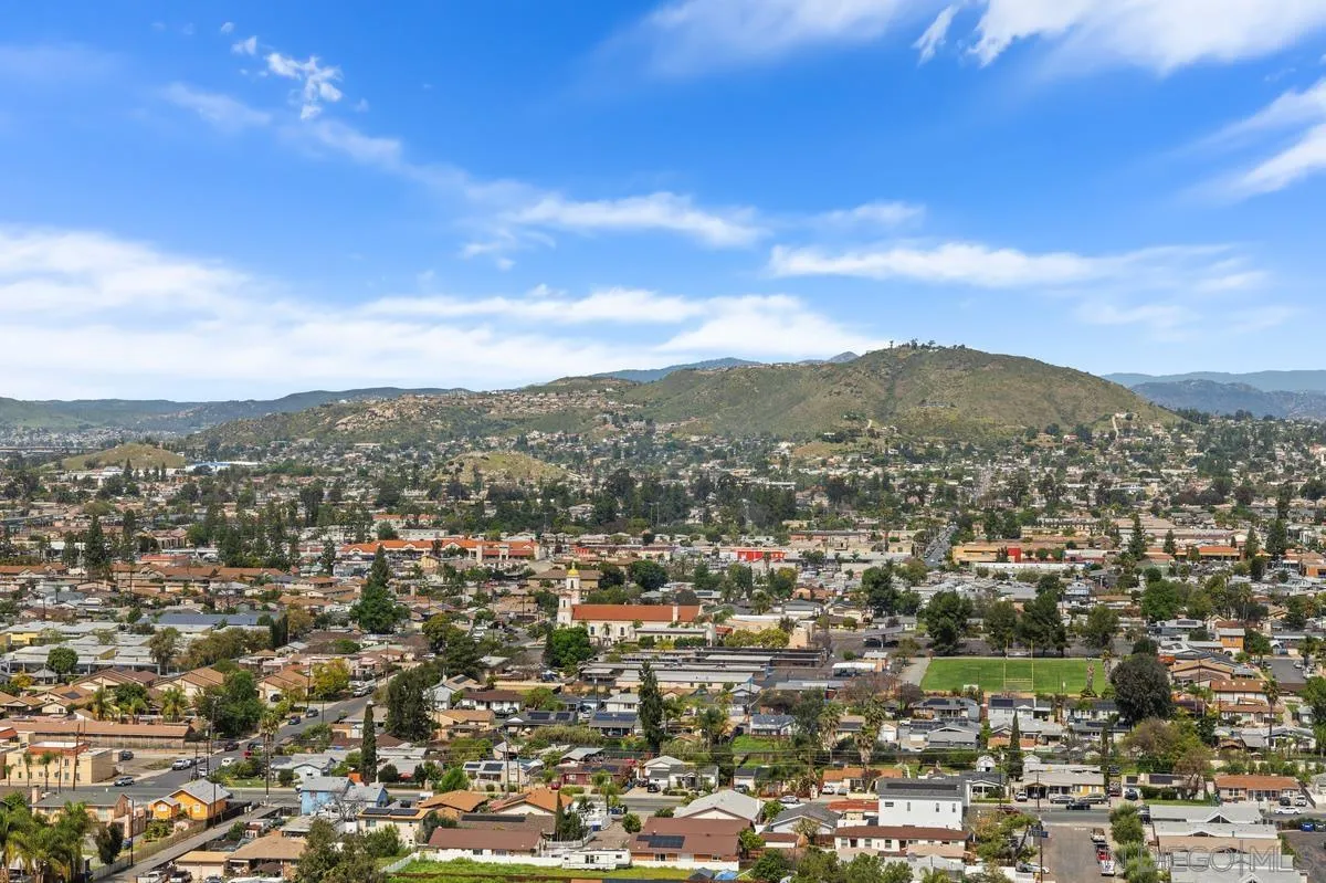Imagine waking each morning to sweeping 280-degree panoramic views, where the hills, sky, and changing light become the backdrop to everyday life. Welcome to 1216 Merritt Drive—a beautifully maintained 3-bedroom, 3-bathroom Mount Merritt home set on an expansive 30,056 sq. ft. lot, offering a rare combination of scenery, space, and privacy, yet just minutes from the conveniences of El Cajon. Inside, the 2,430 SF layout is warm and inviting. The main level features a spacious living and dining area with breathtaking views, perfect for entertaining beside the fireplace while guests enjoy gazing at the sparkling city lights. The kitchen offers custom-built cabinetry designed to maximize storage and functionality. Upstairs you'll find the primary suite with en-suite bath, along with two additional bedrooms and a hall bath. Beautiful wood flooring flows throughout adding warmth and timeless character. The lower level includes a generous family room ideal for relaxing or gathering. Just off the family room is a luxurious bathroom with a soaking tub and a versatile bonus room perfect for a home office, gym, studio, or playroom. An oversized laundry room with abundant cabinetry adds convenience to everyday life. Outdoor living shines with a redwood deck and patio, artificial turf, and a charming pergola—ideal for dining under the stars. The property also features a large detached powered workshop ideal for hobbies, projects, or storage. Tucked down a long private driveway off Merritt Dr, the home offers privacy with ample parking. Exceptionally well maintained by long-term owners.