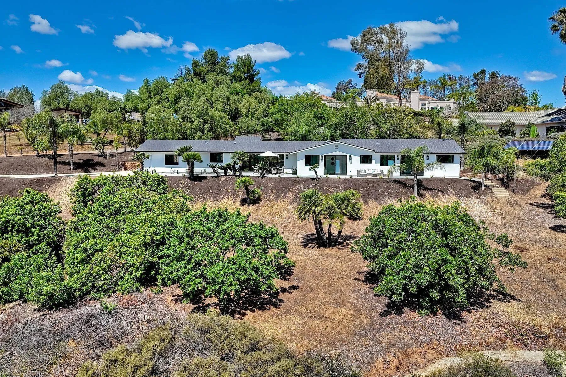 Welcome to 13940 Northcrest Lane, a beautifully renovated 3,000 sq. ft. luxury estate resting on nearly a private one-acre lot in the heart of Poway. Built by one of California’s premier luxury home builders, this exceptional four-bedroom residence seamlessly blends refined craftsmanship, modern upgrades, and a rare connection to the surrounding natural beauty. At the heart of the home is a chef-inspired gourmet kitchen, featuring commercial-grade Thermador appliances, custom cabinetry, and thoughtfully designed spaces perfect for both everyday living and entertaining. Elegant Mediterranean oak flooring flows throughout the home, creating warmth, sophistication, and timeless style. Three spacious ensuite bedrooms provide comfort and privacy for both homeowners and guests, while expansive living areas capture panoramic views from much of the home. A stunning 17’ x 8’ multi-slide glass wall creates a seamless indoor-outdoor living experience, opening to sweeping elevated views of the surrounding landscape. Set on a view-oriented lot, the property offers exceptional privacy, generous space, and a peaceful retreat while still being close to everyday conveniences. Sits on a private road with no HOA, the home enjoys tranquil surroundings and a welcoming neighborhood. Outdoor enthusiasts will appreciate being within walking distance to Lake Poway, with easy access to Blue Sky Reserve, Twin Peaks hiking trails, and nearby equestrian paths, offering endless opportunities to explore the natural beauty. In the heart of Poway Unified award winning schools!