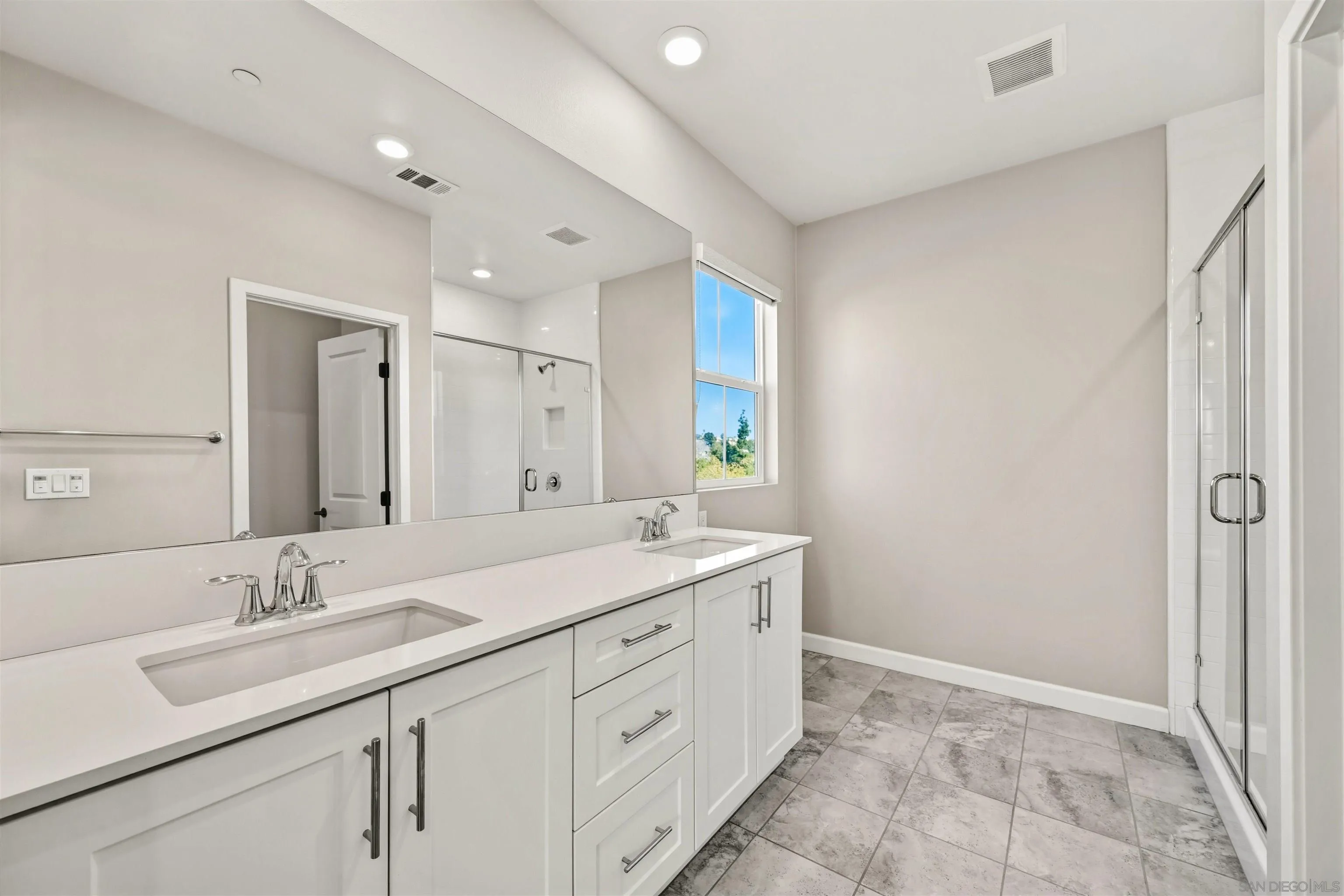 Welcome to this beautifully maintained 2020-built end-unit townhome located in the highly desirable Promenade at Pacific Village community. Designed for modern living, this home features 9-foot ceilings and a bright open-concept floor plan anchored by a gourmet kitchen boasting sleek quartz countertops, a large island, a pantry closet, and generous counter space—perfect for both relaxing and entertaining. This tech-forward residence is "Wi-Fi Certified" with a whole-home mesh system for no-drop-off connectivity and comes equipped with a Schlage smart lock and Ring monitoring for ultimate security. Efficiency is at the forefront with a Solar Power Purchase Agreement (PPA), an ecobee app-controlled thermostat, and a Rinnai tankless water heater also managed via app. For added convenience, the home includes a dedicated laundry room and a whole-home water softener system. As an end unit, it enjoys additional privacy and natural light throughout the living spaces. Residents benefit from resort-style amenities, including a sparkling pool, playground, BBQ areas, dog parks, and scenic trails surrounding the community. Ideally located with no Mello Roos, this home offers easy access to major freeways and shopping while being served by the top-rated Poway Unified School District. This is an excellent opportunity to enjoy modern, connected living in one of the area's most sought-after communities.