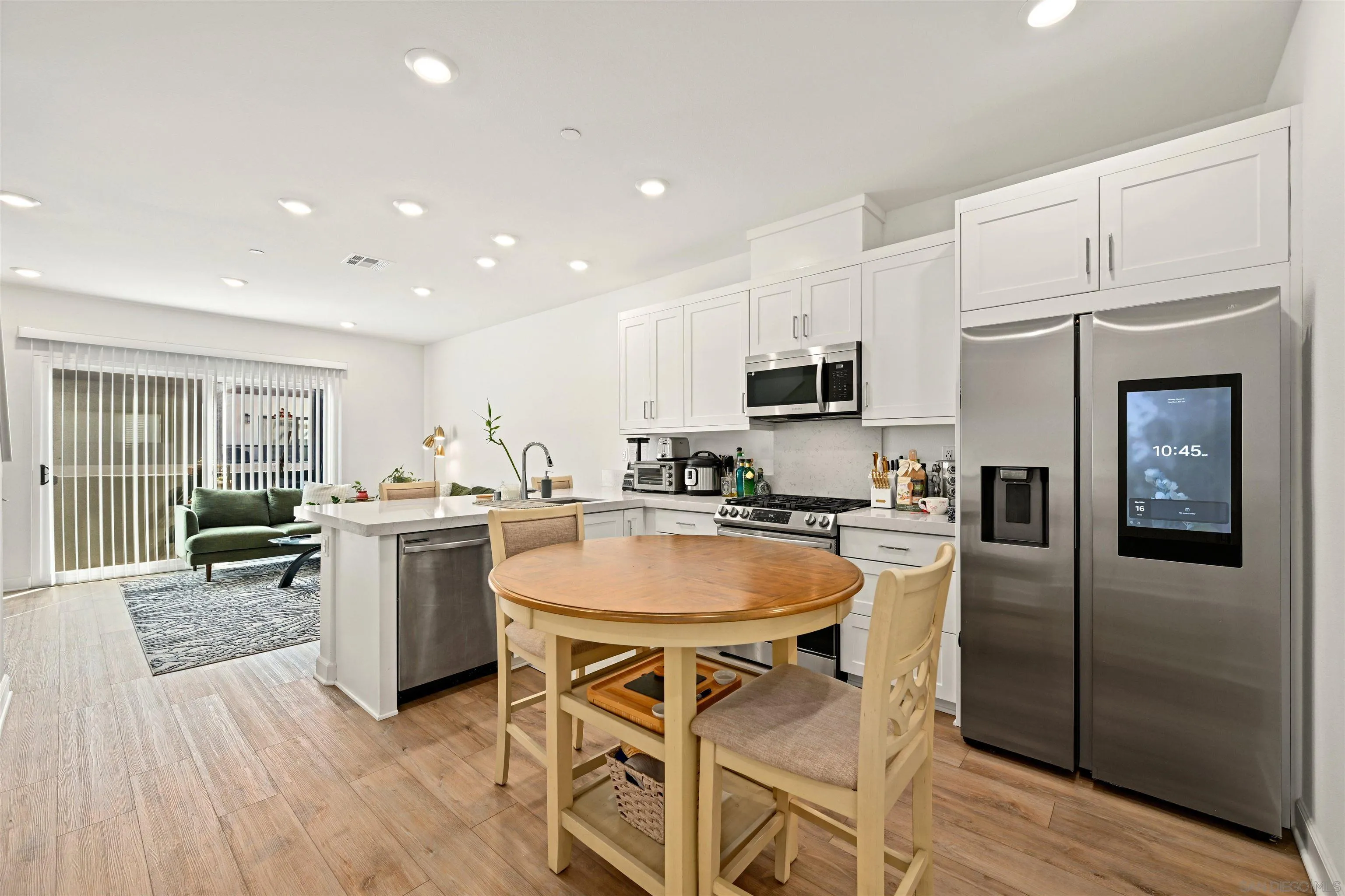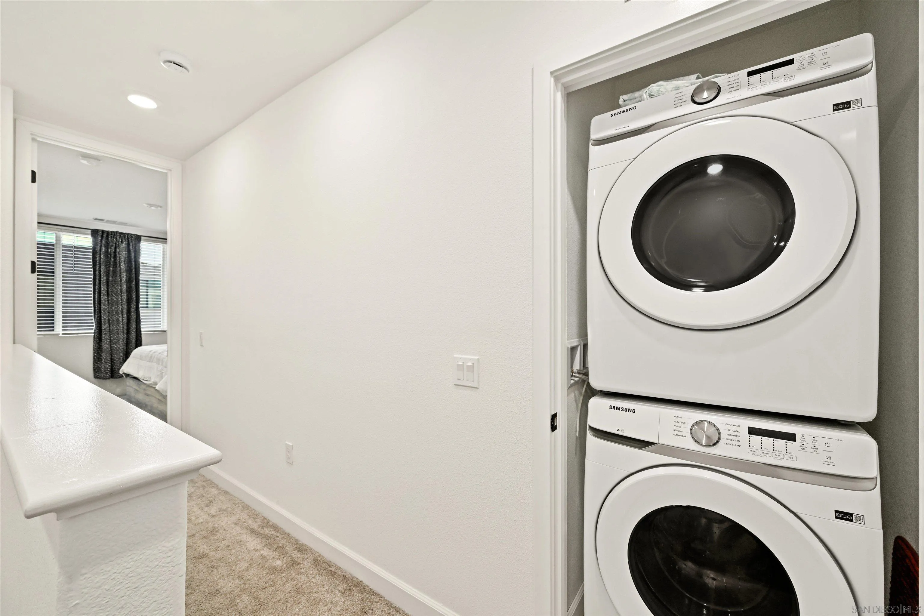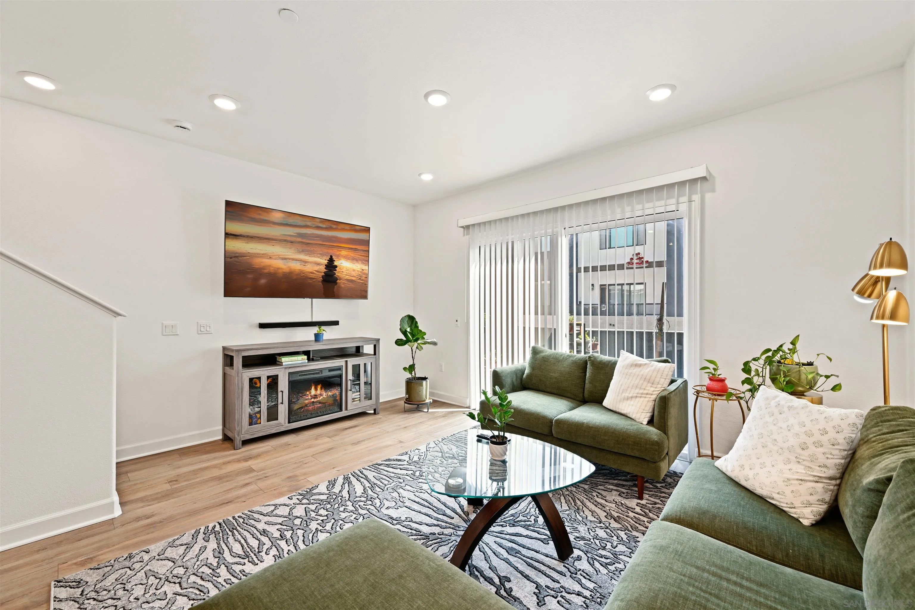 Welcome to this well-maintained 3-bed, 3-bath home in the desirable Epoca community. Two bedrooms feature ensuite baths for added privacy. The kitchen with stainless steel appliances opens to the living area which is ideal for daily living and entertaining. Enjoy a private balcony, tandem PASS-THROUGH GARAGE with extra storage, and OWNED SOLAR PANELS for year-round savings. Conveniently located less than 2 miles from the CBX Cross Border Xpress and easy access to the freeway; all while being in a peaceful, walkable neighborhood with parks, green space, and community events. Clean, move-in ready, and truly feels like home.