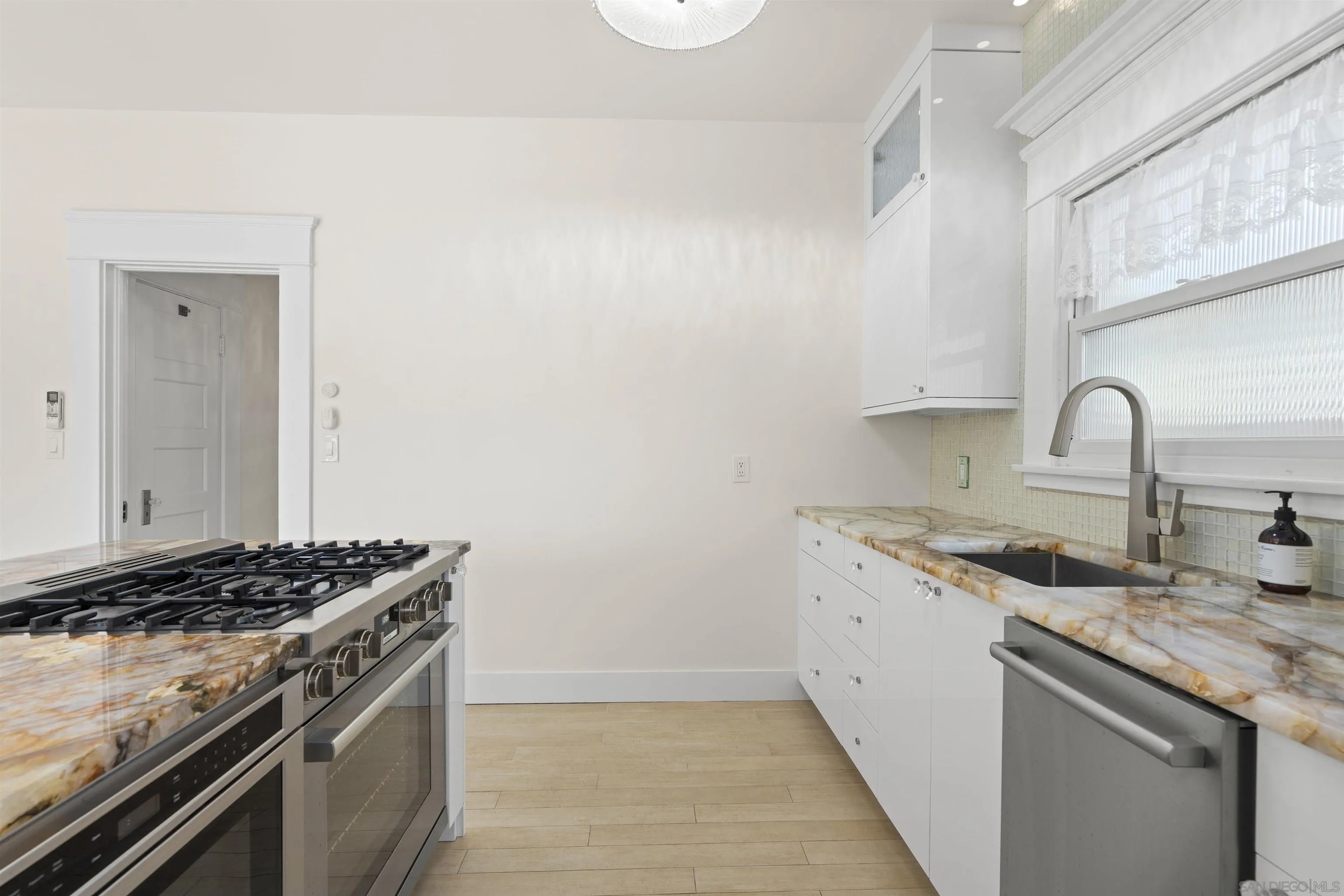 This charming Craftsman bungalow is perfectly situated in the heart of Mission Hills and offers the ideal blend of character, comfort, and convenience. Thoughtfully designed to make the most of every square foot, the light-filled, open floor plan creates an inviting space that feels welcoming from the moment you step inside. Fresh interior paint, newer windows and doors, classic glass doorknobs, and a beautifully rebuilt gas fireplace honor the home’s timeless Craftsman details while seamlessly incorporating modern updates. A mini-split heating and cooling system provides year-round comfort, and the Kenmore Elite combo washer/dryer adds everyday ease and functionality. The recently remodeled kitchen is both stylish and functional, featuring quartz countertops, a glass tile backsplash, under-cabinet lighting, abundant storage, a five-burner gas stove, and a dishwasher. Both bedrooms offer generous walk-in closets, and the spacious Jack-and-Jill bathroom includes a tub and shower combo. Outside, enjoy an inviting front porch, a private back patio perfect for relaxing or entertaining, low-maintenance landscaping, off-street parking, and a handy outbuilding/shed. The result is a home that lives larger than its footprint — warm, efficient, and move-in ready — perfectly suited for enjoying the relaxed Mission Hills lifestyle. All of this is just moments from shopping, dining, cafes, Pioneer Park, and everything people love about Mission Hills. Enjoy maximum enjoyment per square foot in a location that’s hard to beat!