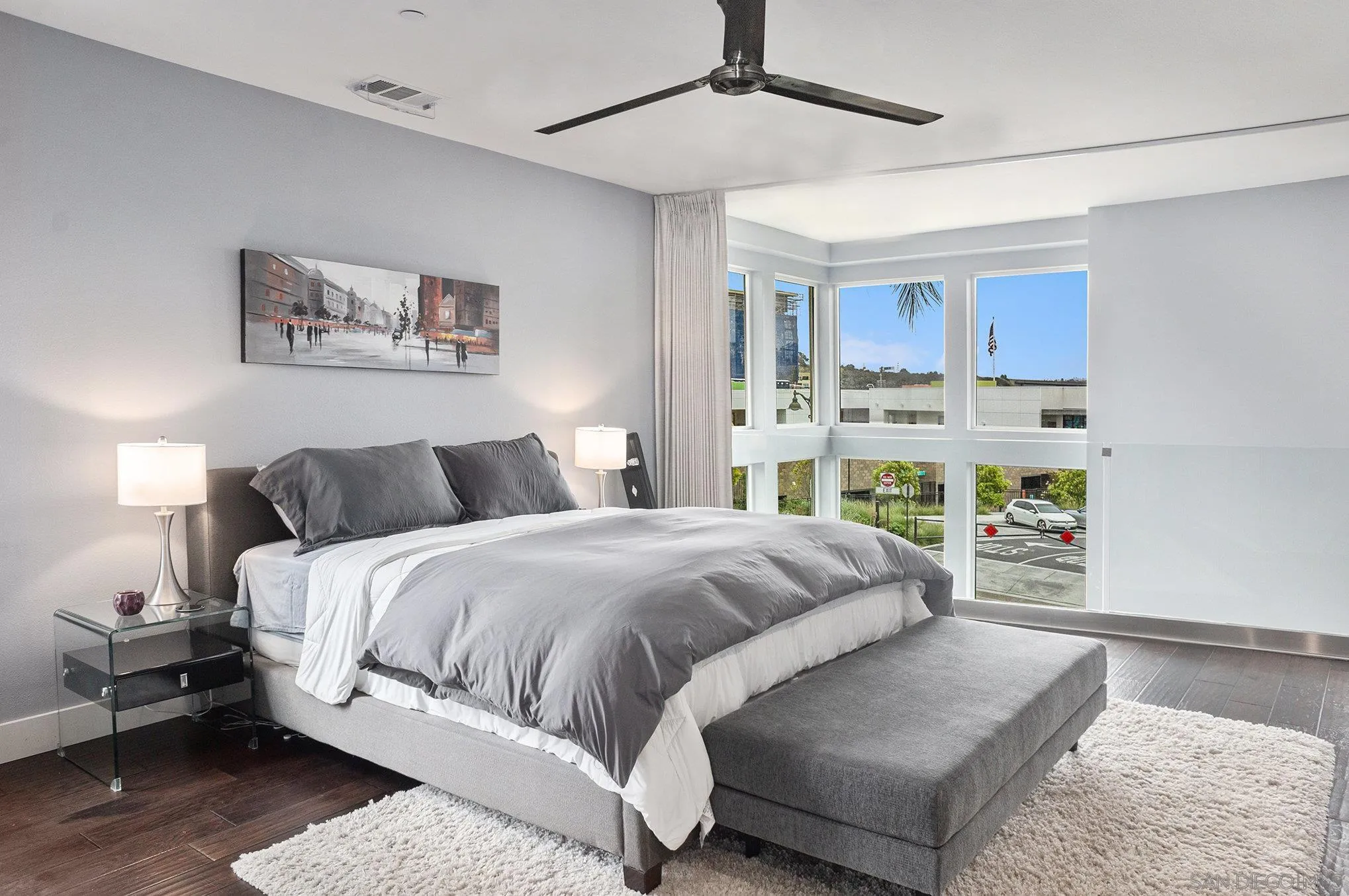 Experience refined living in this beautifully upgraded 2 bedroom, 2.5 bath end unit in the highly desirable Civita community. Ideally located in the heart of Mission Valley, this home offers exceptional walkability to Civita Park, shops, dining, and is less than a mile to the trolley. The light filled open concept layout features modern finishes and seamless flow for everyday living and entertaining. The updated kitchen includes stainless steel appliances, sleek cabinetry, and generous counter space. A contemporary glass half wall adds a stylish architectural touch while maintaining an open feel. Each bedroom features its own en suite bath. The third floor loft style primary suite offers privacy, abundant natural light, and a remote controlled privacy curtain for added comfort. Additional highlights include a private balcony, in unit washer and dryer, and an attached two car garage with custom shelving. Recent upgrades include new windows, window and door screens, updated bathroom vanities, new refrigerator and dishwasher, and added storage throughout. Enjoy all that Civita has to offer in one of San Diego’s premier master planned communities.