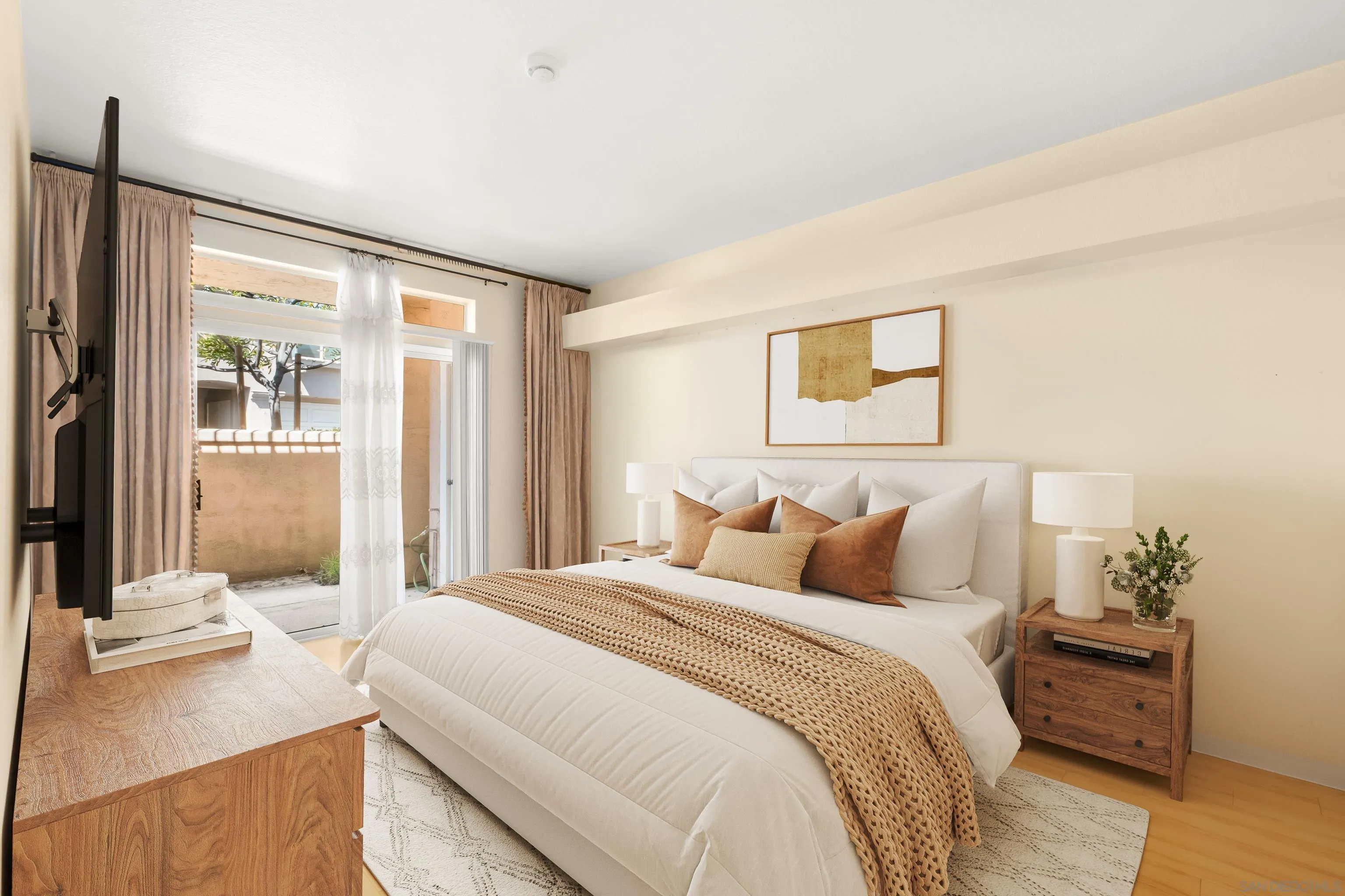 Rare chance to invest in Renaissance, desirable master-planned community in a heart of UTC, where you feel like in a small village of charming Italian island of Capri. All 6 distinctive estates connected as unique private domain, where walking trails, lush parks, contemporary gardens, small shops, cascading waterfalls remind you Mediterranean atmosphere. Westfield UTC mall, Nobel Athletic center & Park, trolley line just walking distance away. Ground floor corner unit with no stairs. First time on a market in 18 years. Newly remodeled open style ergonomic kitchen with granite countertops. Newer full size fridge, stove, microwave & modern cabinets. Parquet flooring throughout. 2 full bathrooms. Walk-in closet. Fireplace in living room. Huge patio for morning coffee. 1 car attached garage with few shelves. Laundry room with new full size Samsung washer/dryer is in hallway near garage, with extra space for storage of your valuable treasures. Just steps away from pool/jacuzzi. There are plenty of guest parking. Low HOA fees, including water, sewer, trash. Professionally cleaned and ready to move in. What are you waiting for? Some photos been digitally enchanced.